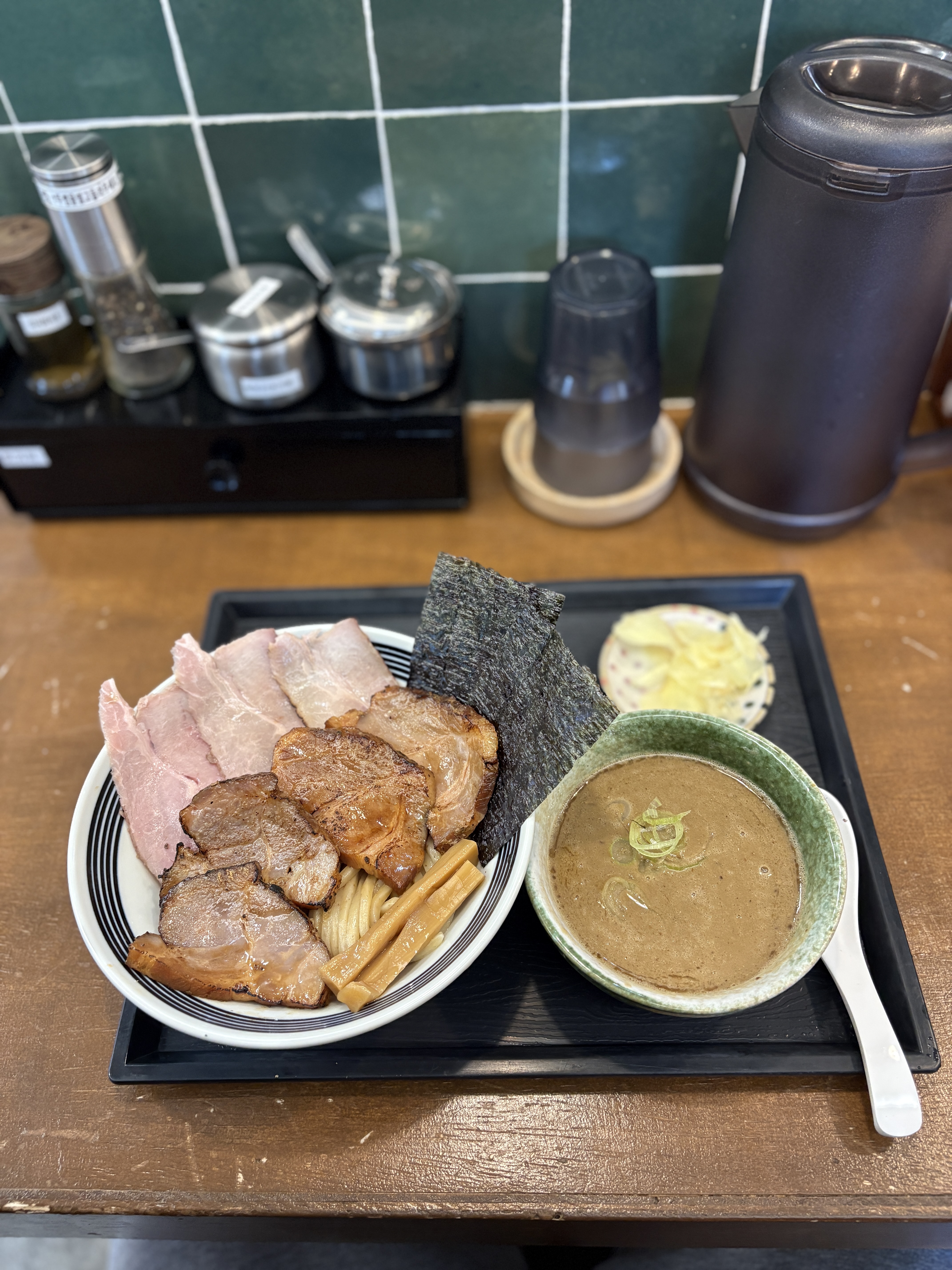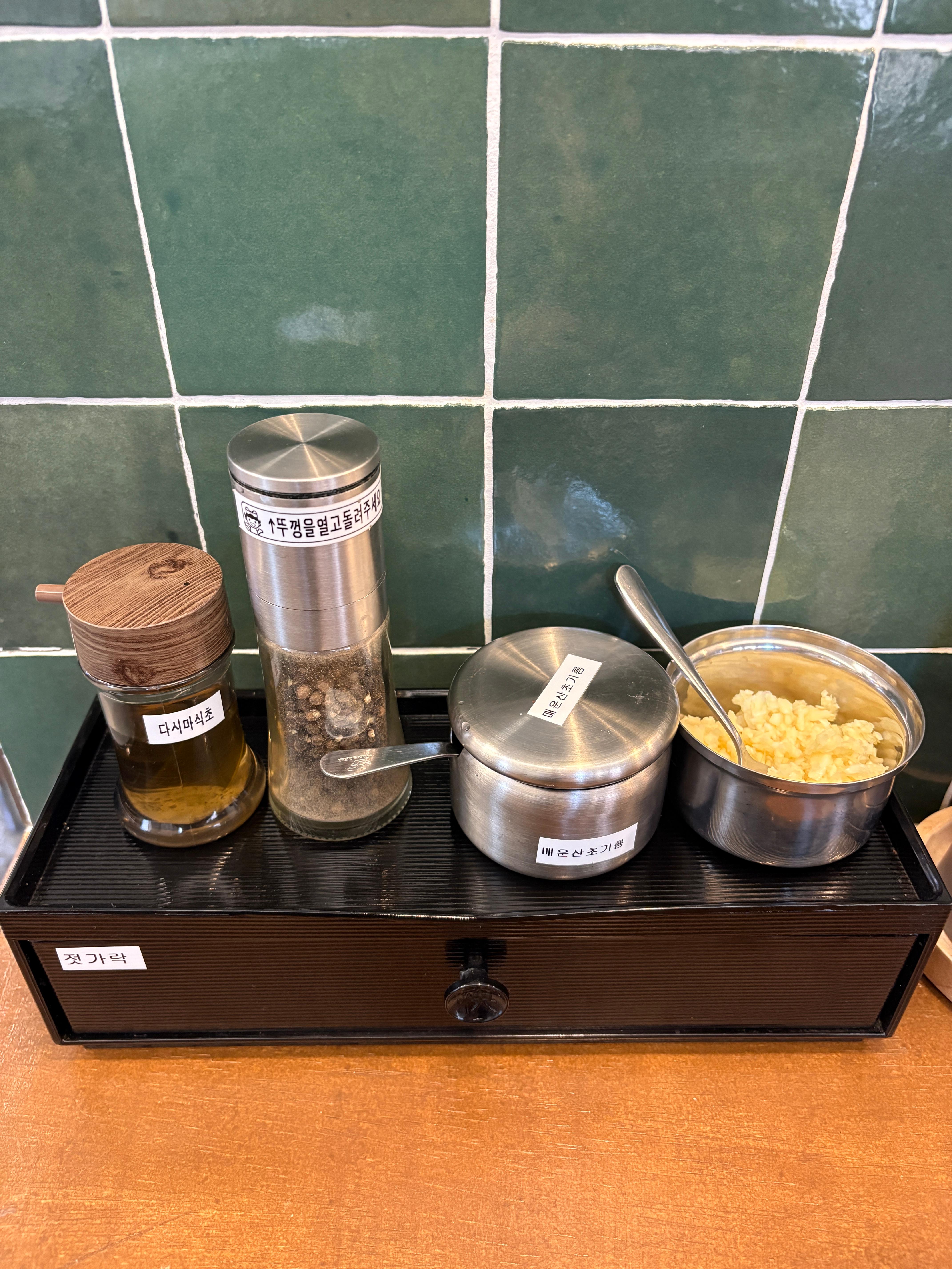 곁들여 먹을 수 있는 소스들은 다음과 같이 구비가 되어있구요, 매운 산초기름이 나름 킥이라면 킥입니다. 츠케멘 마지막 쯤에 넣어서 먹으면 독특한 풍미의 시루가 완성이 됩니다 ㅎㅎ 즐겨 넣는 소스입니다.