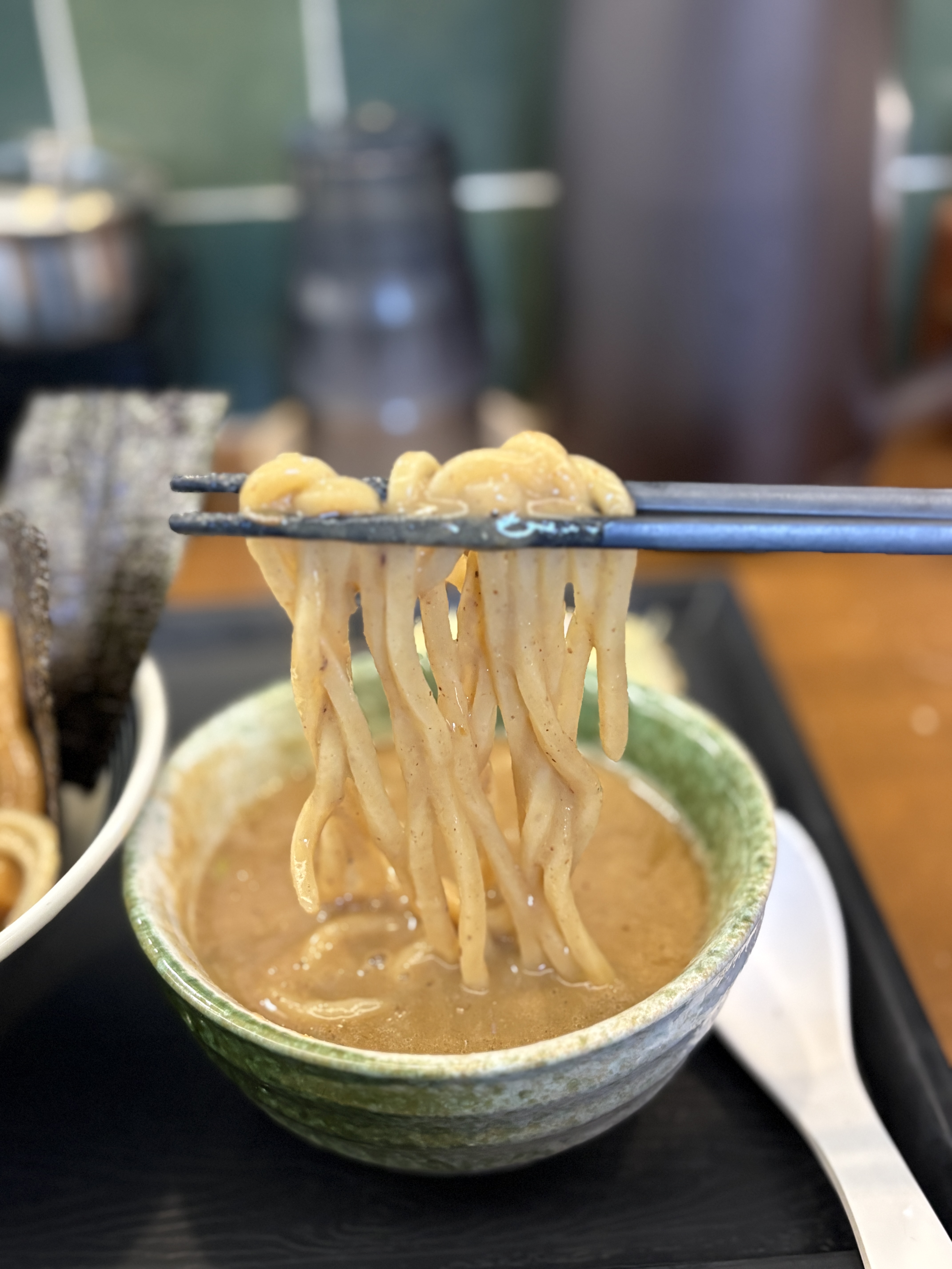 면을 찍어서 먹어보면 점도는 이정도.. 개인적인 취향의 츠케멘과 백프로 부합하진 않았지만, 일단 니보시를 사용해주신 점과 명절에 이벤트를 해주신 점 등 아주 감사히 맛있게 먹은 츠케멘이었습니다. 앞으로도 명절마다 신세지겠습니다..! 해주신다면..!