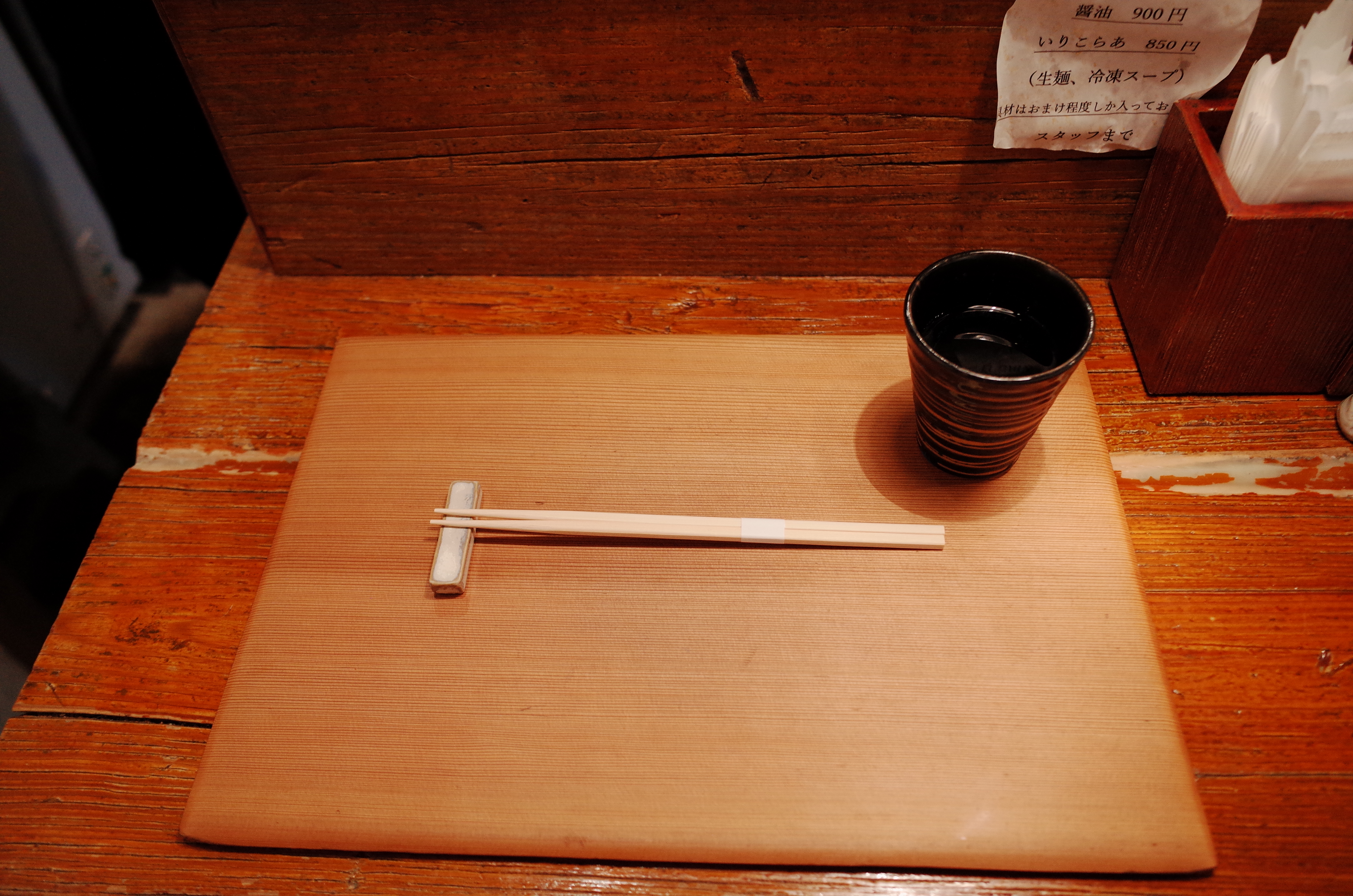 가게 내부는 모두 다찌석으로 되어있으며 사장님과 점원 두분이서 모든 일들을 처리하고 계셨습니다. 좌석은 총 8석이었고, 명성에 비해 가게 내부는 매우 좁은 편입니다. 라멘의 조리과정이나 점원의 얼굴등이 나오는 가게 내부 사진의 촬영은 엄격하게 금지하고 계셔서 라멘이 나오는 공간의 촬영만 가능했습니다. 전반적으로 조용하게 라멘을 즐기는 분위기이며, 사장님과 점원 모두 매우 친절하셨어요. 점원분이 영어가 서투신데도 열심히 도와주시려하는게 인상적이었습니다.