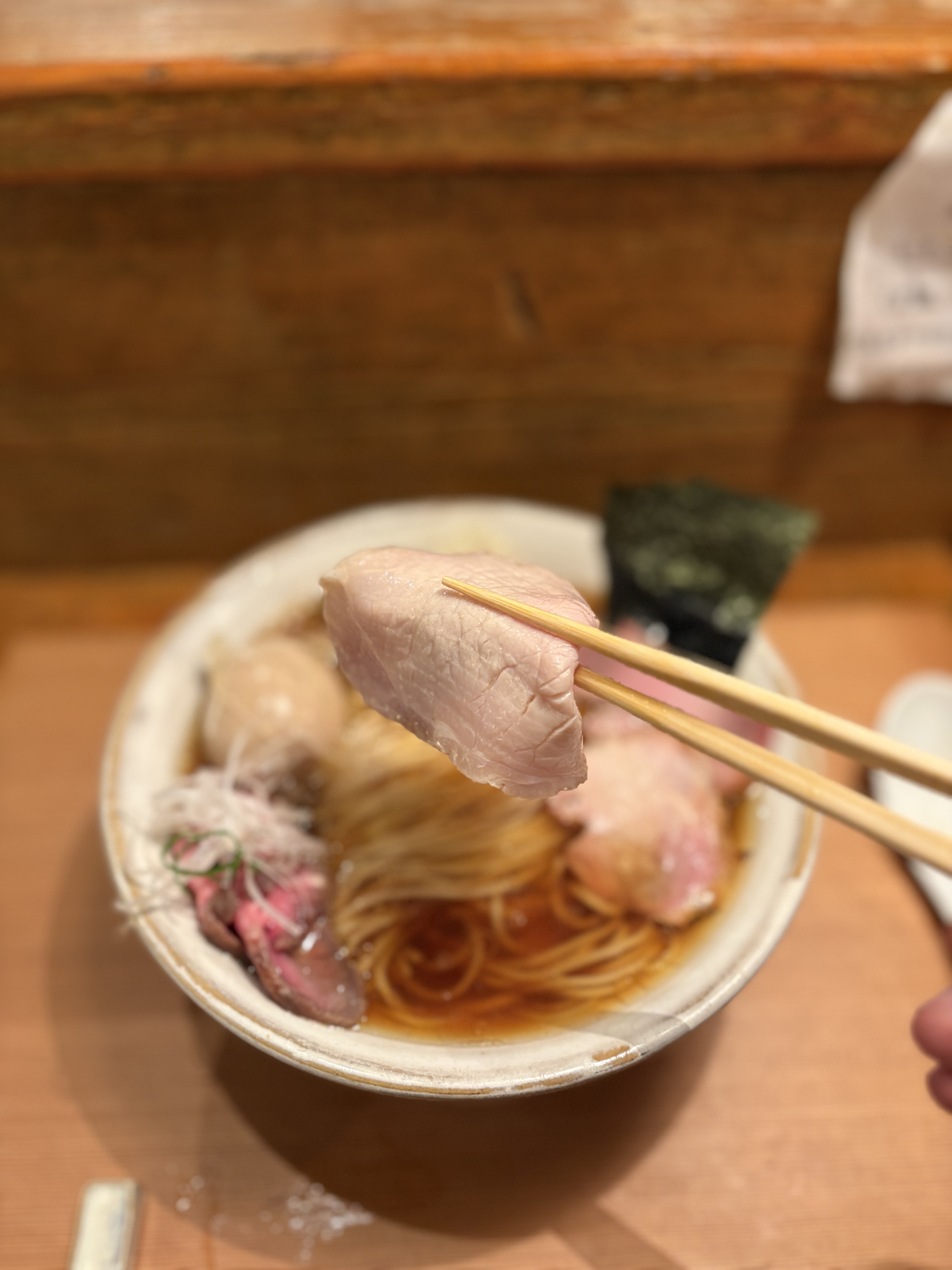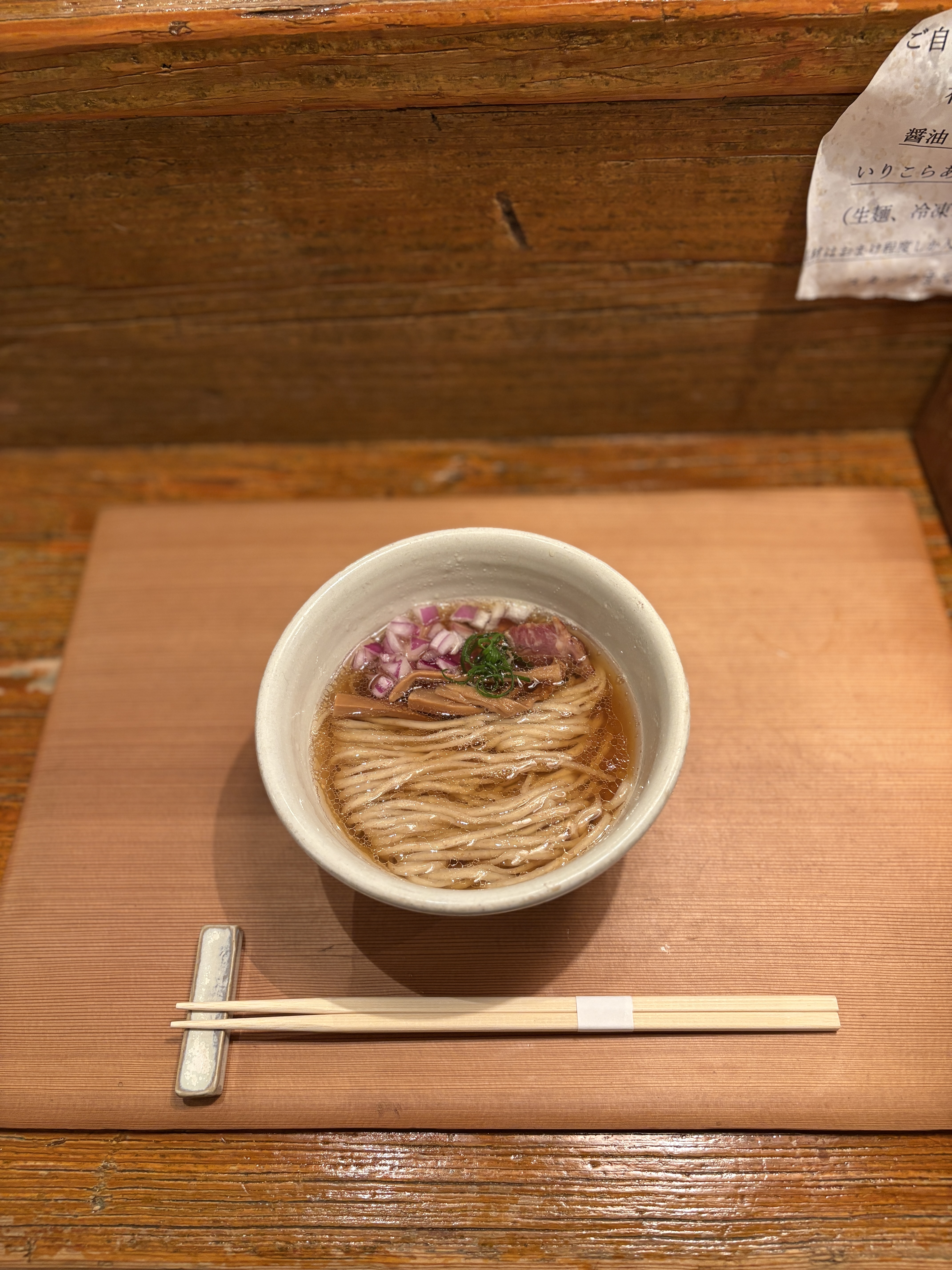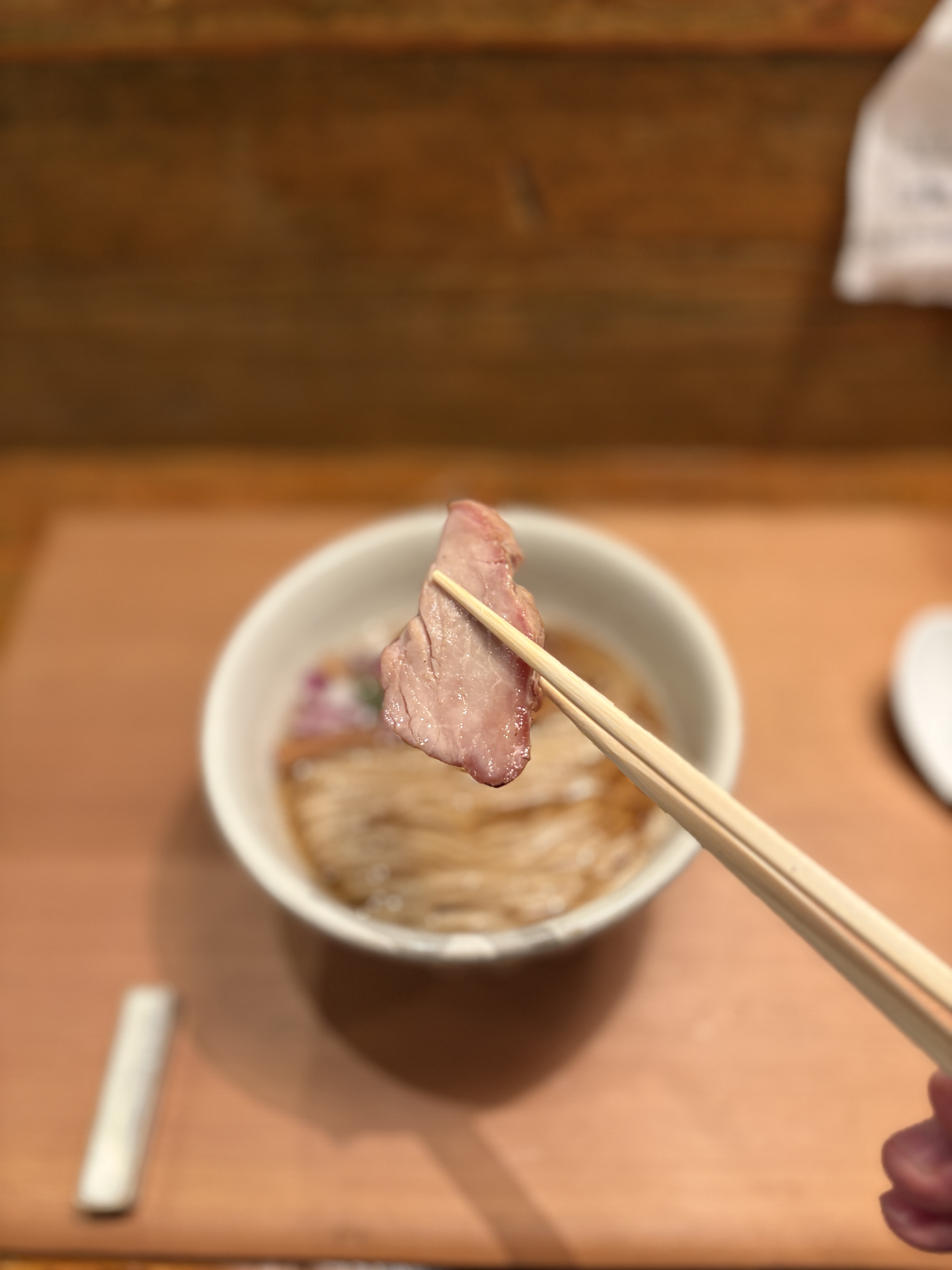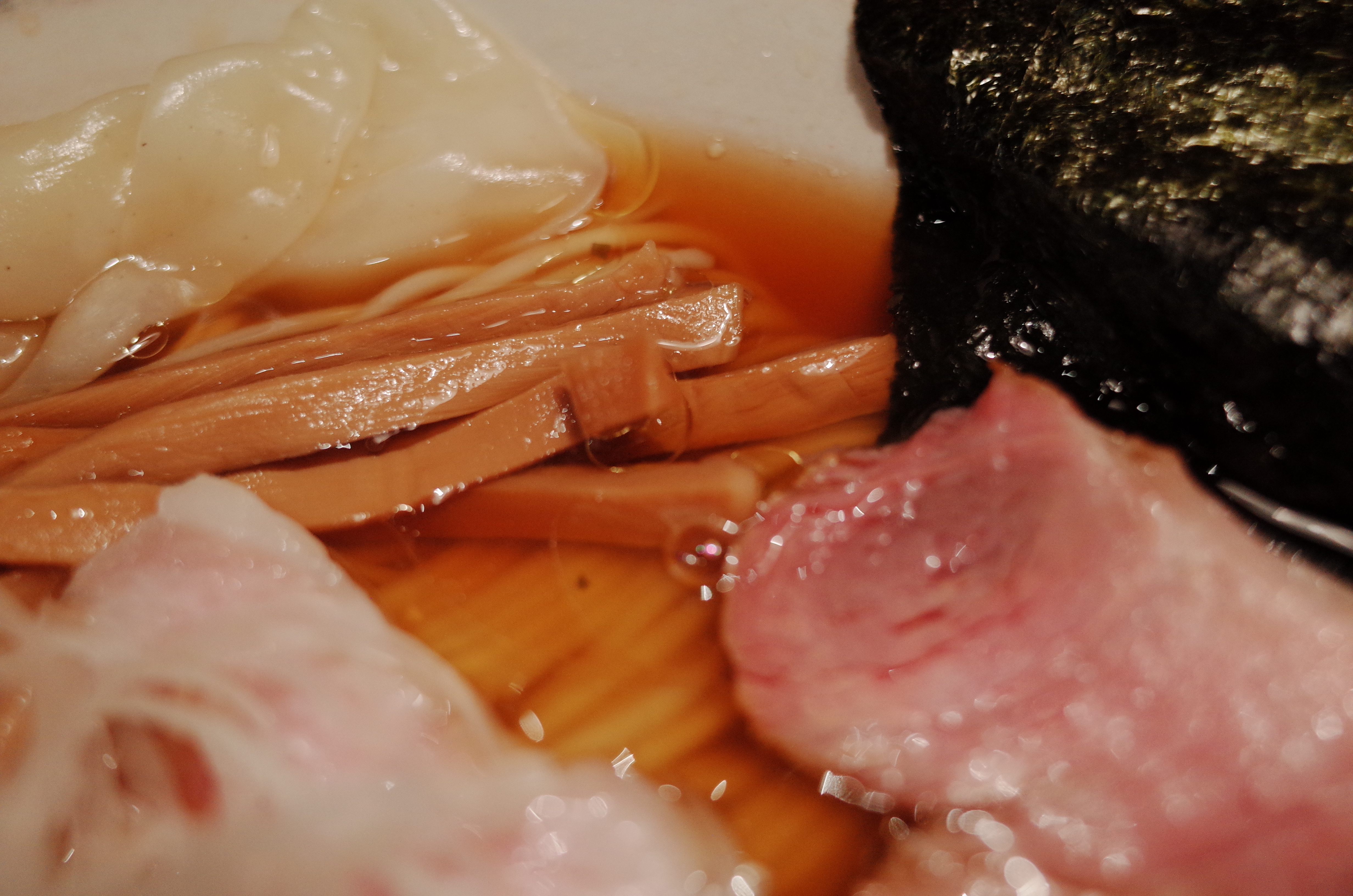향미유층이 명확하지만 두텁지는 않습니다. 쇼유라멘이지만 속이 비칠 정도로 투명하고 맑은 스프에 감칠맛을 둥그스름하게 감싸주는 간장의 향. 라멘이 나온 순간부터 마음이 경건해집니다.