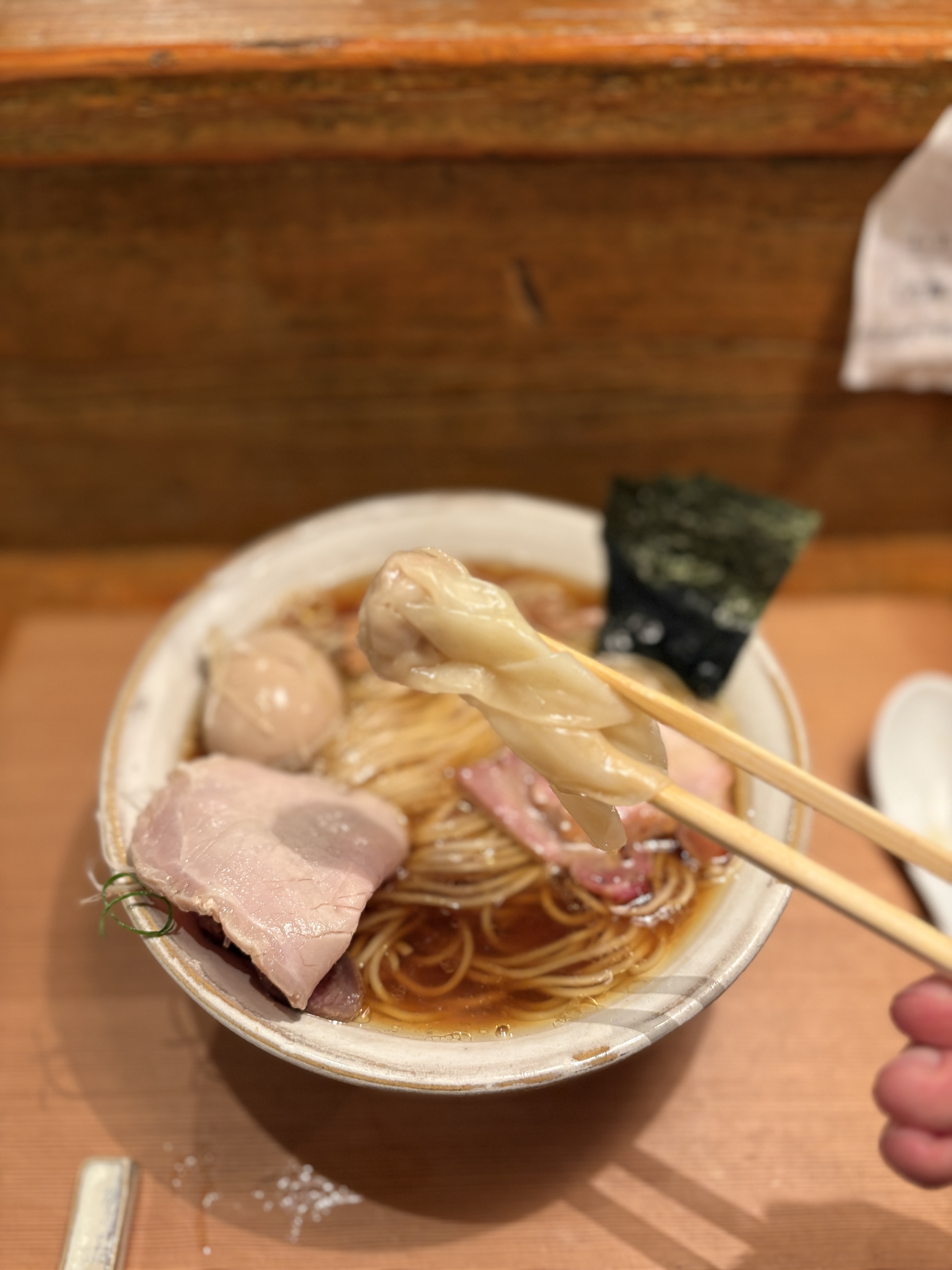 완탕에 대한 후한 평가들이 많은데 솔직히 제가 완탕에 대해서는 크게 감명을 받지 못하는 타입인지라.. (하지만 이이다쇼텐에선 달랐다는..) 그래도 내부에 들어있는 생강의 맛도 좋은 생강을 사용하는게 느껴지는 맛이었고 고기맛도 잘 느껴졌습니다. 많이 부들부들한 타입은 아니었구요, 적당히 피의 식감이 느껴지는 타입.