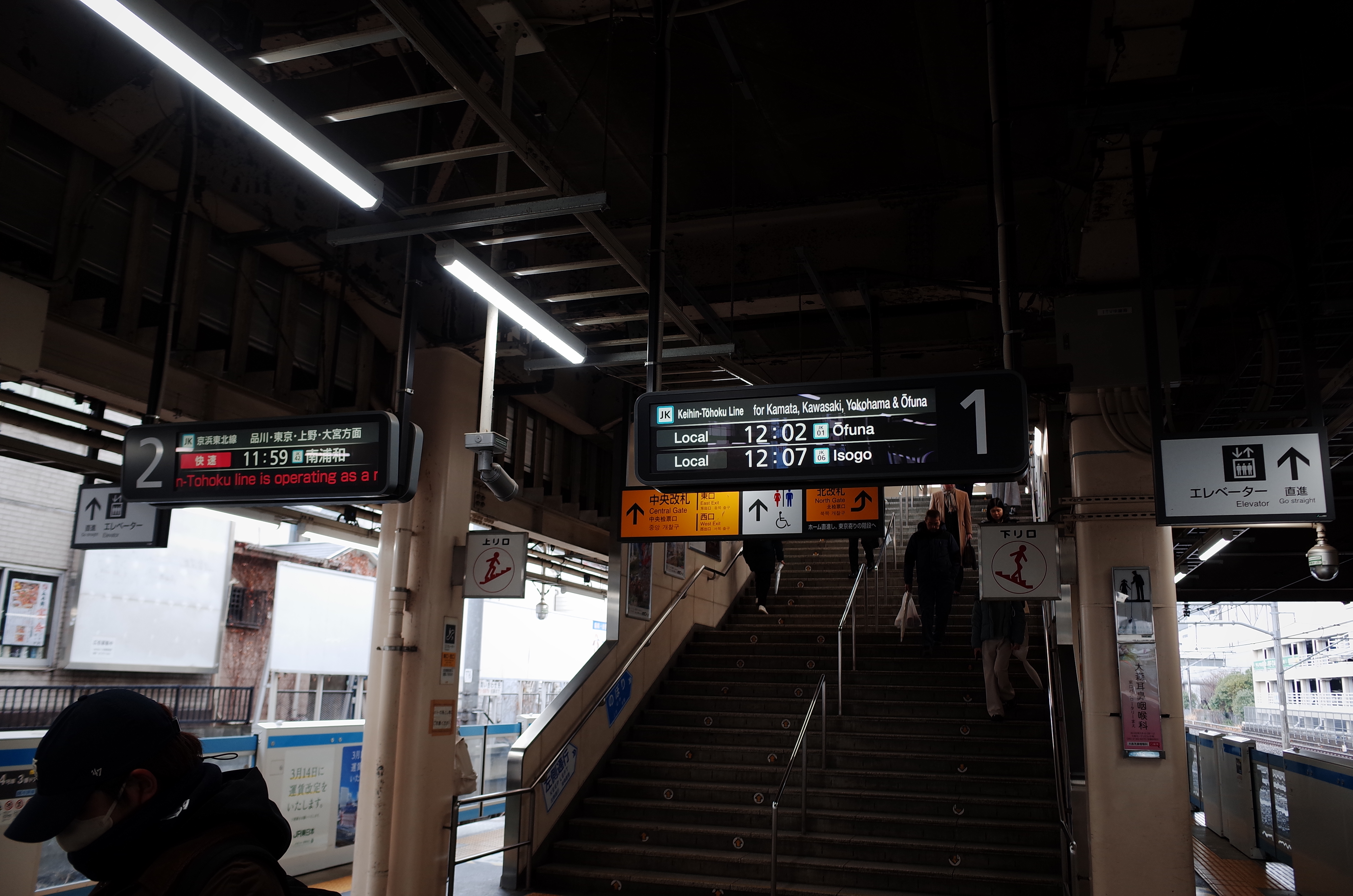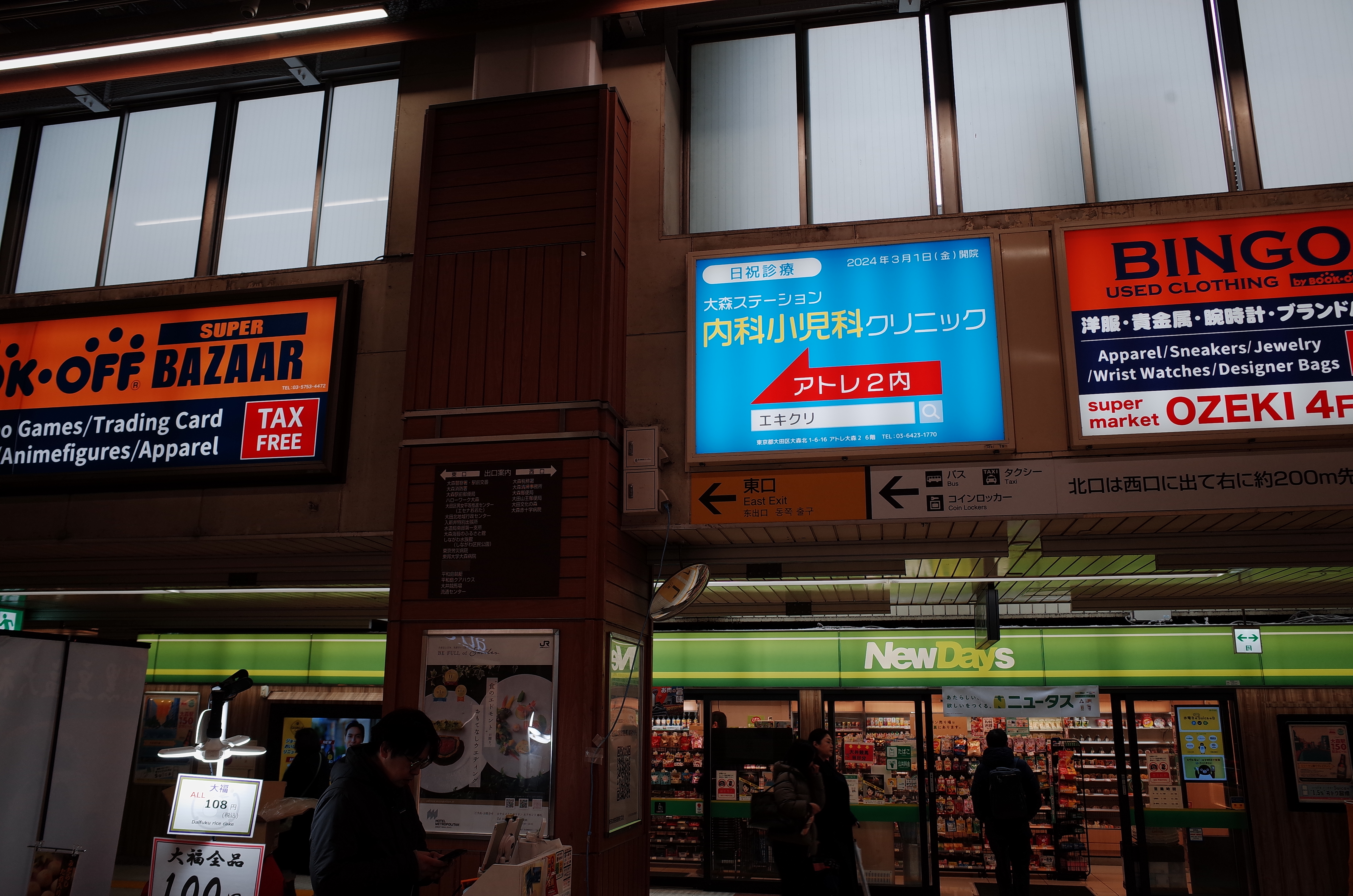 무기나에는 지하철 '오오모리역(大森駅)'에서 하차하여 도보로 걸어갈 수 있는 거리에 위치하고 있습니다. 승강장을 내려 계단을 올라가는 표시를 따라가게 됩니다.