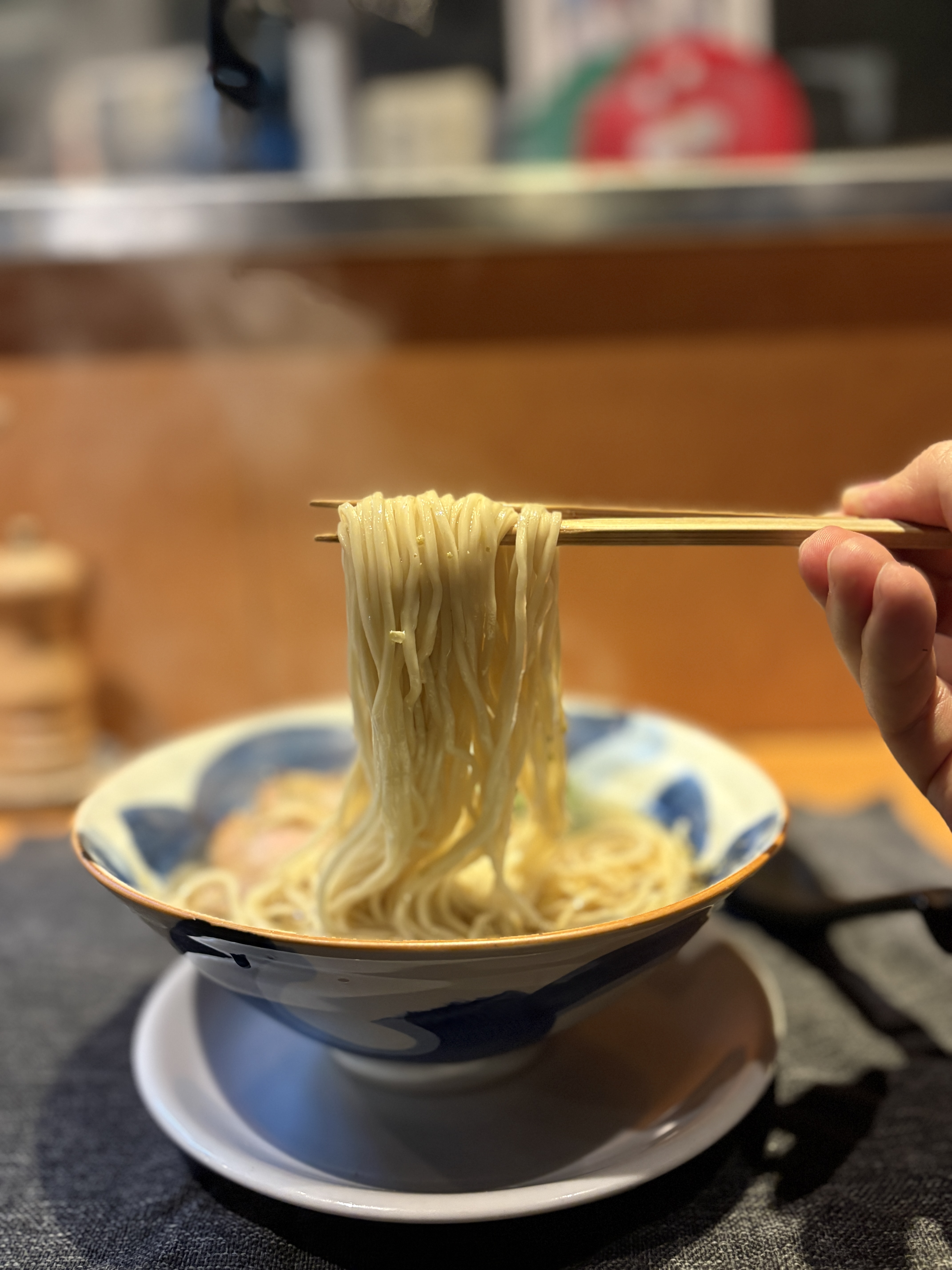 게다가 오픈 당시에는 지금처럼 아름다운 면선으로 유명세를 떨친 것이 아니라, '원코인 라멘' 즉, 500엔으로 먹을 수 있는 가성비 좋은 라멘으로 이름을 날렸다는 사실도 재밌는 과거사 중 하나입니다. 그런 가성비 라멘으로 이름을 날리던 곳이, 와쇼쿠 출신 주인의 통나무들기로 일식의 미학을 접목하여 라멘을 요리의 영역으로 끌어올렸다는 평가를 받게된 현재까지 이르는.. 참으로 독특한 점포가 아닐 수 없습니다.