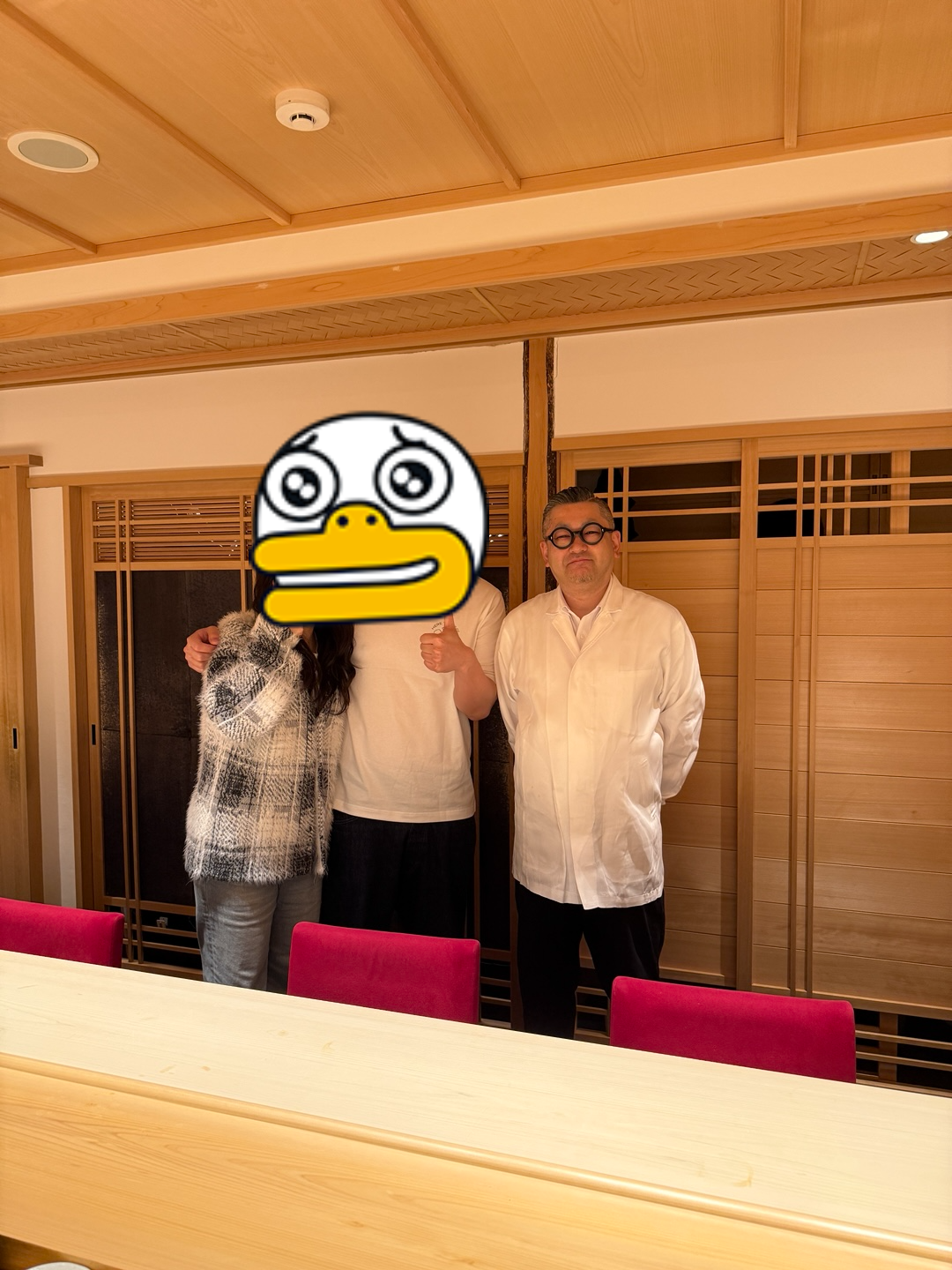 제가 느낀건 이타마에 자체가 영어가 서툴어 외국인을 환대하지 못하는 것도 있지만 스시야에서의 기본적인 룰들을 잘 모르는 외국분들과의 마찰이 있었던 것으로 추정됩니다. 기본적으로 사람이 따뜻하지 않은게 아니라요. 그렇게 느낀 이유는 저희가 코스를 먹으면서 한두마디씩 재료 설명등을 듣고, 질문들도 하면서 룰을 잘 지키는 손님이라는게 보여서 그랬던지, 아니면 저희가 먹고 즐거워하는 모습이 좋았던지 사타케씨도 어느샌가 웃으면서 스시를 건내주시고 이것 저것 설명도 해주시고.. 사진도 같이 찍고.. 마지막에는 밖에까지 나와서 배웅까지 해주셨다는.. 아무튼 혹시나 누군가 제 포스팅을 보시고 방문하신다면, 기본적인 룰만 잘 지키고 즐겁게 스시를 즐기신다면 절대 리뷰처럼 딱딱한 이미지로 남지는 않으실 거라는 말을 하고 싶었습니다. 저희가 그렇다고 뭐 매출을 많이 올려주고 술을 많이 시키고 그러지도 않았거든요.