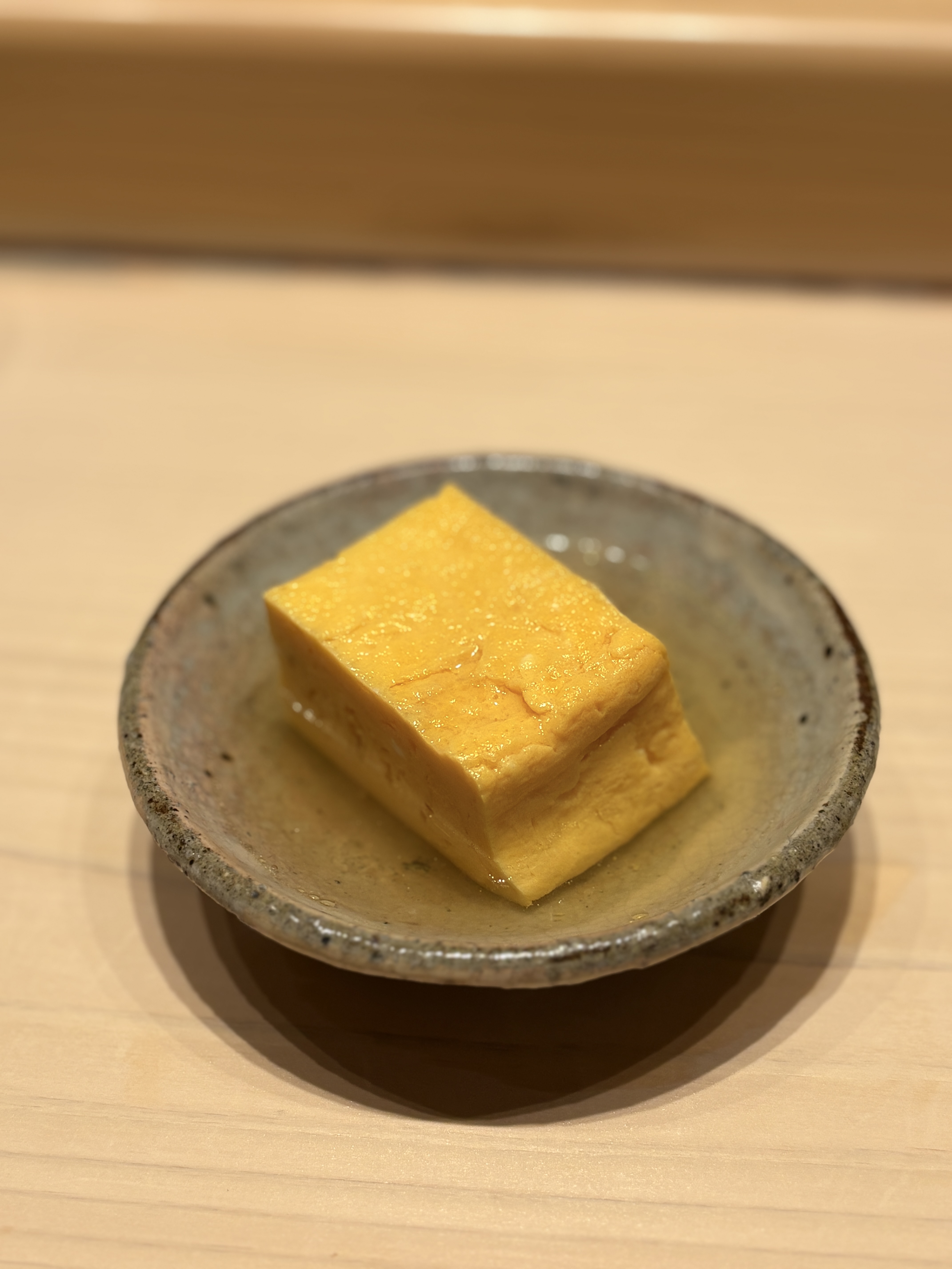 아나고가 나오면 다음 차례는 당연 교쿠죠. 사타케는 교쿠를 다시에 담궈서 내어주는 다시비타시(出汁浸し)을 사용합니다. 앞서 나왔던 단맛과 지방 등의 맛이 강하기 때문에 단맛이 나는 스타일의 전형적인 교쿠를 내는 대신에 감칠맛을 중심으로 잡은 다시에 잠긴 형태로 내어줍니다. 국물까지 마시면 마지막까지 부담없이 이어지는 흐름이 완성이 되는 것이 특징입니다. 이렇게 마무리되면 완벽하지만 자주 올 수 있는 곳이 아니기에 추가로 주문 가능한 메뉴를 여쭤봤습니다. 오늘 컨디션이 좋은 네타가 무엇인지도요.