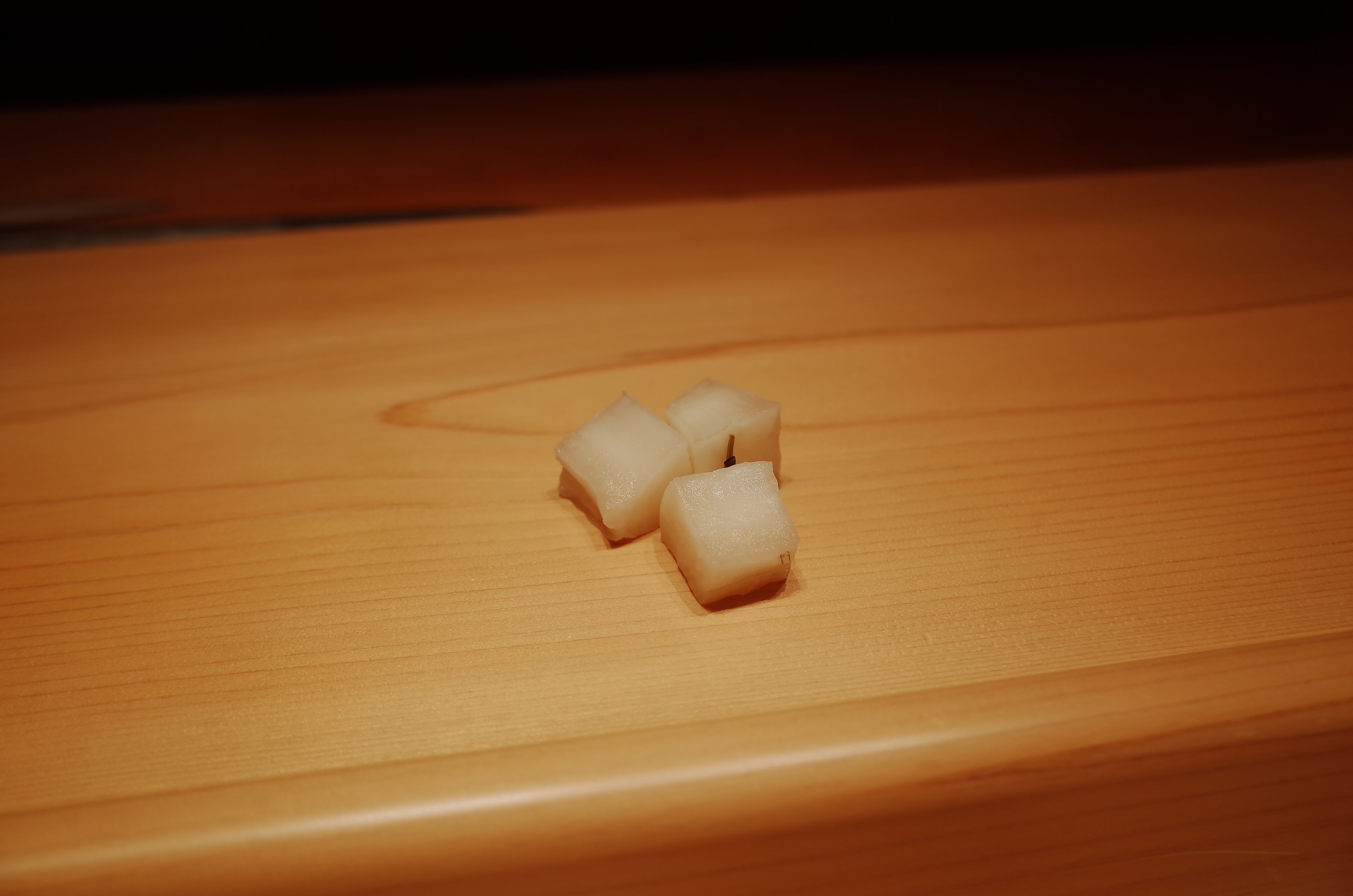 깍둑썰기해둔 직접 만든 뱃다라즈케. 개인적으로 스시랑 먹을 때 가장 좋아하는 츠케모노입니다. 시소구라아게도 좋아하지만 그건 맛이 튀어서 좀 더 저렴한 급의 스시에서 먹는 것을 더 좋아합니다.