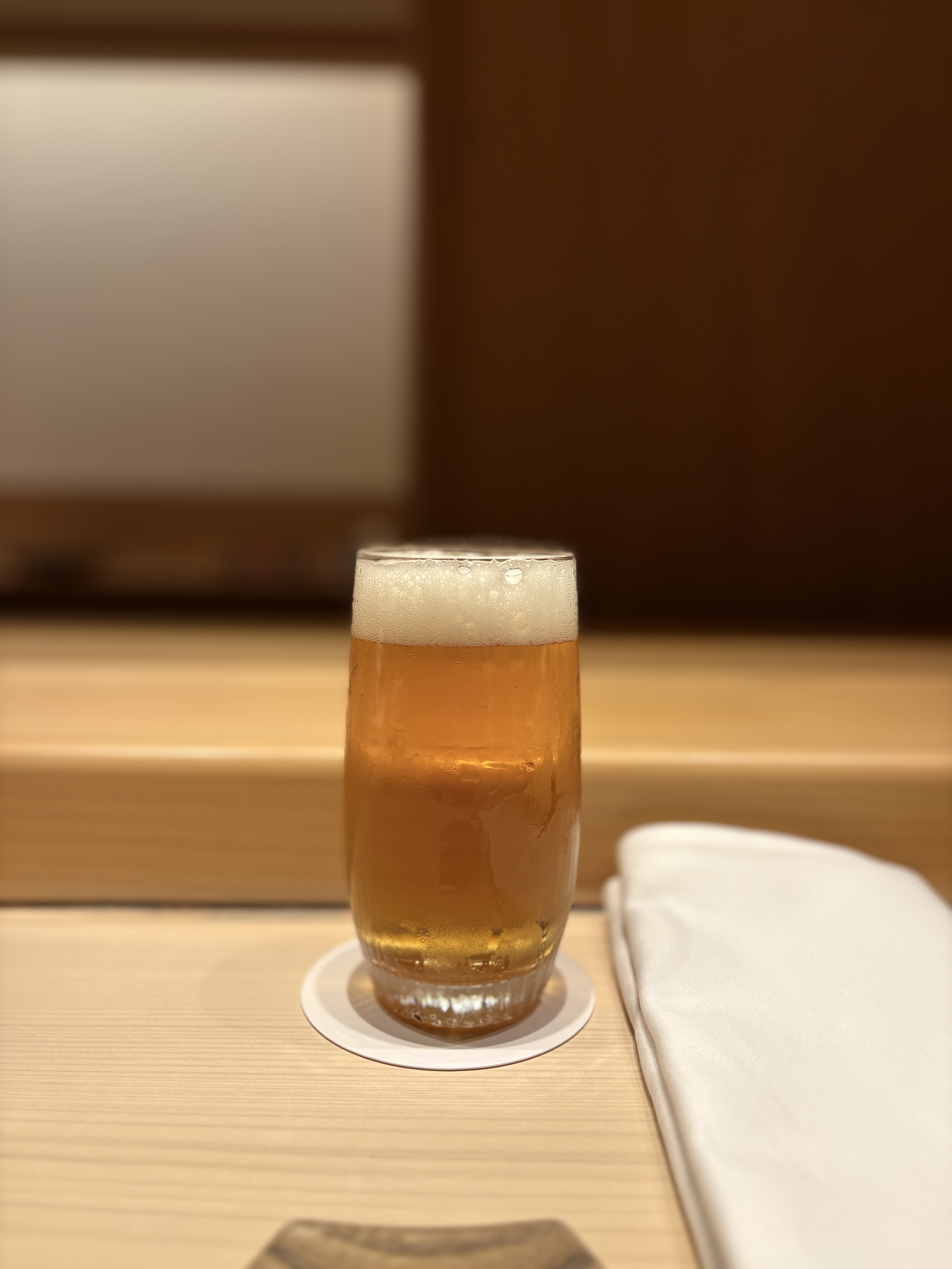 시작전 제 음료로 청한 무알콜 맥주인 '료마 1865(龍馬1865)'입니다. 긴자 하이엔드 스시야에서 자주 선보이는 무알코올 맥주로 그냥 맥주맛이 나는 음료가 아니라 실제 맥주 제조 공정을 기반으로 만들어진 정통 일본 크래프트 계열의 무알코올 맥주입니다. 실제로 마셔보면 다른 무알콜 기성품 맥주들과는 격이 다른 맥주와 흡사한 맛을 느낄 수 있습니다 ㅎㅎ