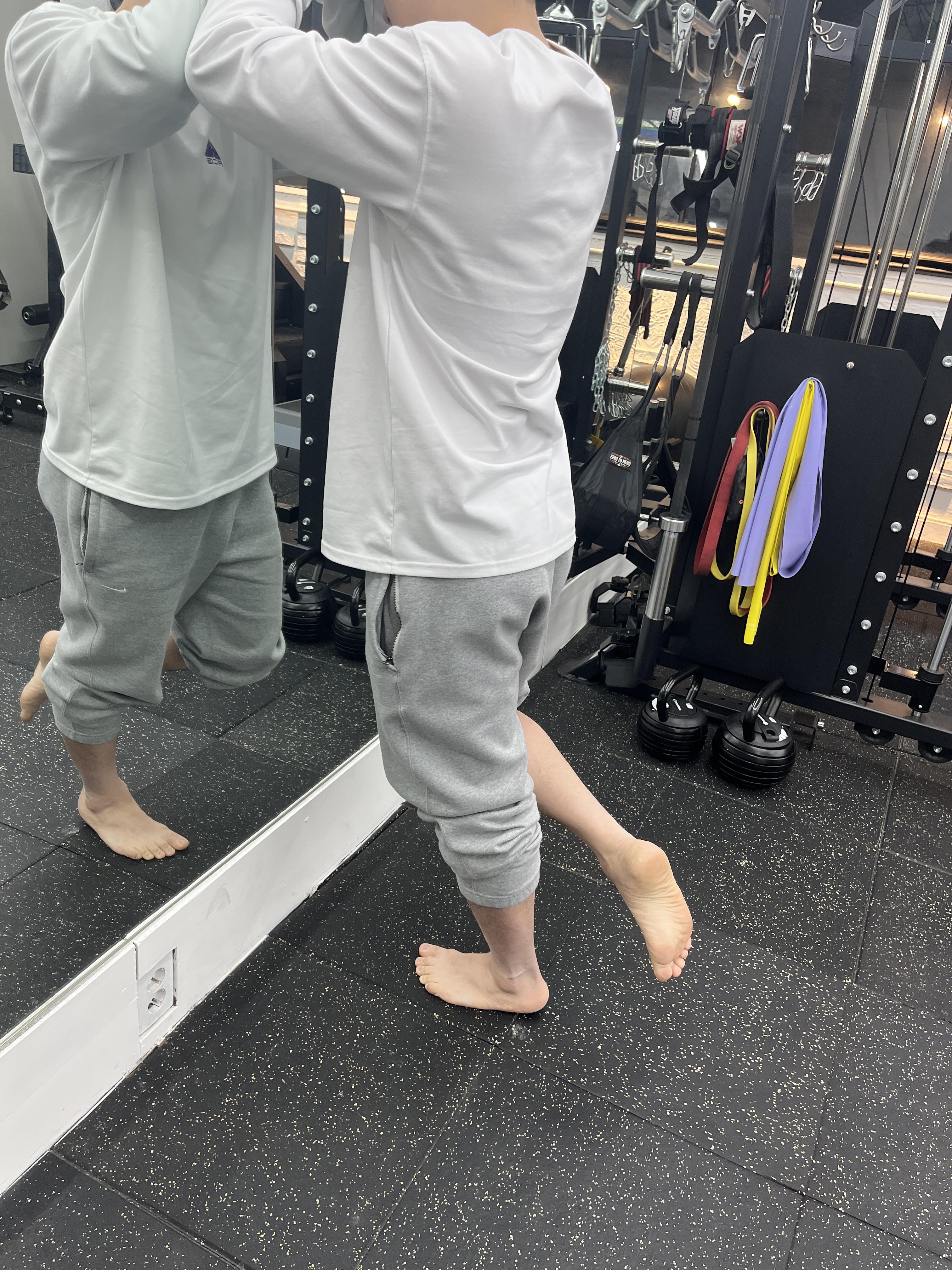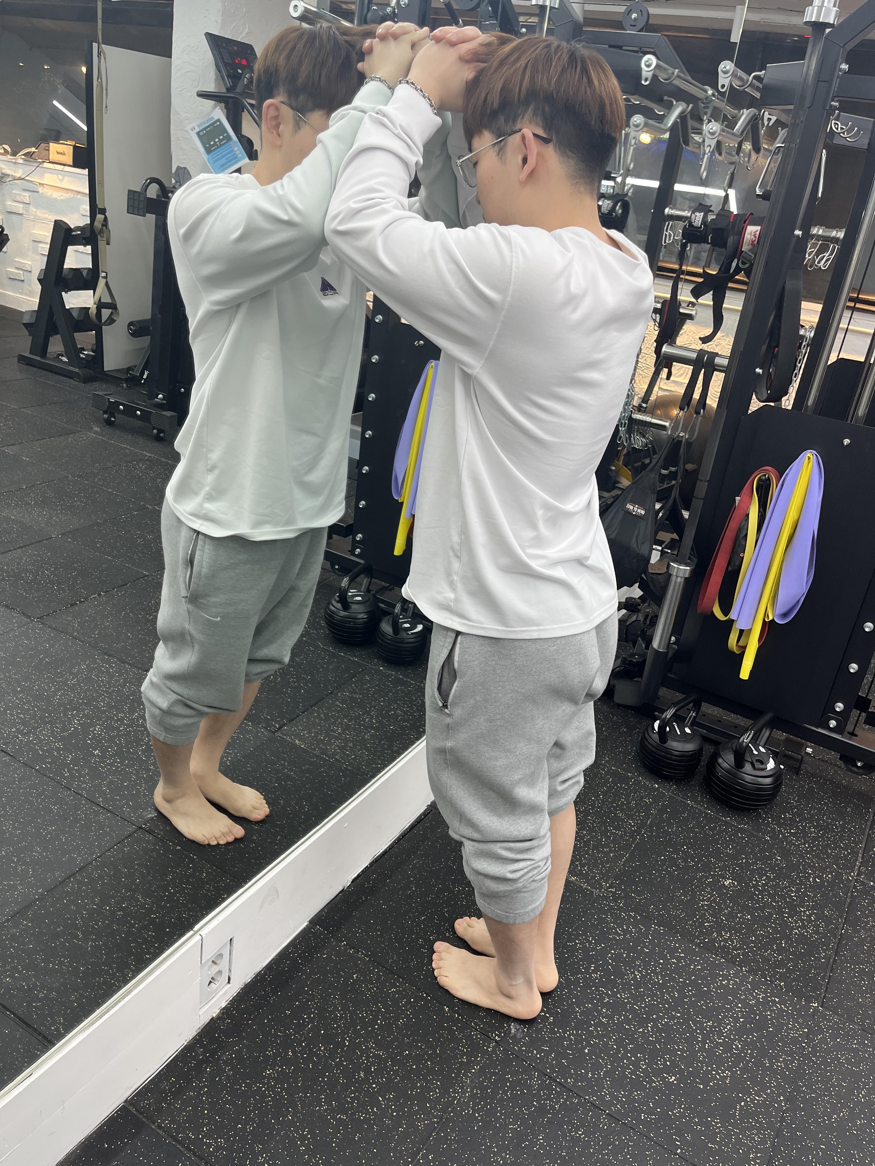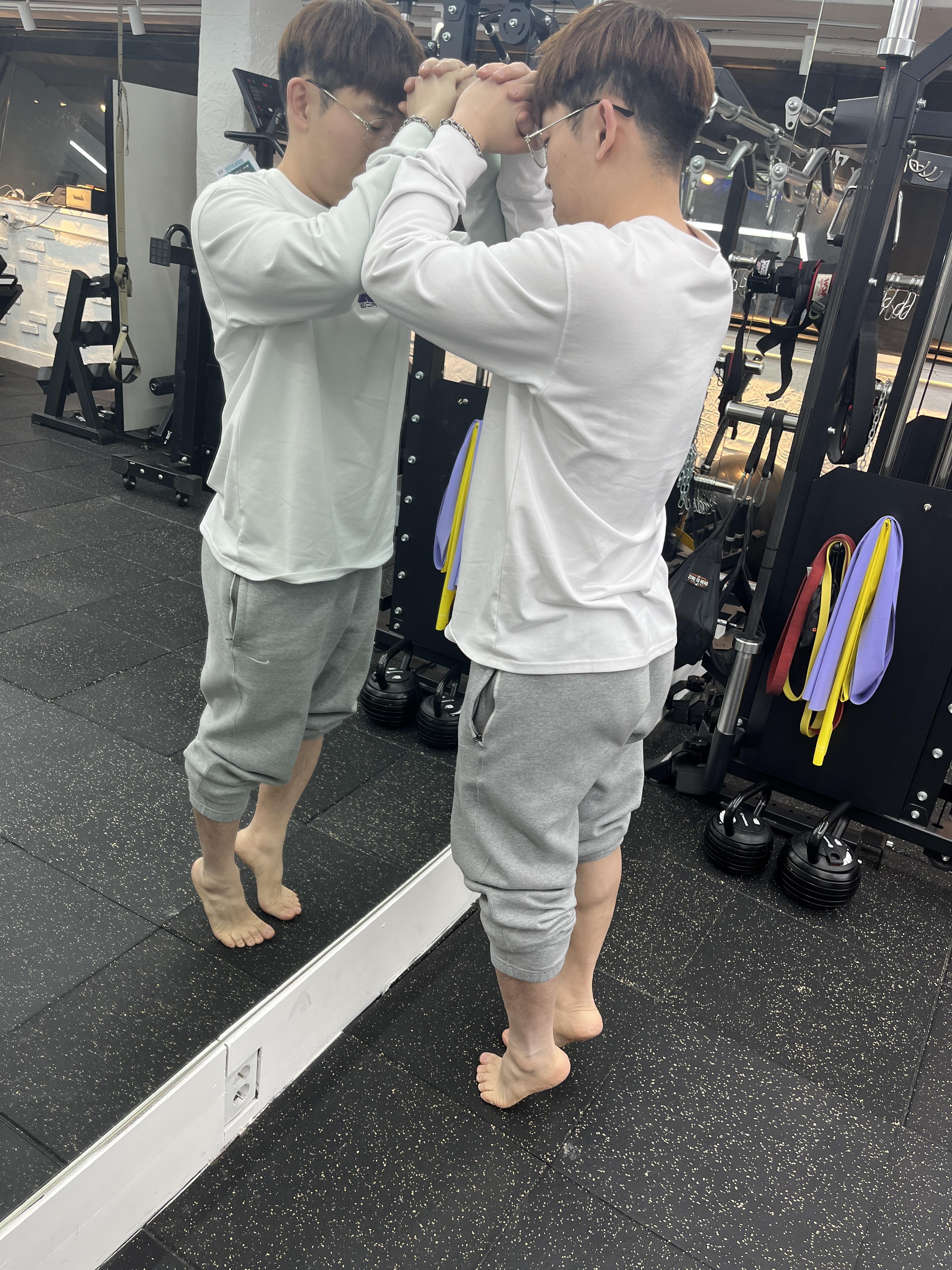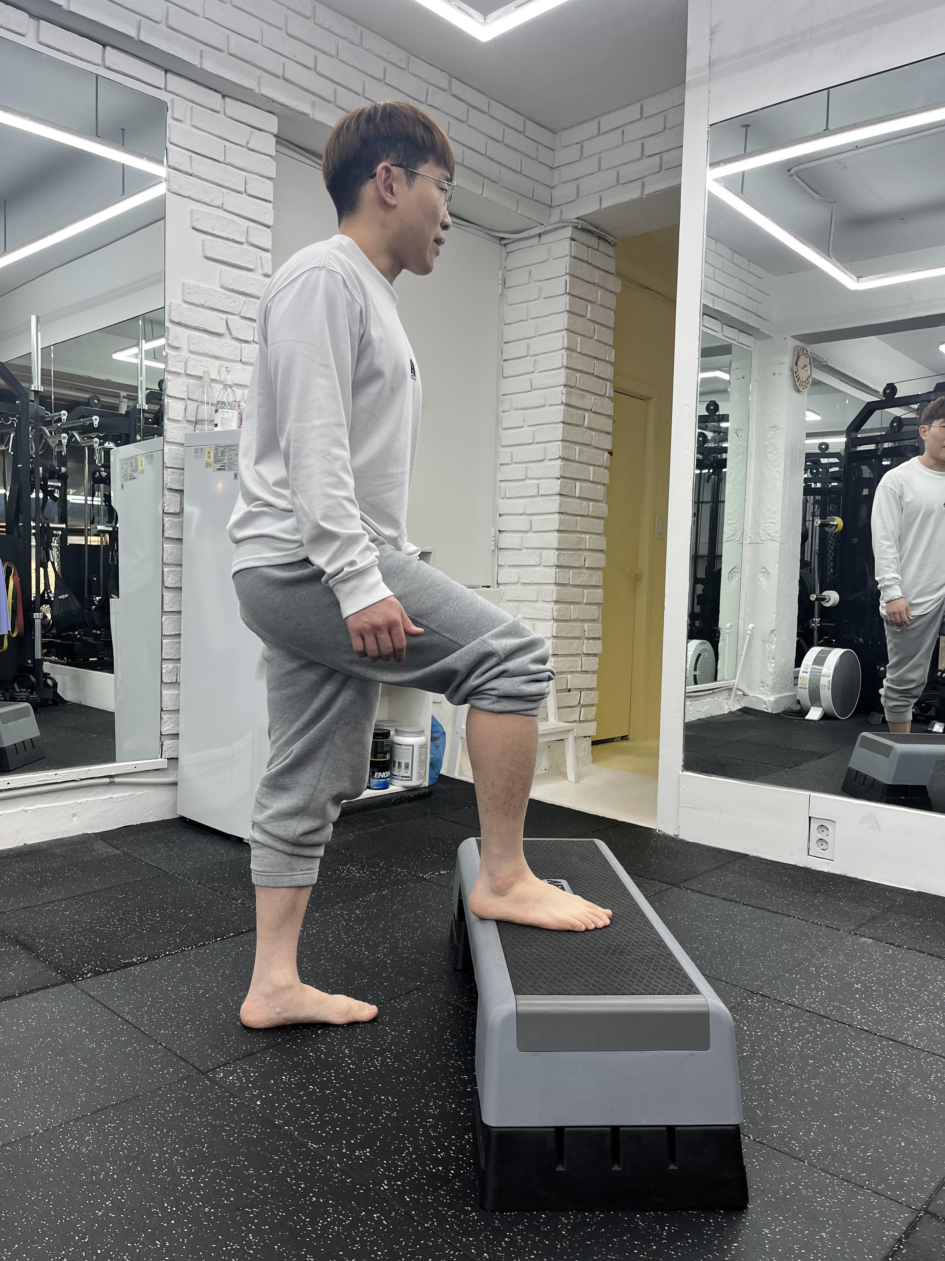 양 발의 뒤꿈치 아킬레스건에 동일한 부하가 가해질 수 있도록, 동시에 발뒤꿈치를 올려줍니다. 이전 스트레칭을 충분히 시행하고 하는 것이 역시 중요하겠죠?