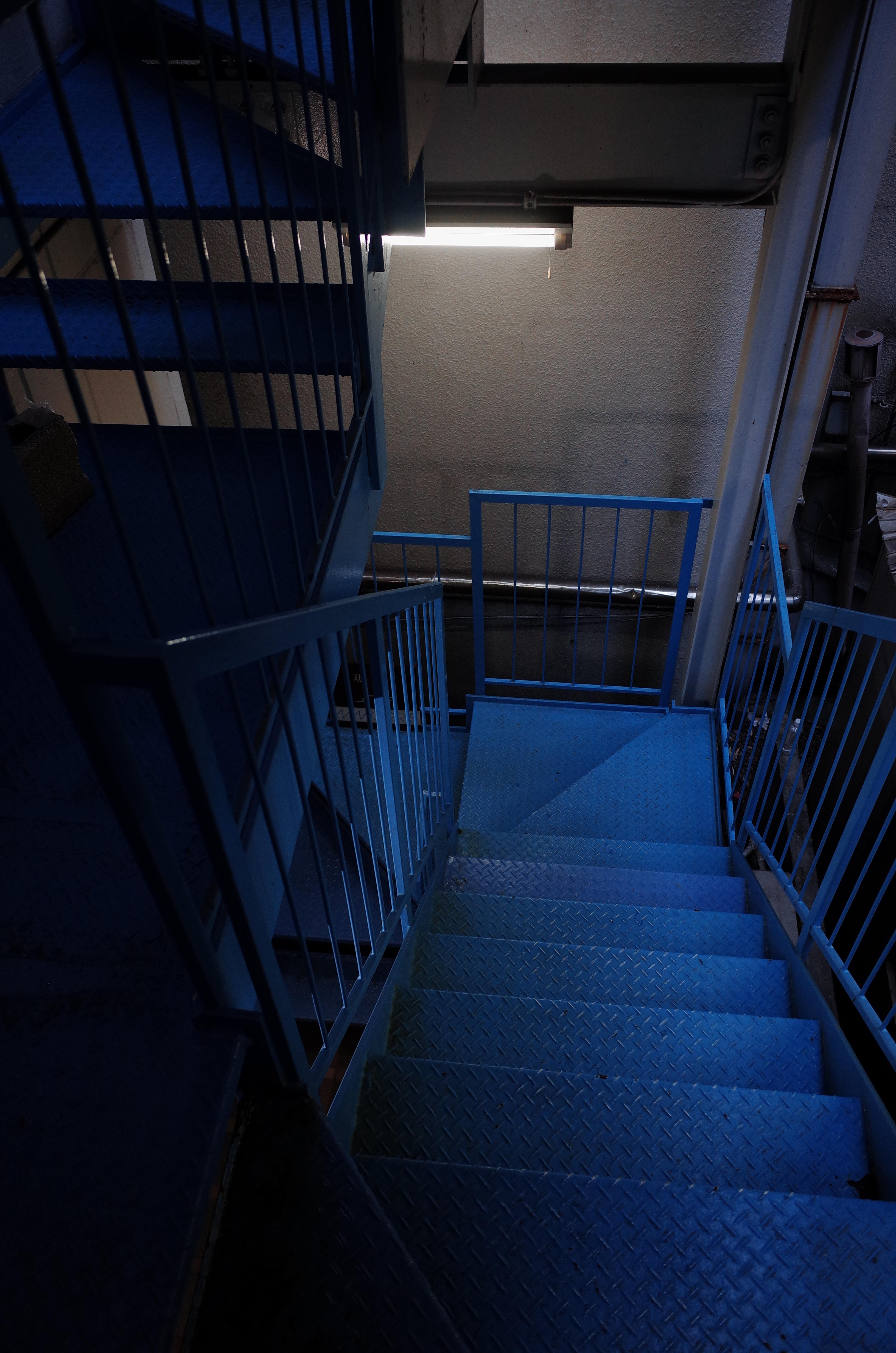 2층으로 올라가는 계단이 매우 특히하게도 하늘색에 가까운 블루톤으로 칠해져있습니다. 범상치 않은 공간인 것 같다는 느낌을 여기서부터 받을 수 있습니다. 자칫 칙칙해 보일 수 있는 내부 계단을 이렇게 포인트를 주니 괜찮네요.