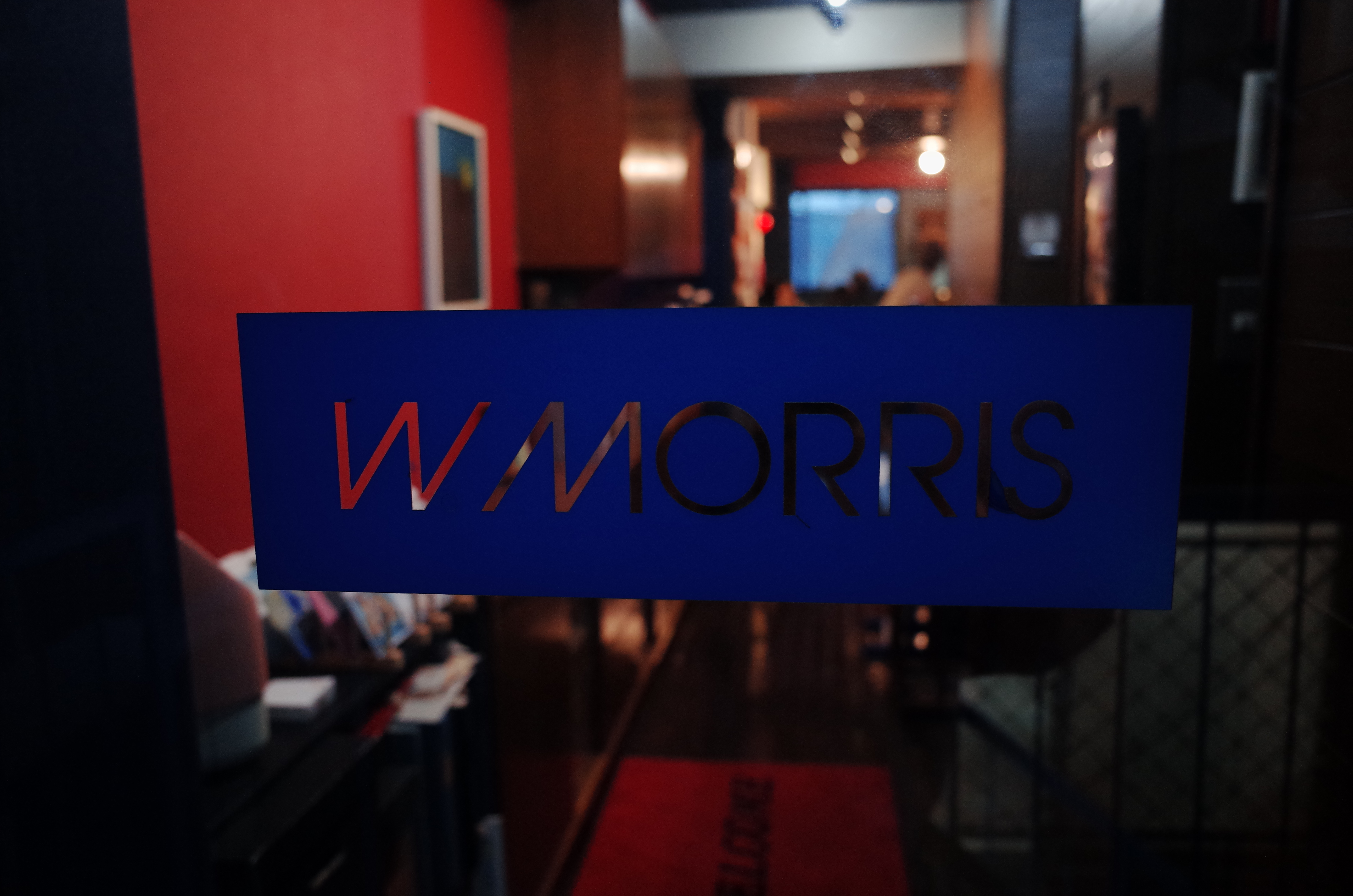 이렇게 내부 공간으로 들어가면 따뜻한 우드톤의 디자인과 붉은색 벽면, 그리고 푸른색 계열의 그림들이 반겨줍니다. 조명부터 가구 위치까지 어느 하나 신경쓰지 않은 곳이 없습니다.