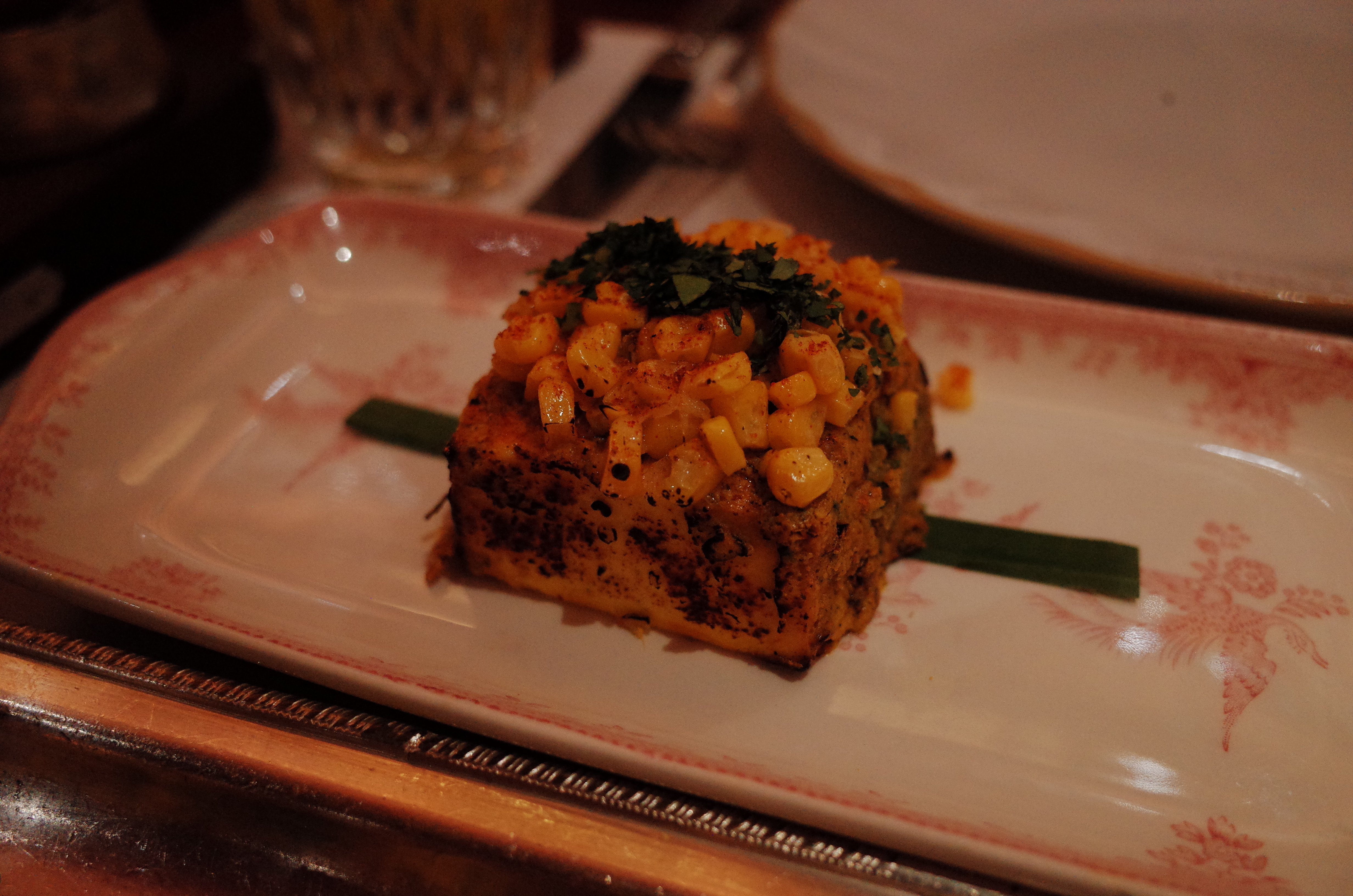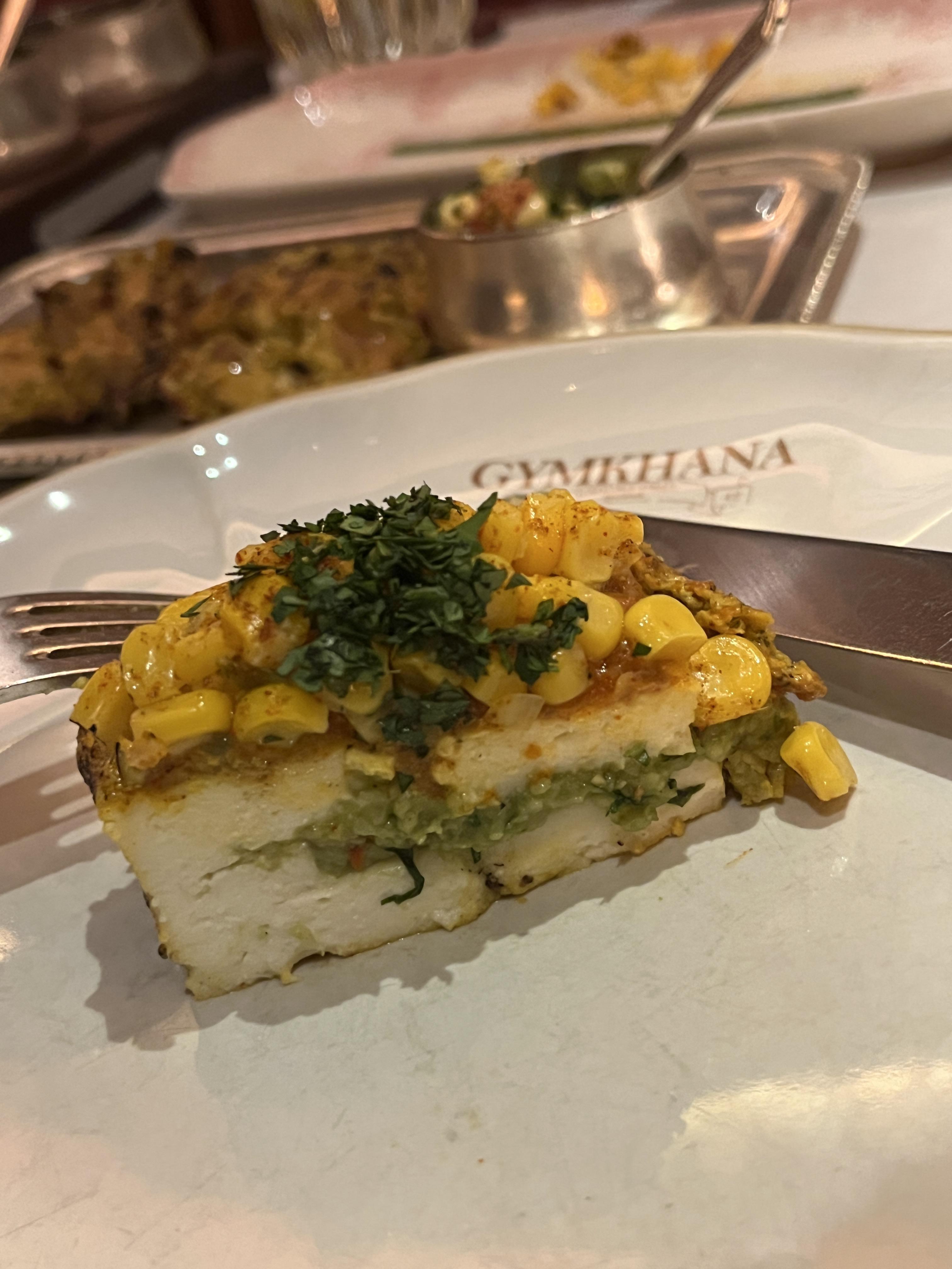 Achari Paneer Tikka는 본래 스타터 요리로 인도식으로 숙성/응고된 치즈를 큐브처럼 모양을 잡은 뒤 다른 재료들과 함께 꼬챙이에 꽂아서 나오는 경우가 많습니다. 한국에서도 인도 레스토랑에서 "Paneer Tikka"라는 것을 많이 볼 수 있는데요, 수많은 종류의 Paneer Tikka의 하나의 배리에이션이라고 생각하시면 되겠습니다. 짐카나에서는 이를 본인들의 스타일로 재해석하여 내놓았는데요, Corn Chaat이라는 옥수수를 이용한 Chaat를 얹었고, 무화과와 캐슈넛으로 그 맛을 더했습니다. 식감은 치즈의 식감이 주를 이루는데, 마치 약간 단단한 두부를 먹는 것같은 식감이고, 꾸리구리하지 않고 고소한 치즈의 맛이 옥수수, 무화가, 캐슈넛과 조화를 이루면서 극상의 고소함을 끌어냅니다. 아 이 글 쓰면서도 또 먹고 싶네요..
