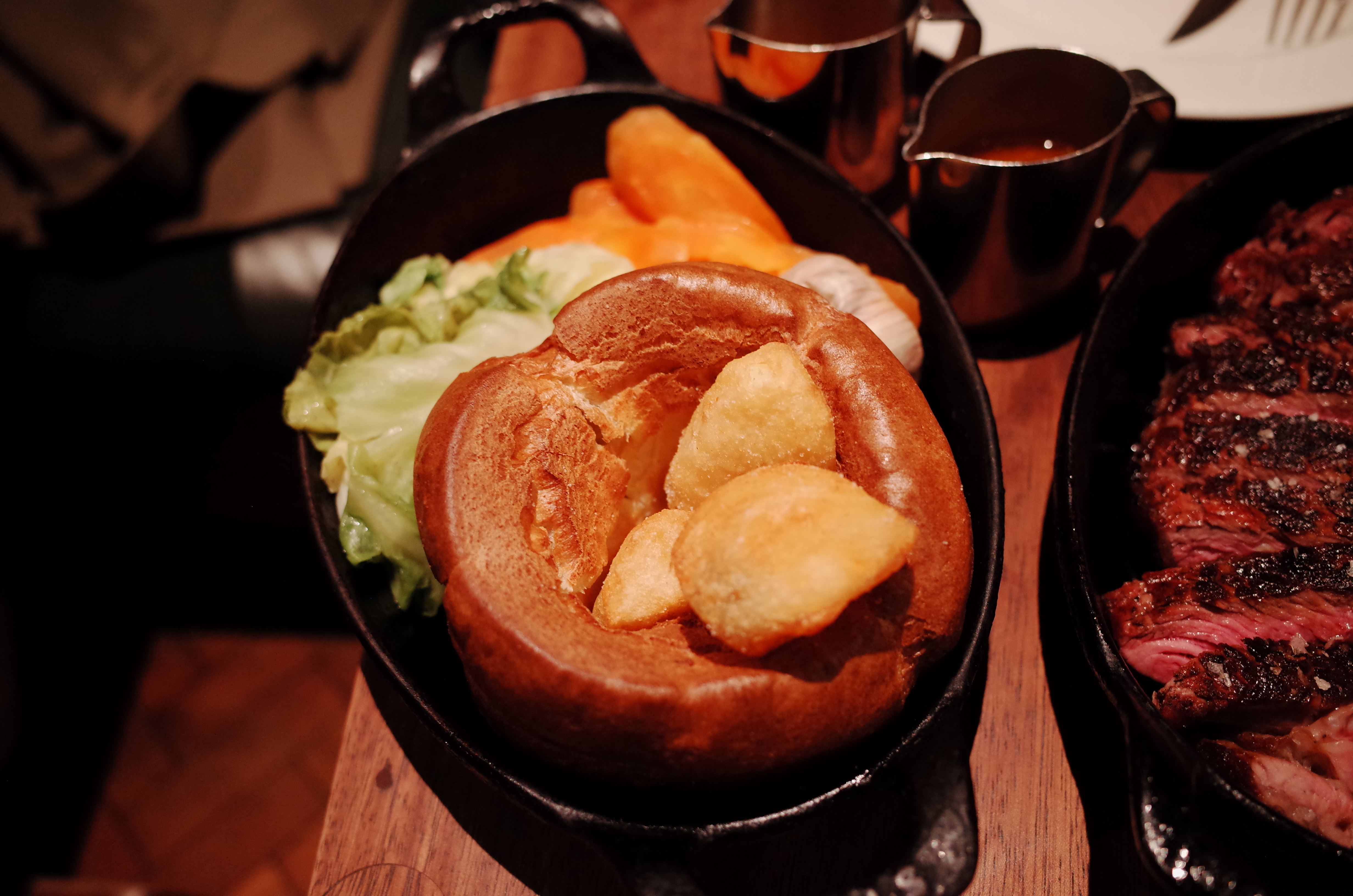 Hawksmoor는 선데이로스트 맛집으로도 유명하지만, 평소에도 수준급의 스테이크를 맛 볼 수 있는 곳이기도 합니다. 선데이 로스트를 이전에 맛본 저로써는, Rump를 장시간 조리하여 극한으로 끌어낸 선데이 로스트 특유의 맛이, 'Rump로 이정도 맛을 낼 수 있구나' 정도의 만족감으로 끝났지, 다른 맛있는 부위들을 뛰어넘을 정도의 큰 감동은 사실 아니었습니다. 그래서 결국 런던 스테이크의 정수를 즐기기로 마음을 먹었는데요, 하지만 선데이 로스트의 구성으로 나오는 요크셔 푸딩과 야채들은 포기할 수 없는 법.. Hawksmoor에서는 다행히 Rump가 아닌 다른 부위들을 포셔닝해서 추가금을 일부 지급하면 선데이 로스트와 같이 구운 야채들과 감자, 그리고 요크셔 푸딩을 세트로 내주는, 일종의 세트메뉴(?)처럼 판매를 하고 있었습니다.
