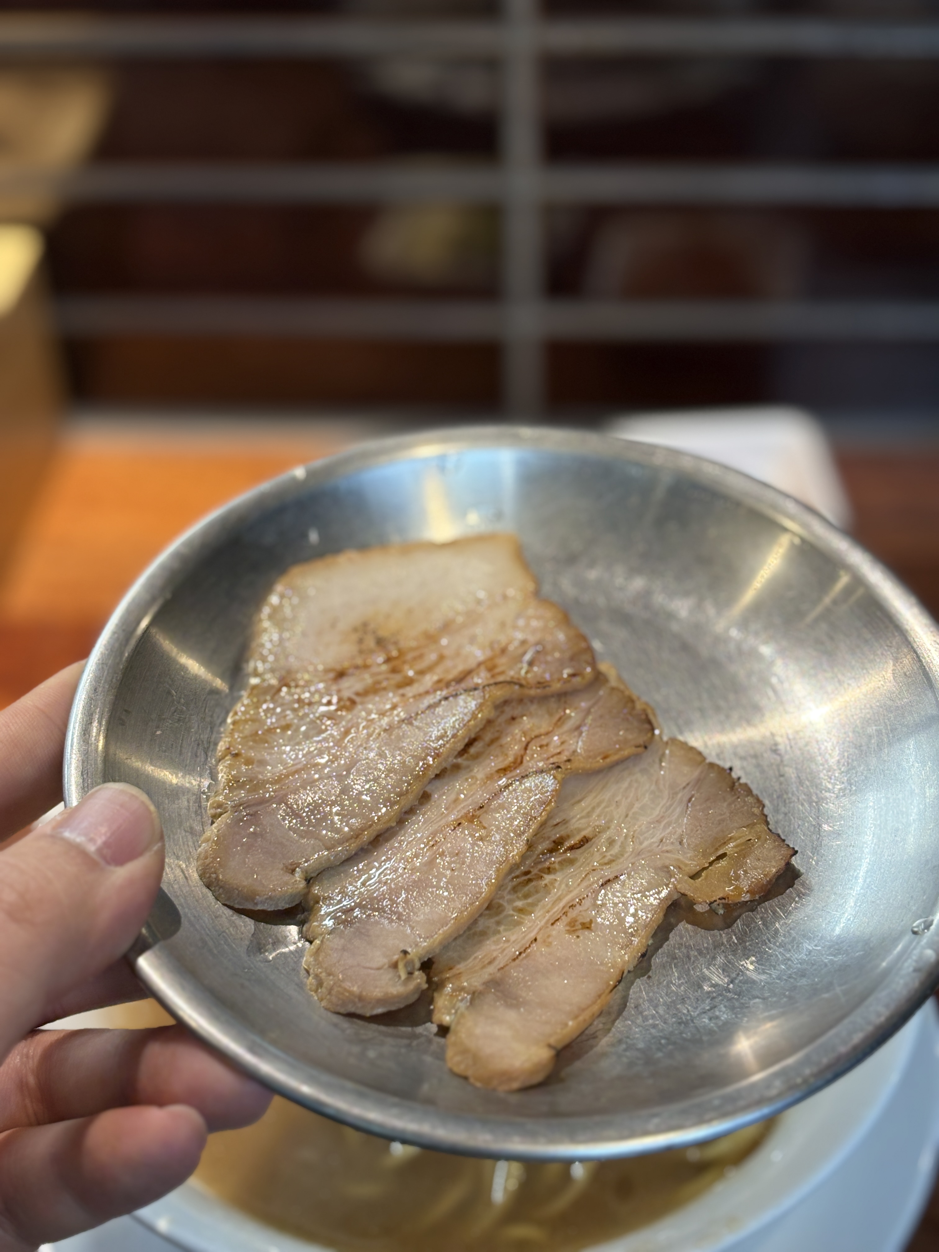 먹고있는 와중에 뭔가 빠졌나 싶었는데, 특이하게도 추가한 차슈가 따로 나오네요. 이렇게 나오니 온도감이 괜찮아서 좋았습니다. 개인적으로 라멘집 중에서 하몽처럼 얇게 썰려서 차갑게 나오는 차슈를 선호하지 않아서, 차슈 또한 제 취향에 맞았습니다.