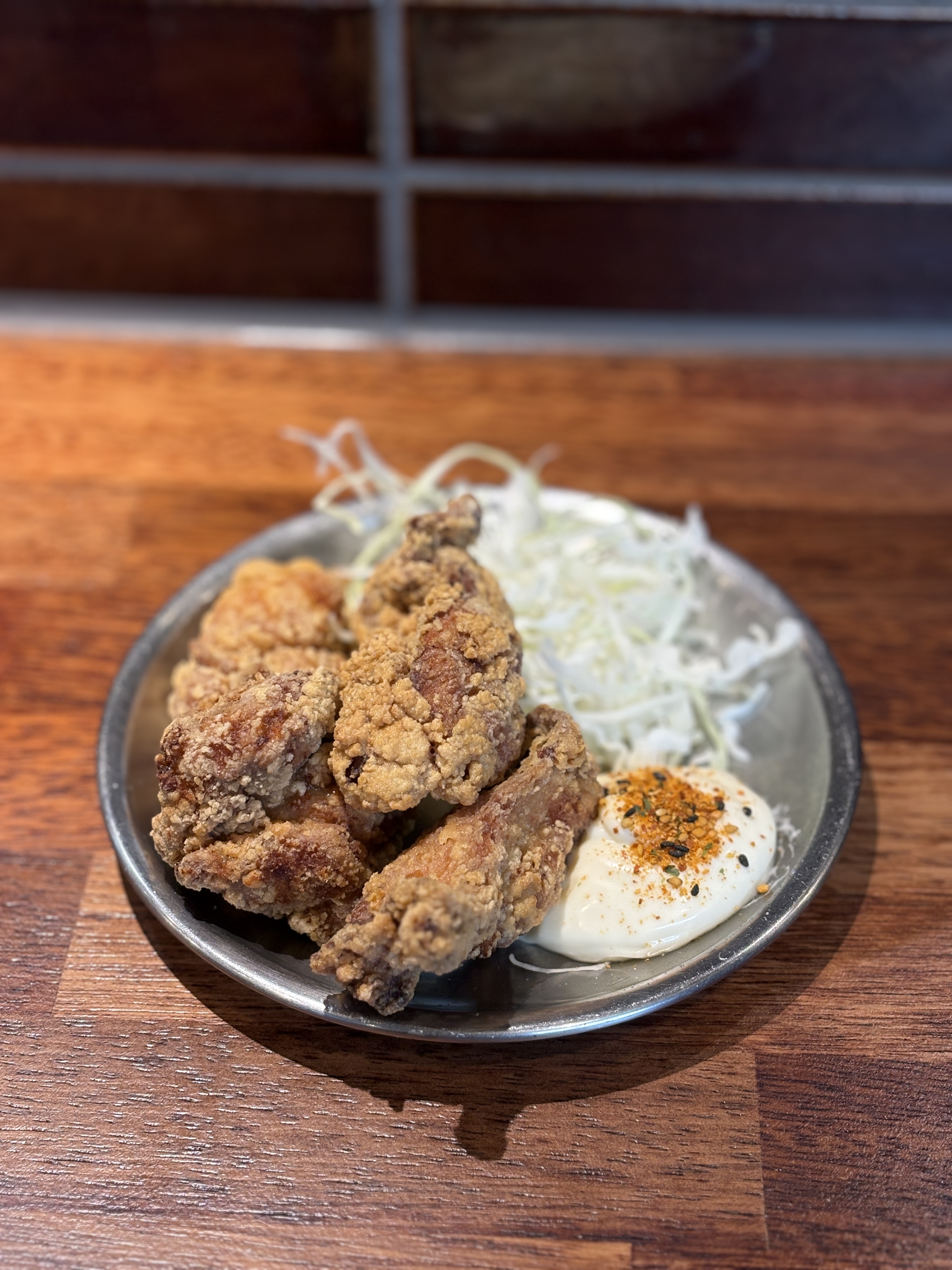 드디어 나온 첫 메뉴, 가라아게입니다. 라멘집에서 사이드 메뉴때메 실망한 집만 한트럭이 될 것 같은데, 맛과양 모두 만족스러웠던 가라아게입니다. 레몬을 곁들여 줬으면 더 좋았겠다 싶지만, 남부럽지 않은 가라아게였습니다. 양배추샐러드를 곁들여 준 것도 가산 포인트.