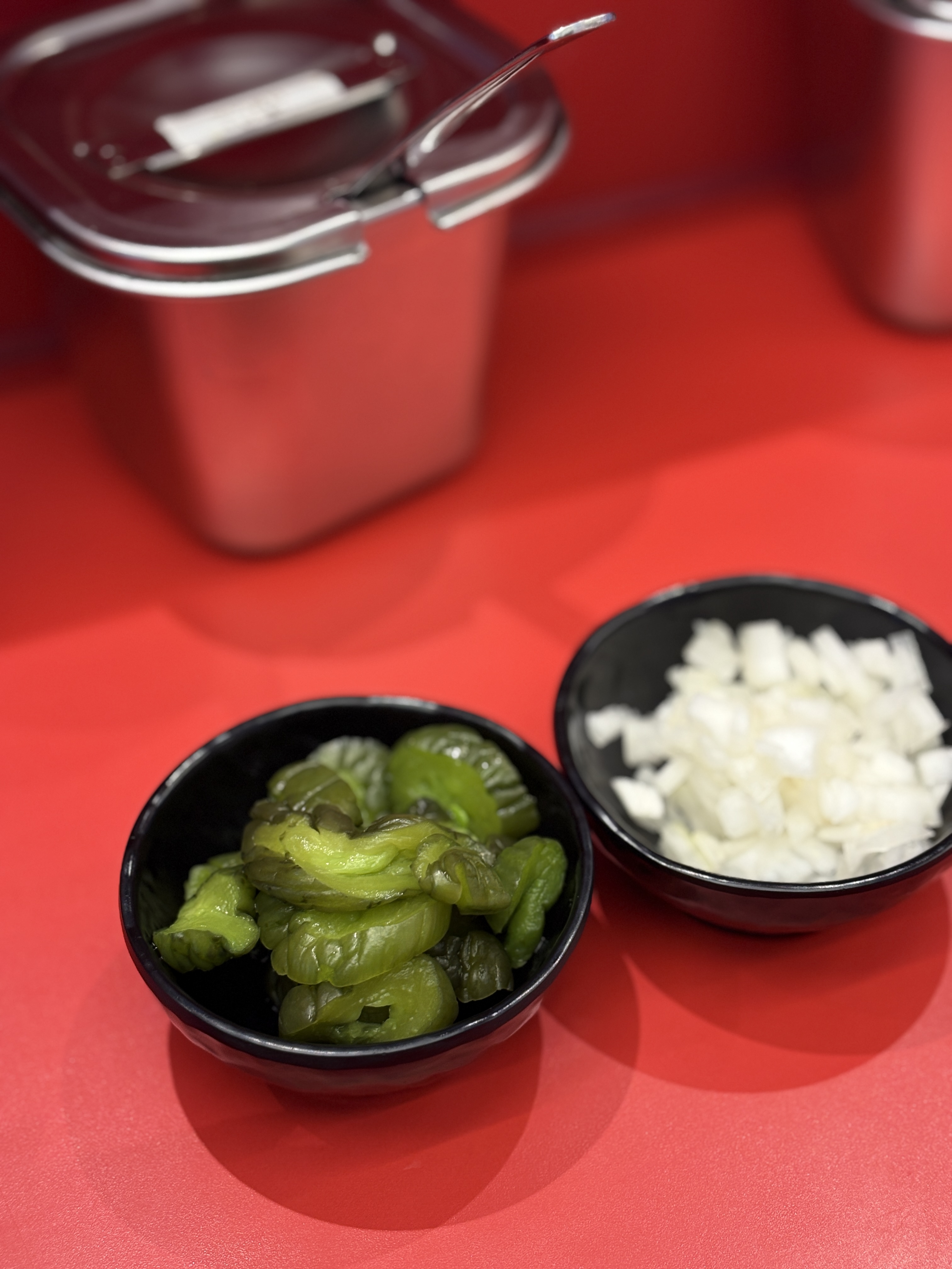 하쿠텐과 마찬가지로 오이절임이 있어 반갑네요. 김치는 보이지 않고 양파다진 것은 옆에 구비되어있습니다.