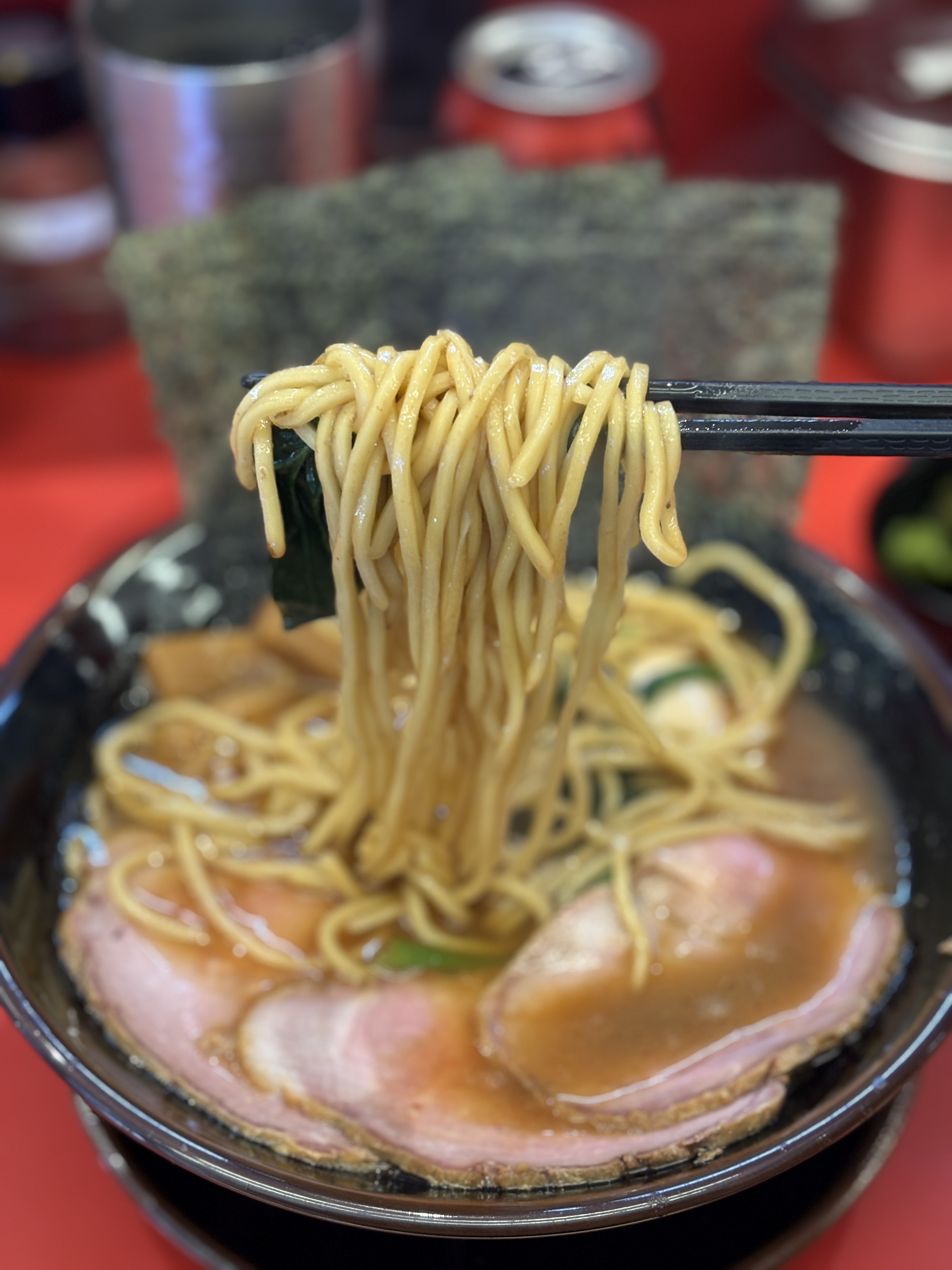 면을 젓가락으로 집어보니 특유한 두투한 질감과 무게감이 매우 흡족한 면이었습니다. 면이 두터우면 국물에 흡착이 잘 안되는 경우도 있는데, 적절히 잘 베어들어 훌륭한 조화를 이루었습니다.