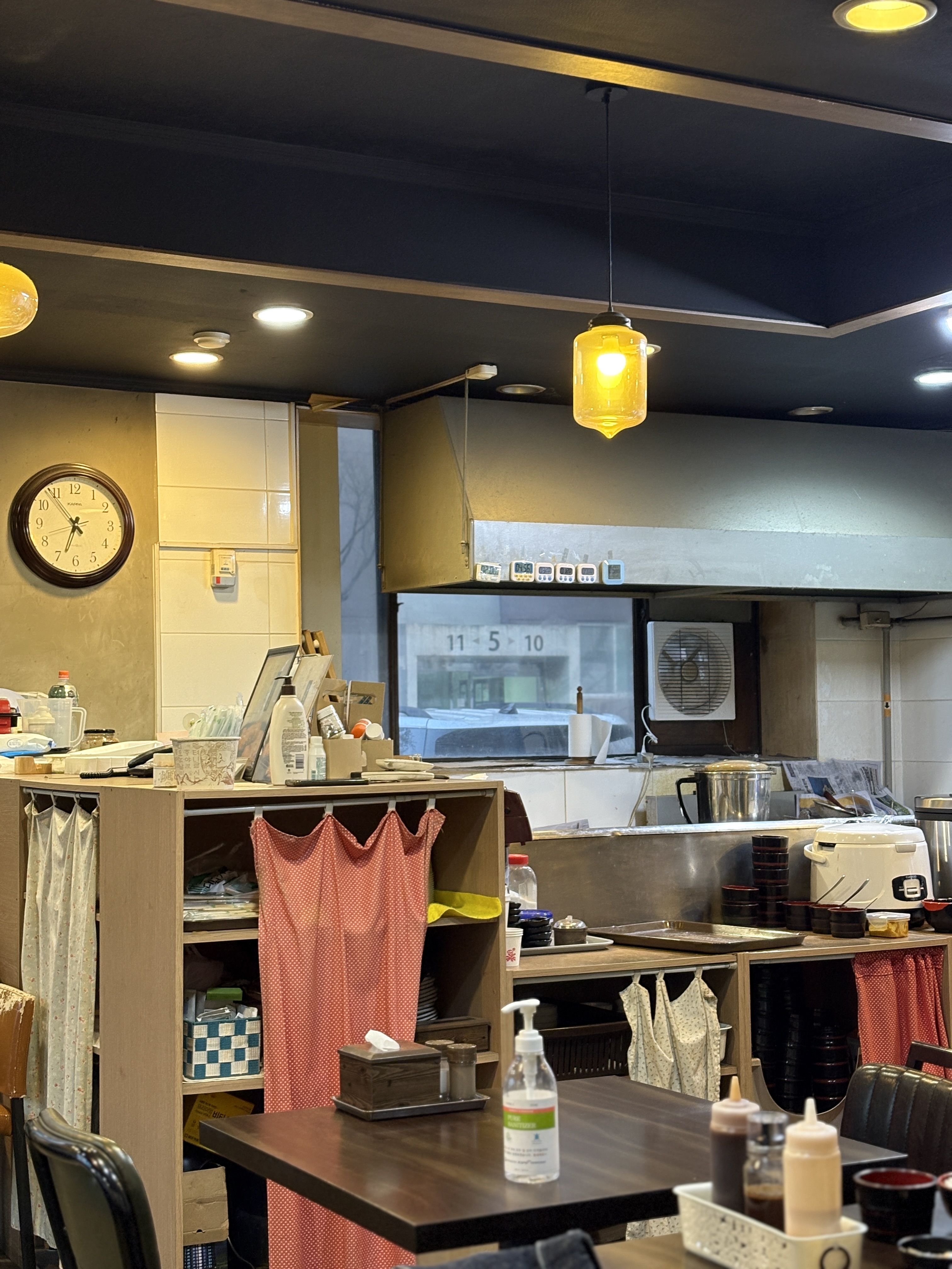 위생에 자신있어야지만 할 수 있는 리얼 오픈주방. 작은 틈으로 간신히 봐야 조리과정이 보이는 가짜 오픈키친이 아닌, 이렇게 탁 트여있는 오픈주방은 그만큼 위생에 자신있으시다는 이야기죠 ㅎㅎ 요리는 어머님께서 담당하시고 서빙 및 정리는 아버님이 담당하시는데요, 아버님이 아주 위생에 진심이셔서 자리 치울때마다 소독제를 분무기로 뿌리시고 꼼꼼히 정리하십니다. 앞사람이 먹고 나간 자리를 보니 제 자리 위생이 더 안심이 되네요 ㅎㅎ