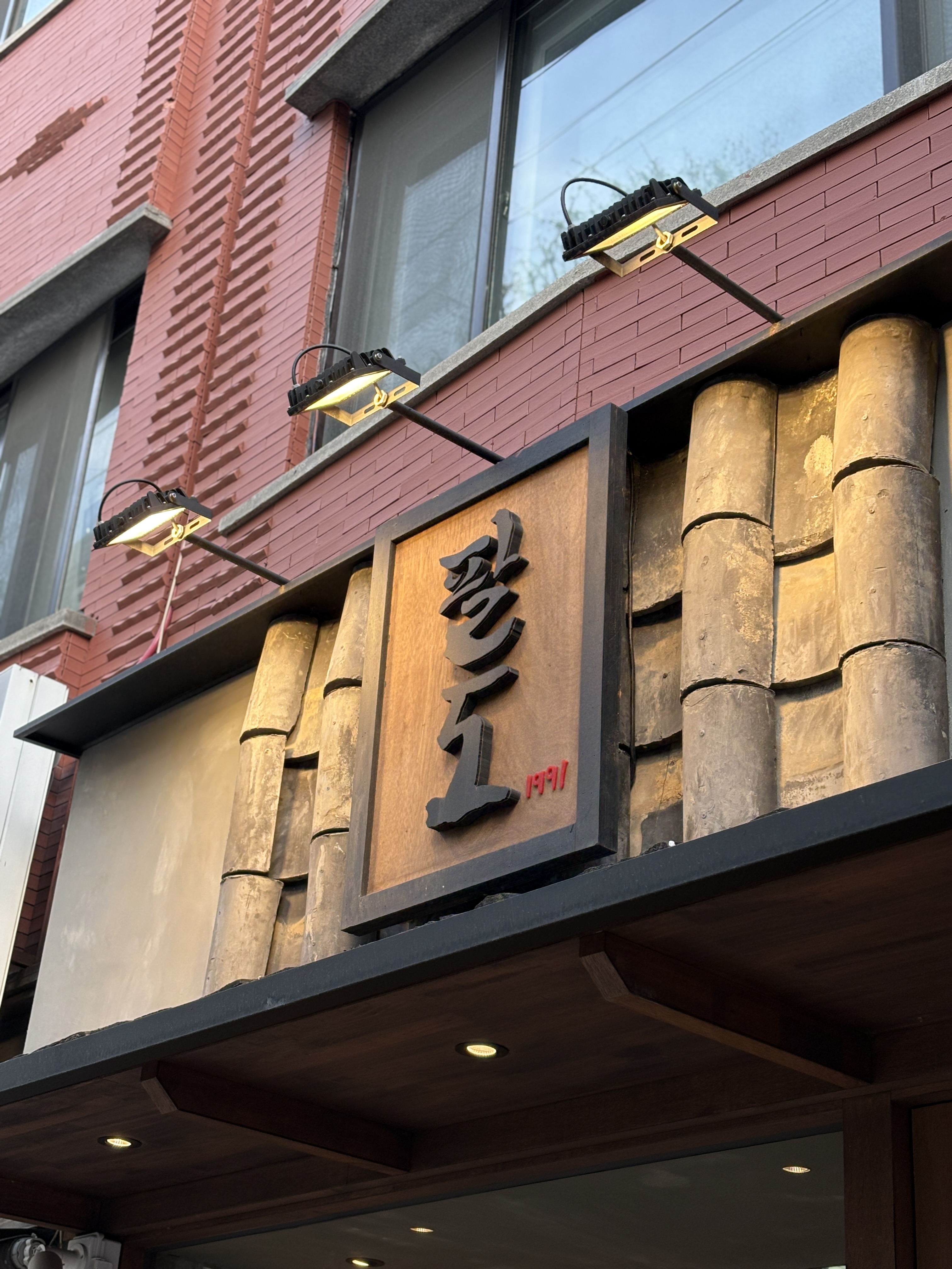 매장 외관은 전통적인 요소를 최대한 가미한 듯 합니다. 나무자재를 이용하여 마감을 했고, 문고실부터 밀짚 모자등의 소품 디테일까지 '메밀 막국수'집에 가장 잘 어울리는 외관을 갖추시려고 노력한 듯 합니다. 요즘 유행하는 깔끔한 현대적인 인테리어도 좋지만 이런 느낌의 인테리어도 괜찮네요 ㅎㅎ 외국인 친구가 막국수를 좋아한다면 (...겠냐..?) 데려오면 좋아할 듯한 분위기 ㅎㅎ