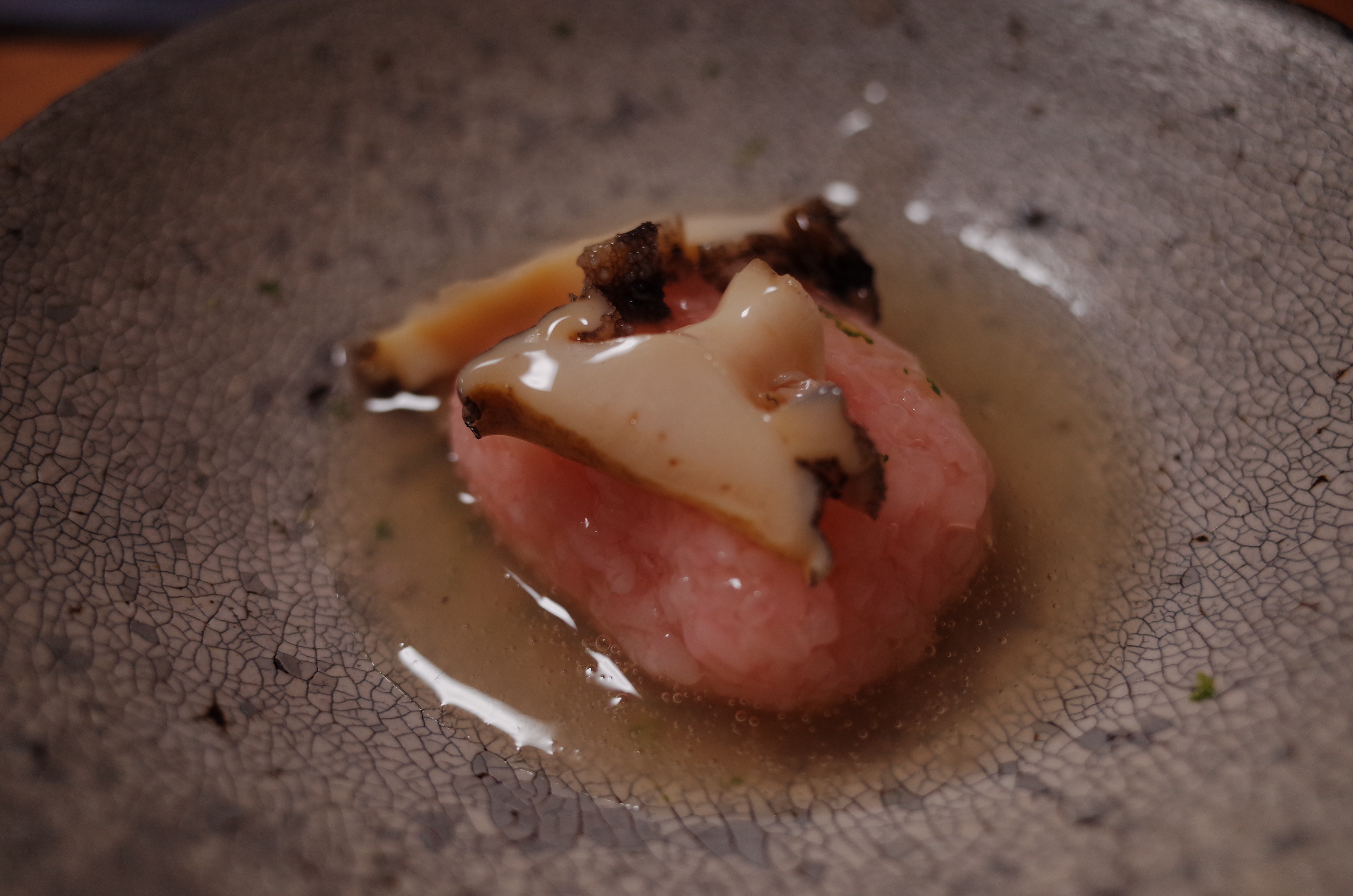 다음으로 나온 것은 폰즈소스로 무친 회무침? 이라고 할까요. 제철 생선을 이용하여 매번 바뀐다고합니다. 복어랑 한가지가 더 들어있었는데 생선 이름을 까먹었네요 ㅠㅠ 이래서 포스팅을 빨리빨리해야하는데..