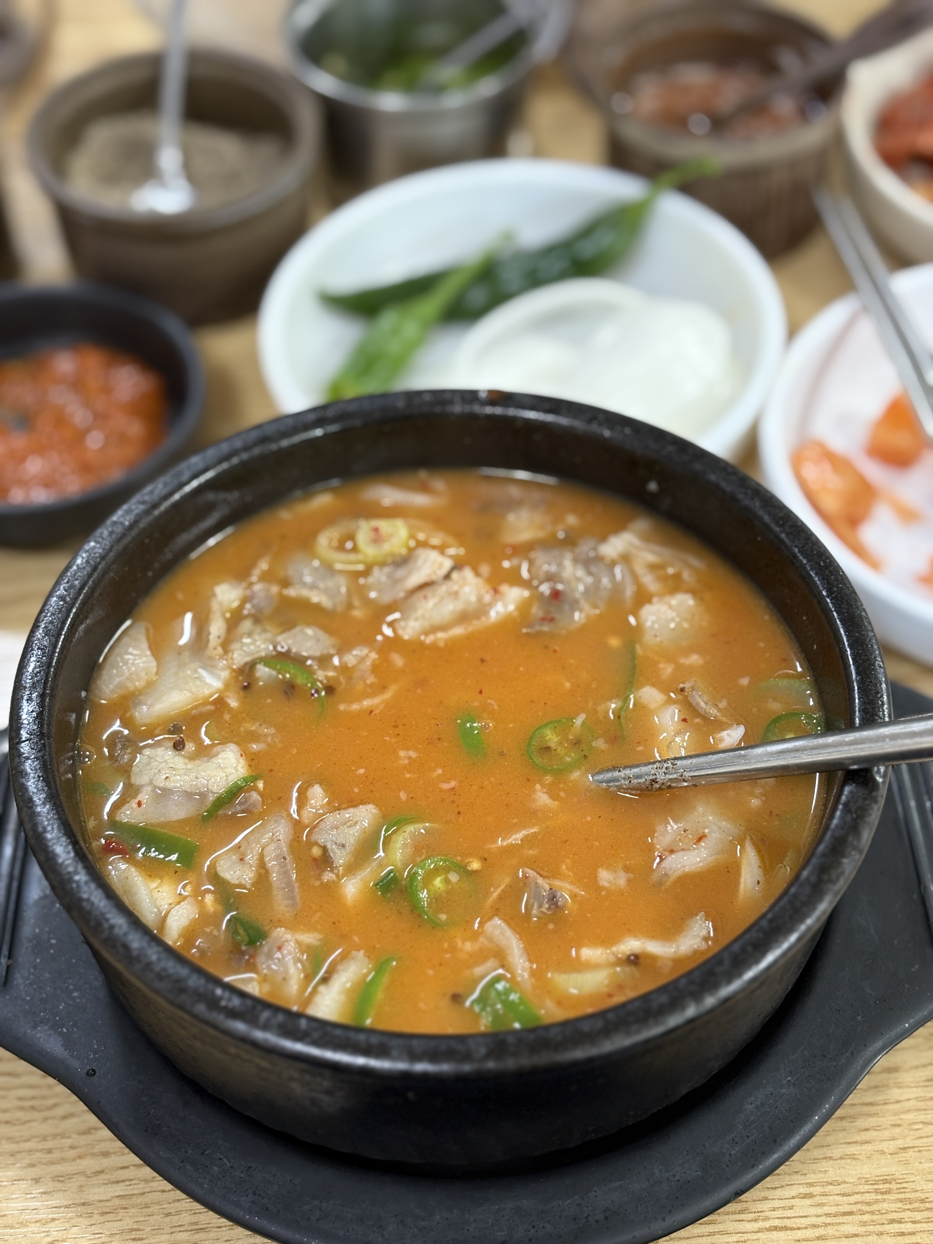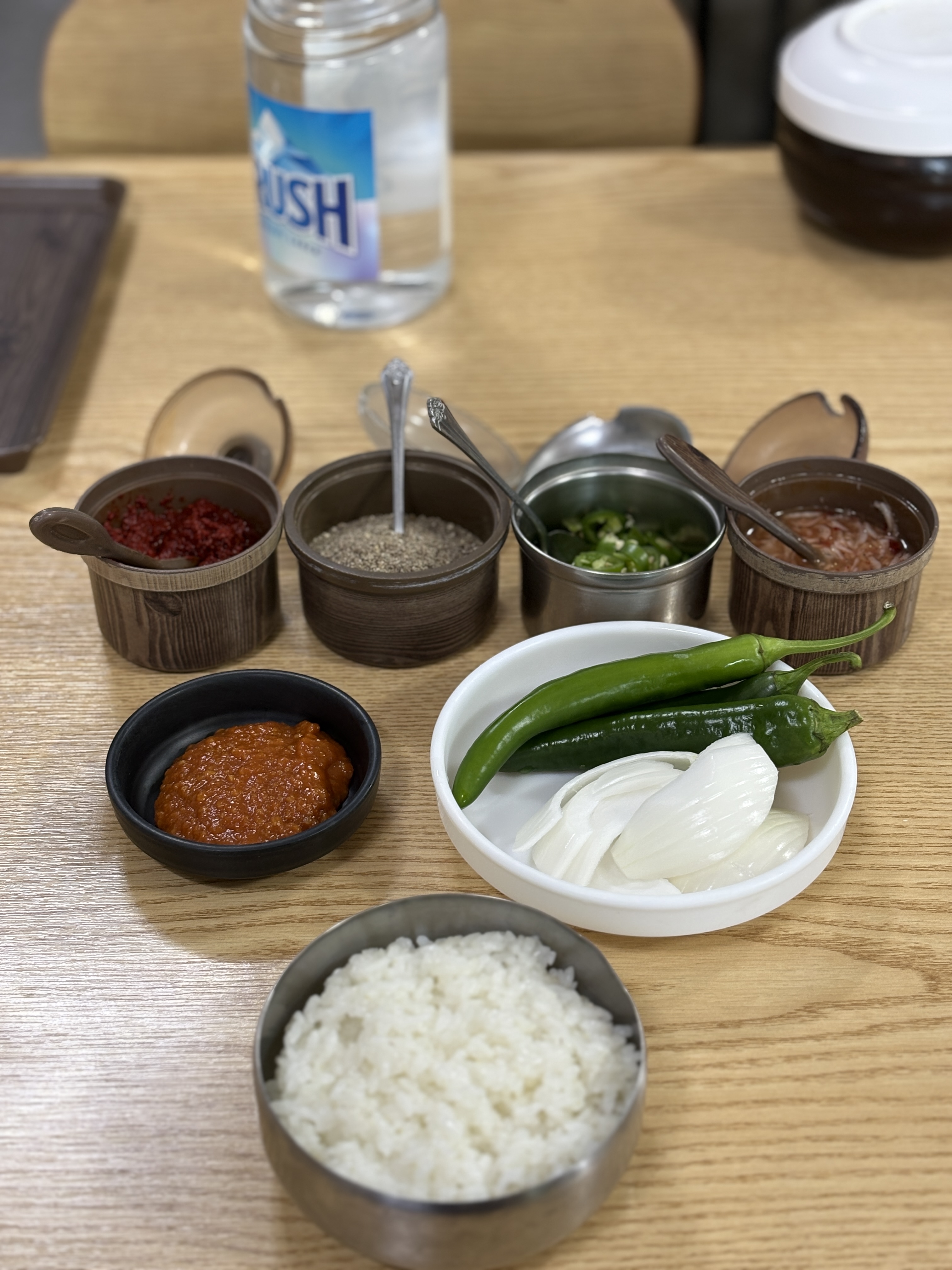 주문과 동시에 나오는 양념통들과 공기밥입니다. 사이즈가 어쩜 이렇게 내어주시기 위해서 만들어진 걸 산 거 마냥 꼭 맞네요 ㅎㅎ 말씀드린것처럼 집기류나 그릇이 깨끗하게 관리되고 있습니다.