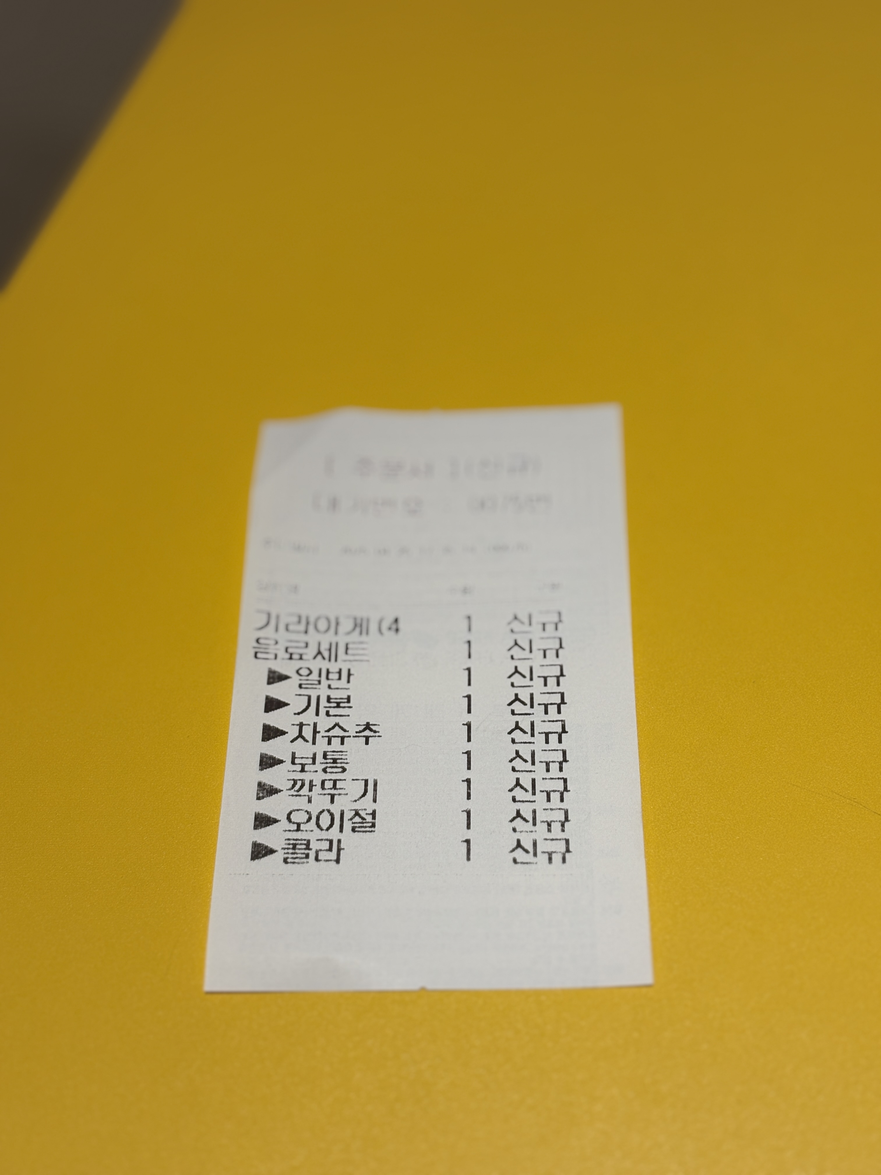 오늘 주문한 메뉴는 가라아게 4피스 (5,000원) 과 이에케라멘 + 음료 세트 (12,000원), 그리고 차슈를 추가했습니다. (3,000원)