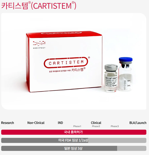 메디포스트 홈페이지에 있는 현재 허가사항을 보면 국내는 허가되어있지만, 미국 FDA는 아직 1/2a상에 머물러있고, 일본도 아직 완료되지 않은 상태입니다. 우리나라에서만 사용되고 있다고 보면 될까요?