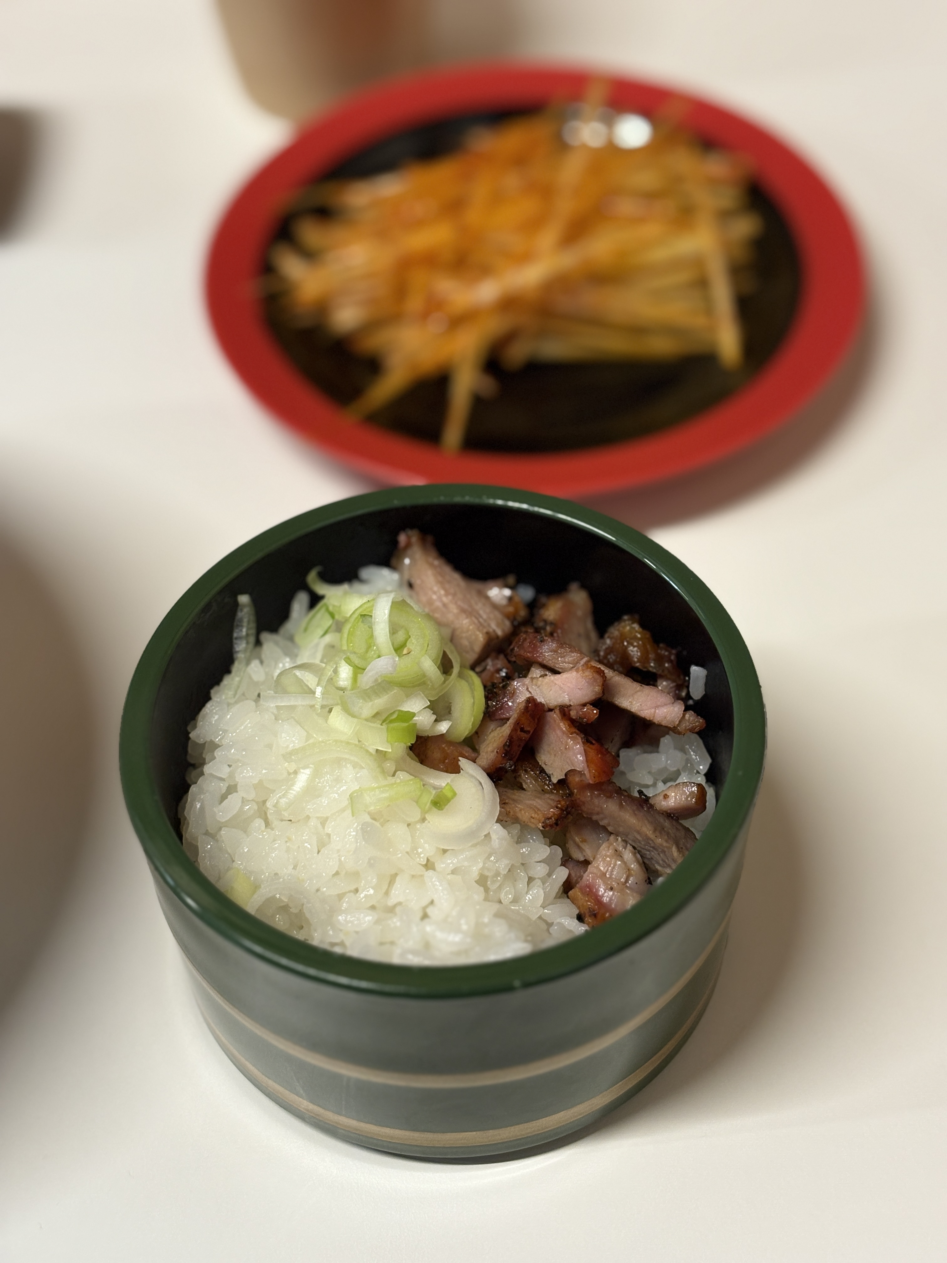 어떤분들은 나니요리의 본체라고도 부르는 (ㅋㅋ) 밥인데요, 단돈 500원짜리 밥인데 꽤나 그럴듯하게 나옵니다. 차슈 자투리를 같이 올려주시는데요, 500원 추가한 것 치고 매우 만족스러워서 가성비가 좋은 느낌입니다. 나오자마자 라멘 육수를 두스푼 정도 넣어서 적셔둔 후 먹으면 더 맛있다고해서 그렇게 먹어봤는데 맛있었습니다 ㅎㅎ 하쿠텐의 마늘 마요네즈 밥과 비교될 만한 ㅎㅎ
