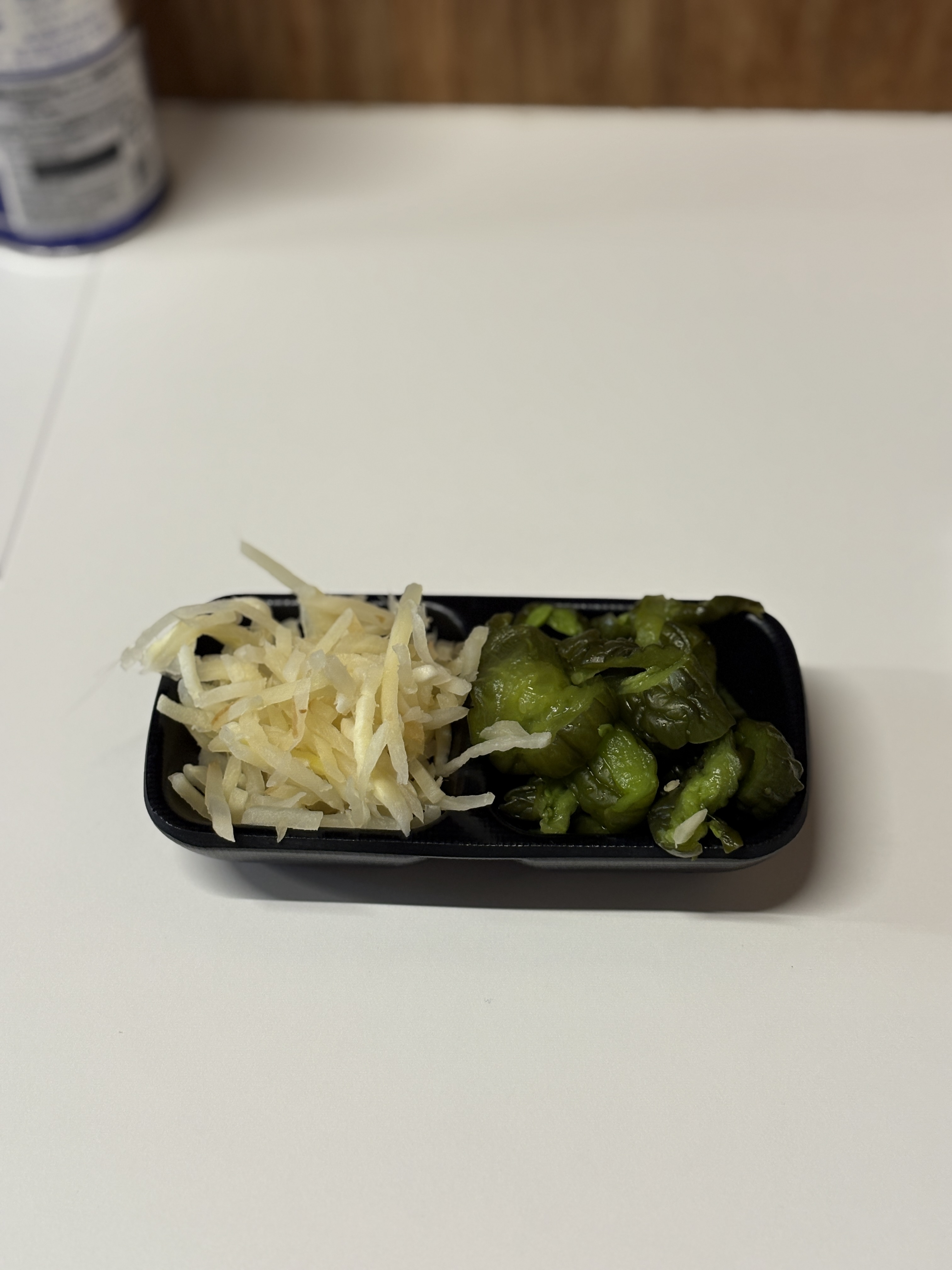 기본 찬은 입구에서 덜어먹을 수 있게 되어있습니다. 오이절임과 생강인데요, 크게 특별할 건 없지만 제가 좋아하는 구성입니다. 단무지보다는 요런 녀석들을 좋아하는 편..