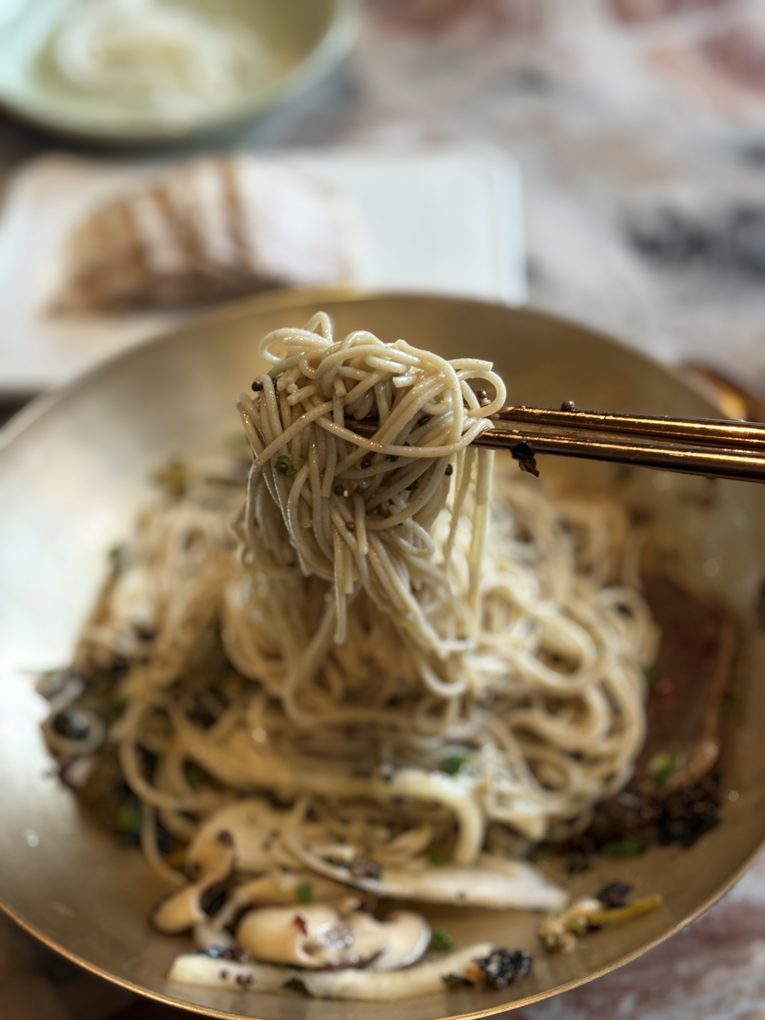 같은 면의 굵기로 비벼먹는 골동면에도 잘 어울릴까 걱정이 될 수 있지만, 양념과 따로노는 등의 이슈는 전혀 없었습니다. 들기름 막국수를 먹을 때처럼 잘 어우러지는 맛.