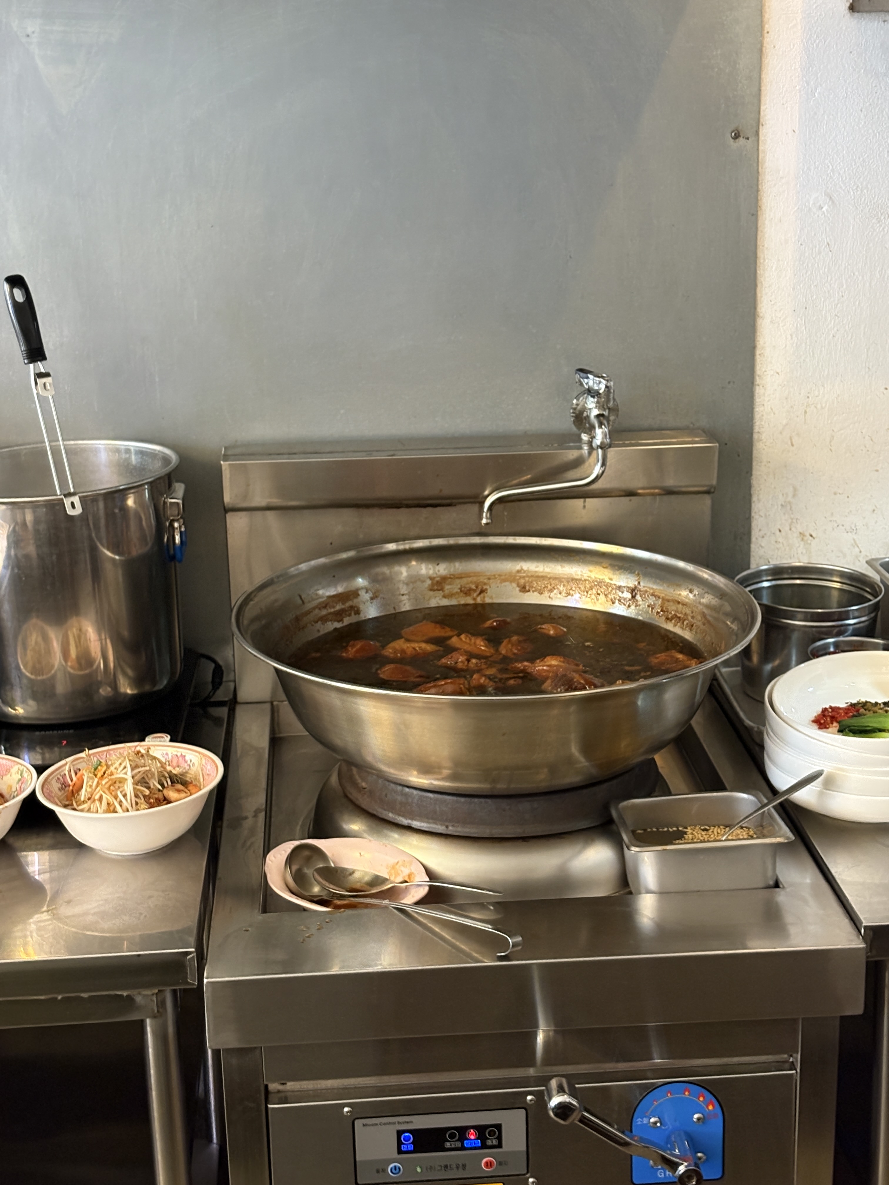 자리에 앉아보니 바로 정면으로 오늘 제가 주문한 족발 덮밥에 사용될 족발이 보였습니다. 족발이라는 음식 특성상 장시간 조리를 해야되다 보니 이렇게 다량으로 조리를 해두고 바로바로 손님께 내어주는 구조인 것 같습니다. 때깔 정말 좋네요..