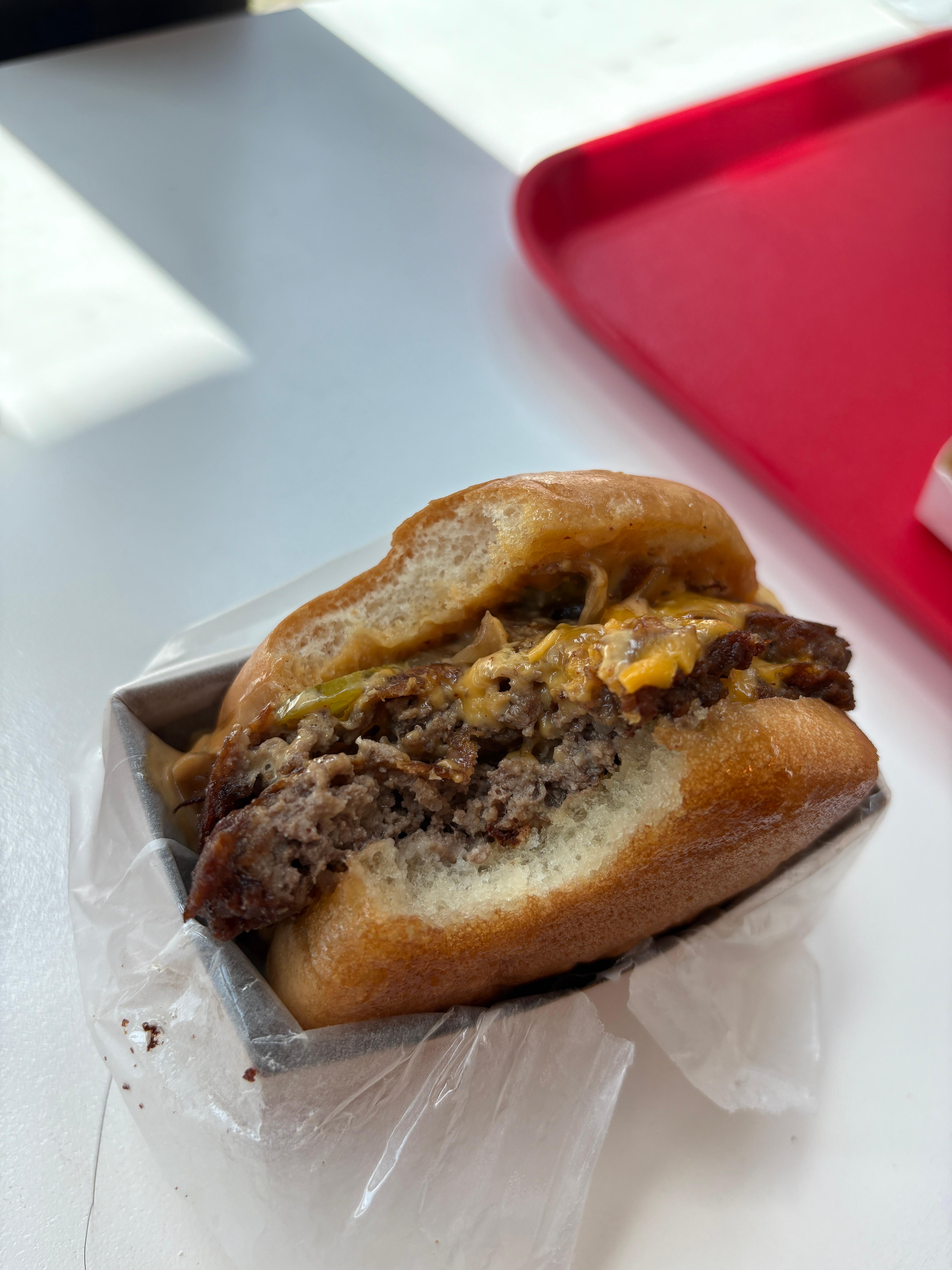 한입 먹고난 더블치즈버거의 단면. 패티가 두께도 적당한데다가 겉이 매우 바삭하게 잘 구워져서, 저도 근래들어 먹어본 수제버거 중엔 탑티어로 올려놓고 싶은 정도입니다.치즈도 짭짤하고 발라져있는 소스도 과하지 않아서 패티의 맛을 해치지 않습니다. 위장만 허락한다면 두개 먹고싶네요. 아니 세개요.