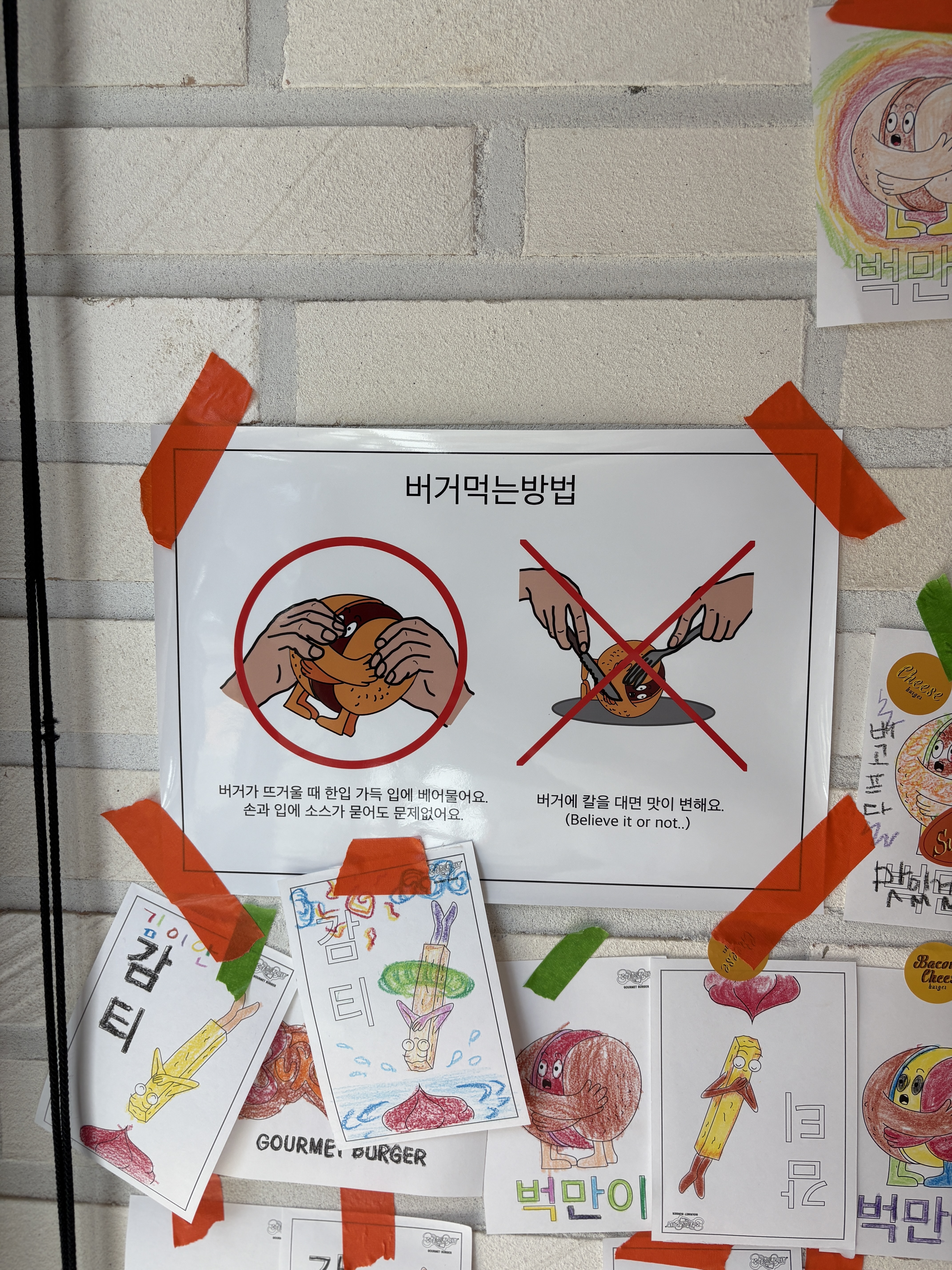 벽에 붙어있는 내용을 보니 유명한 피터루거 스테이크나 BLT등에서 사용하는 브랜드의 소고기를 사용하신다고하네요. 음식장사하실 때 좋은 재료를 써도 고객들이 몰라주는 경우가 있는데, 이렇게 공신력있는 업장에서 사용하는 제품을 쓴다고 설명해두신 것은 잘하신 것 같습니다. 잘 모르는 사람이 봐도 "아 이집 좋은 고기 쓰는구나" 할 수 있으니까요 ㅎㅎ 패티에는 소금 이외의 조미료나 향신료는 전혀 안쓰신다는 점에서 신뢰가 가는 대목입니다.