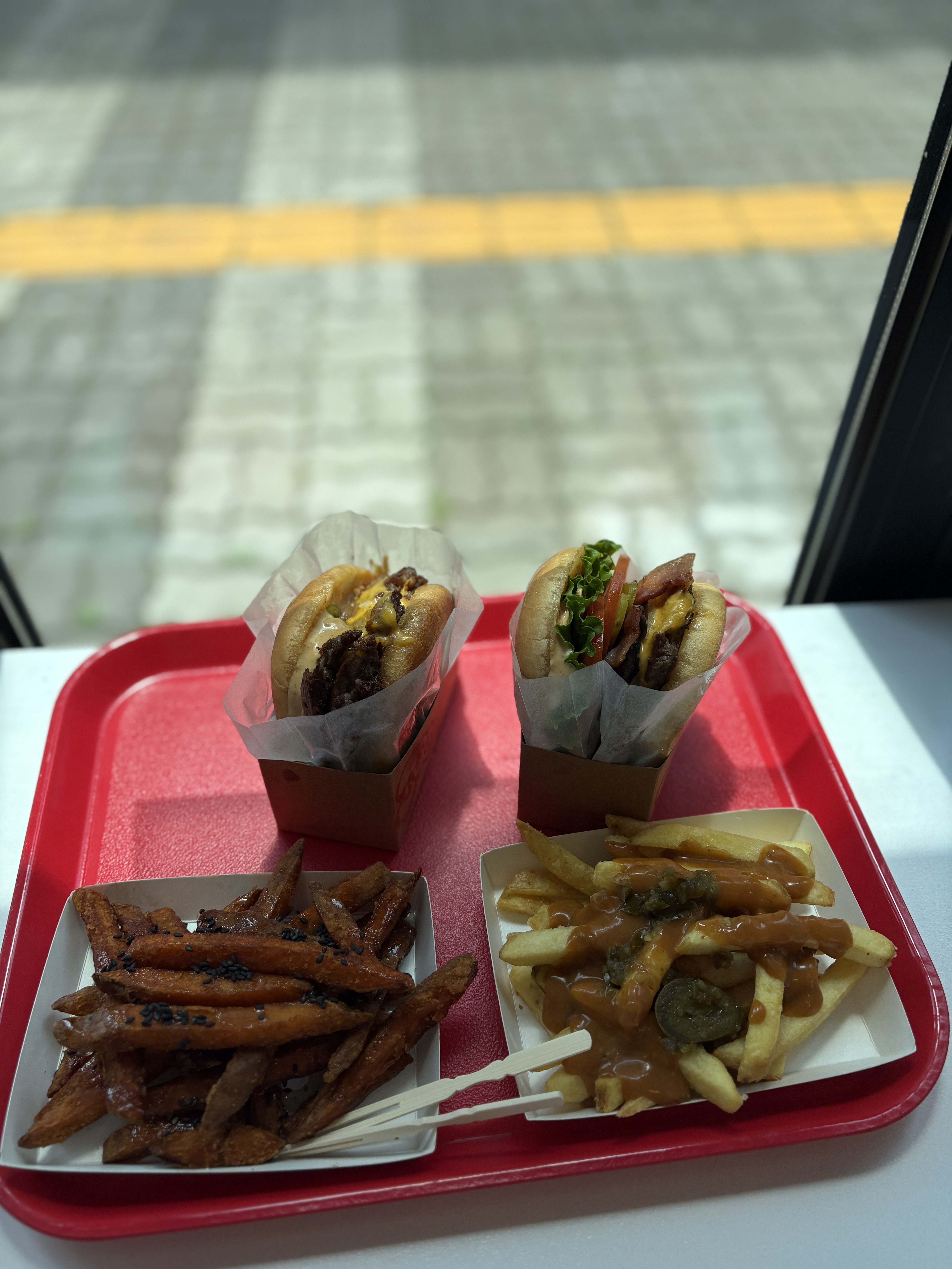 와이프가 시킨 베이트 버거는 파랑 빨강 색깔이 들어가있어 사진이 더 예쁘게 담기는 것 같습니다. 맛도 좀 더 다채롭게 느껴져 좋아하시는 분들도 있겠지만 개인적으로는 패티의 맛을 느끼는 것을 더 선호하여서 ㅎㅎ