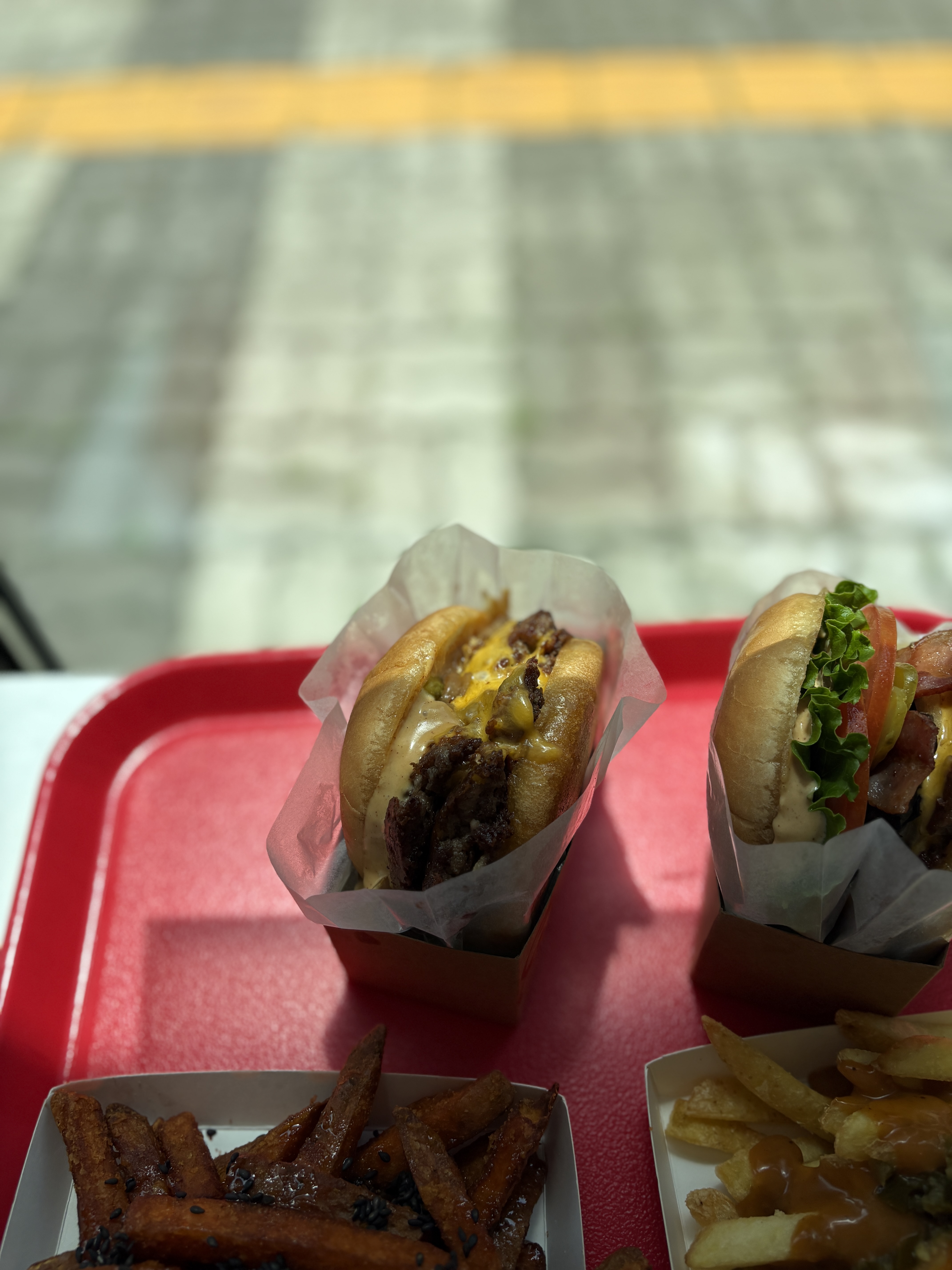 와이프가 시킨 베이트 버거는 파랑 빨강 색깔이 들어가있어 사진이 더 예쁘게 담기는 것 같습니다. 맛도 좀 더 다채롭게 느껴져 좋아하시는 분들도 있겠지만 개인적으로는 패티의 맛을 느끼는 것을 더 선호하여서 ㅎㅎ