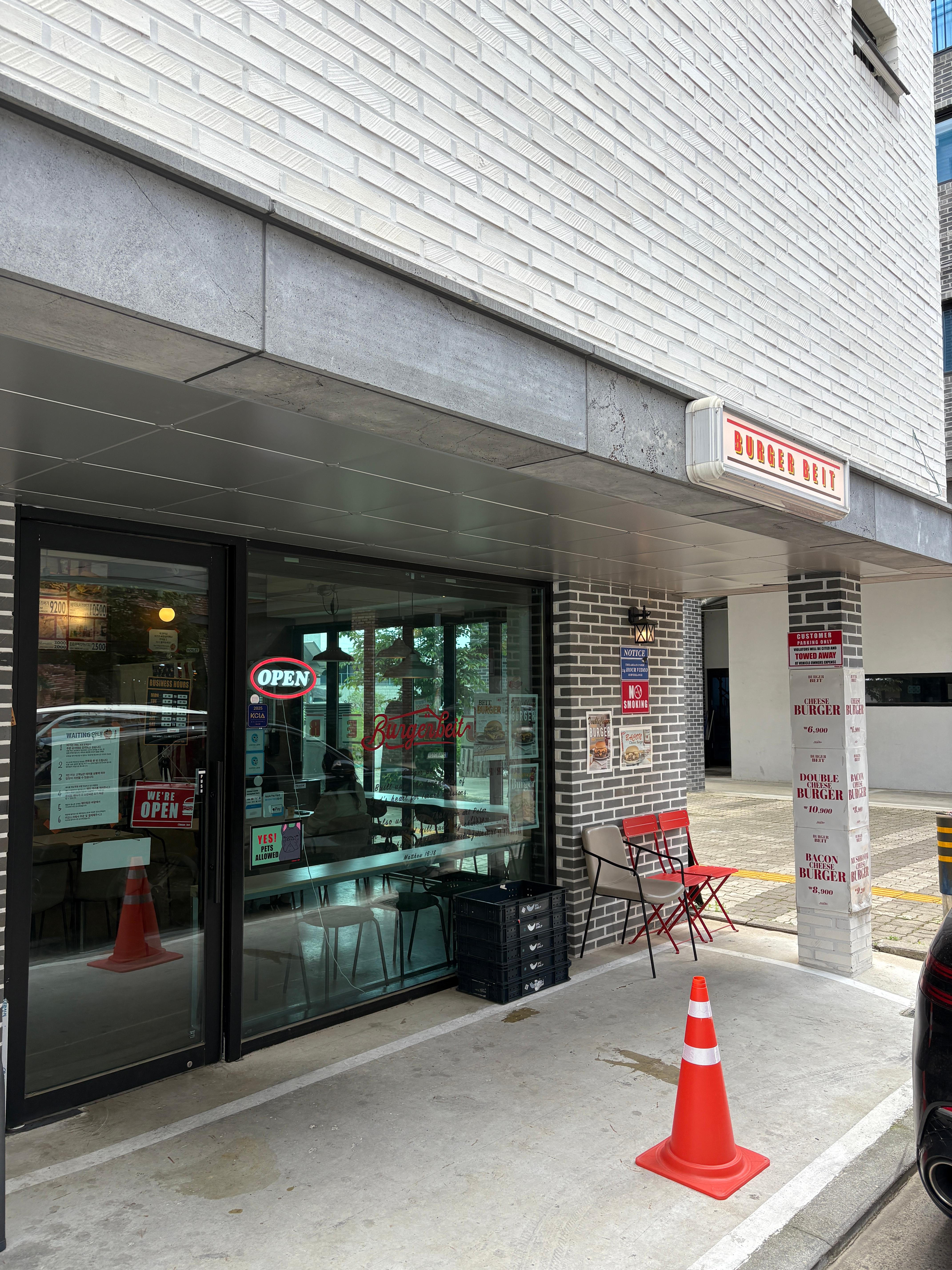 전 평일 점심시간에 가서 그런지 주말처럼 웨이팅이 있지는 않았습니다. 가게 외관도 미국스럽게 포스터와 인테리어 아이템들로 잘 꾸며두셨습니다. 주차 공간도 있긴 하지만 넉넉하진 않고, 주변에도 주차가 편한 편은 아니라서 주말에 오신다면 미리 주차공간을 잘 봐두시고 오시는걸 추천드립니다. 저흰 다행이 운이 좋아 가게 건물에 딸려있는 주차장에 안착.