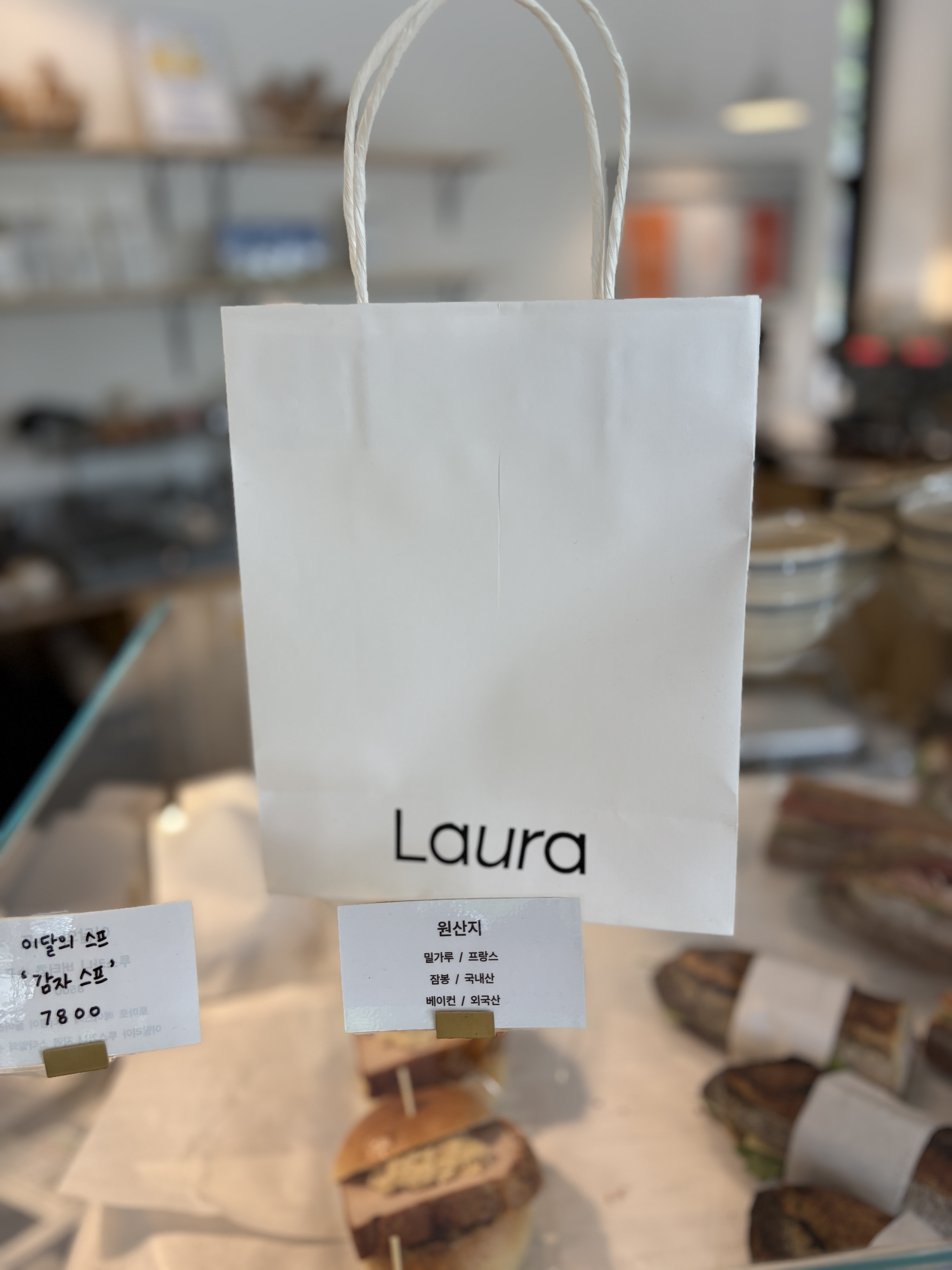 느낌좋은 포장용 쇼핑백도 찰칵. 이달은 감자스프를 판매하시네요. 주말에 오전에 장인 장모님 모시고 마실 한번 나와야겠습니다.