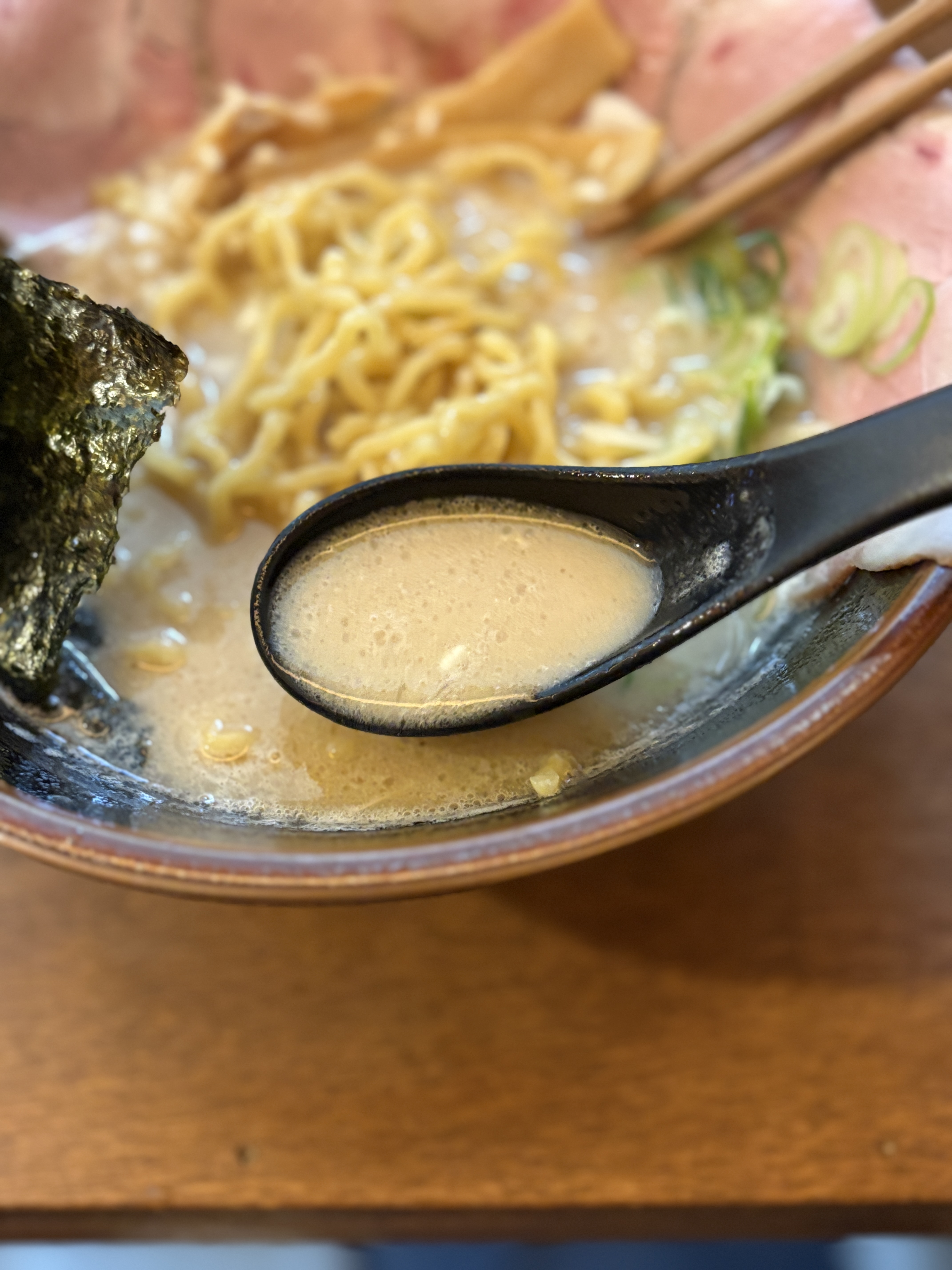 마지막으로 돈코츠의 정수인 수프. 오늘날 멘야코이시 파동(?)을 있게 한 궁극의 수프를 맛보았습니다. 일단 점도에서부터 굉장히 진득한 농후한 수프였구요, 한입 먹어보니 왜 사람들이 멘야코이시를 돈코츠 1황으로 꼽았는지 알 수 있었습니다. 그동안 국내에서 맛있다고 하는 많은 돈코츠 라멘야를 가봤지만 이정도로 깊고 진한 맛을 맛본 것은 처음인 것 같습니다. 단순히 혀끝에서 느껴지는 맛 뿐만아니라, 혀를 지나 목구멍으로 넘어가는 순간(랩가사 아님 주의) 목젓을 때리는 묵직한 맛. 그리고 삼킨 후에 남는 여운까지 모든 과정을 기억하고 싶어지는 맛이었습니다. 충격의 정도로 따지면 아직 국내에 라멘이 유행하기 전 일본여행을 처음 가서 인생 처음으로 이치란 라멘을 맛보았을 때의 충격? 아 이게 진짜 라멘인가? 라는 느낌으로 다가왔습니다. (이치란 라멘의 맛이 아닌 그 경험의 충격입니다.)