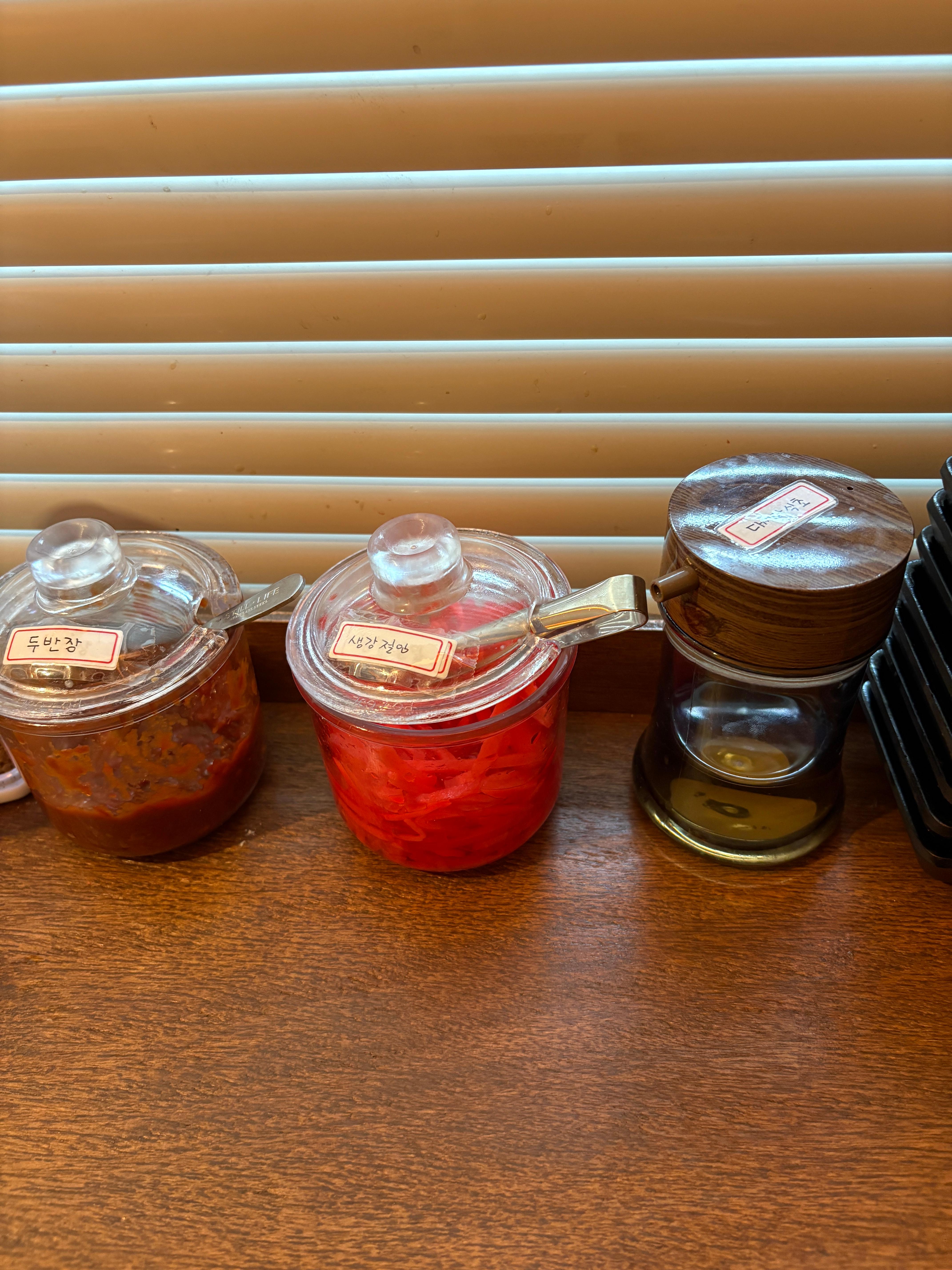 좌석 앞에는 기본 세팅으로 초생강과 다시마식초, 두반장이 있습니다.