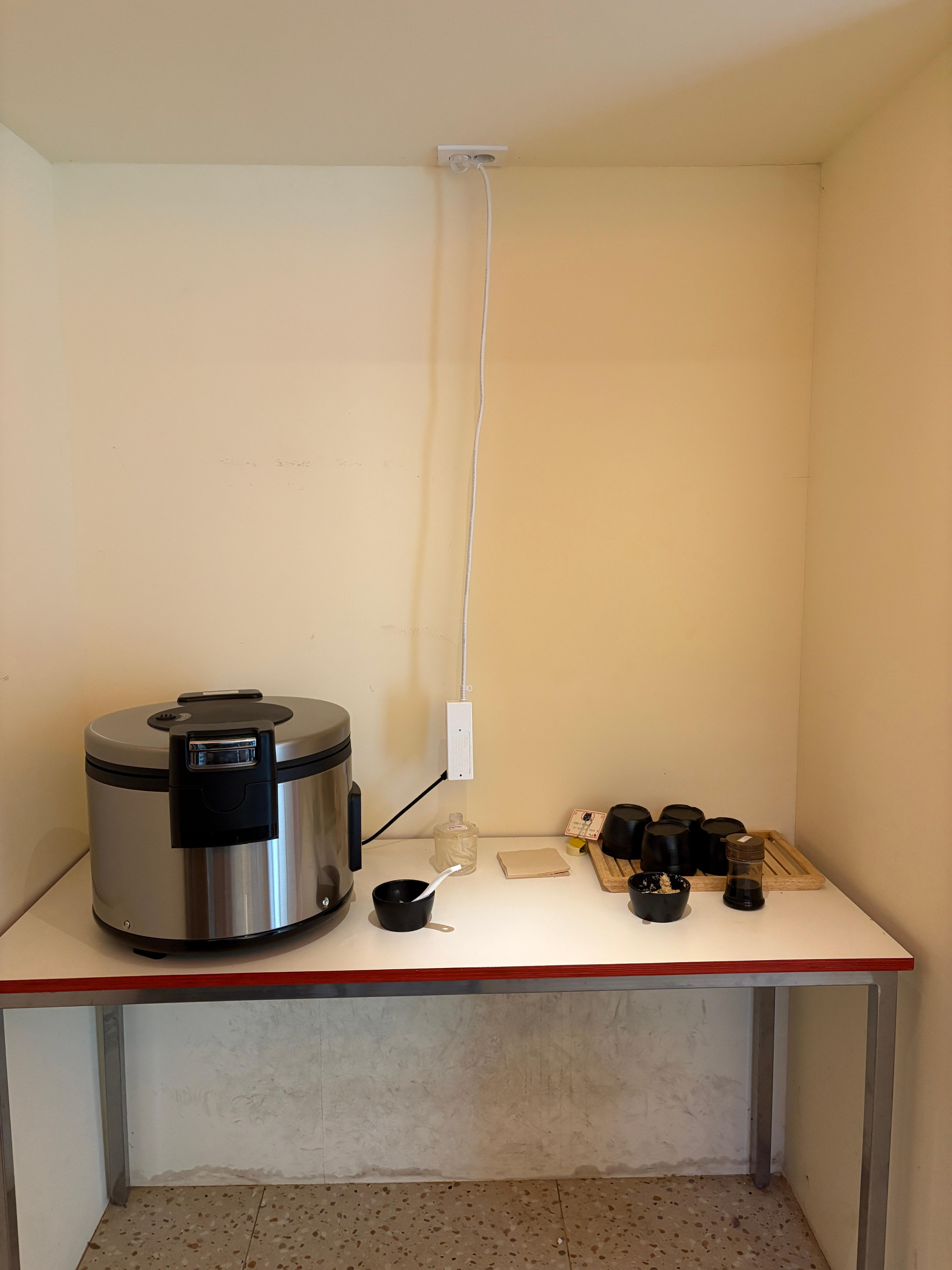 가게 한켠에는 이렇게 셀프바가 있는데요, 멘야코이시에서 가장 논란을 불러일으키고 있는 곳입니다. 공짜 밥과 돼지비계와 마늘등을 이용해 만든 '세아부라', 후리카게와 간장으로 구성된 테이블입니다. 사장님이 밥을 마음껏 먹게 하는 것이 로망이신지 이 테이블을 무료로 횟수제한없이 열어두셨습니다. 밥을 무료로 제공해주시는 건 감사한 일이지만, 이 세아부라가 맛이 상당히 좋아서, 간혹 눈치없는 고객들이 밥을 4번이상, 심지어 10번 먹는사람도 있다는데요, 세아부라도 조금씩 먹는게 아니라 거의 한통을 다 퍼먹는 일이 가끔 있습니다. 좋은 의미로 마련해두신 서비스를 이런 소수의 사람들이 망치고 있고, 이런점들이 재정적으로나 리필 과정에 드는 추가적인 인력 낭비로 인해서 가게의 운영에도 방해가 된다는 의견이 많습니다. 제 자리가 하필 이 테이블 바로 뒷자리여서 눈으로 보지 않아도 특정 사람이 몇번이나 이 밥을 퍼먹으러 오는지 느낄 수 있는 정도였는데요.. 정말.. 할말을 많지만....
