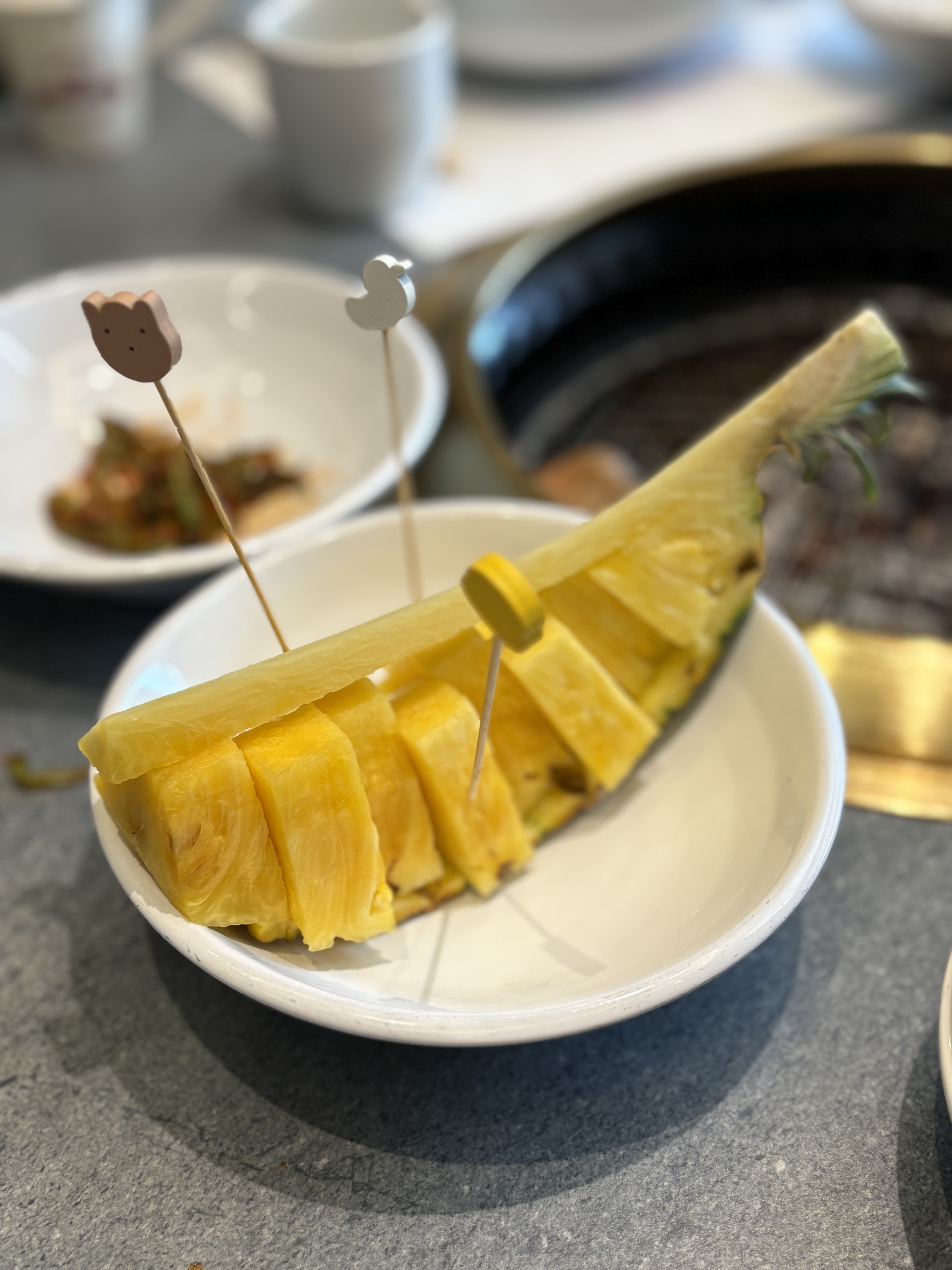 마시고 자리로 돌아오니 이렇게 파인애플도 후식으로 준비해주셨네요. 룸을 두번 방문했는데 두번다 준비해주신 것으로 봐선 특별한 대우라기보단 항상 제공해주시는 것 같습니다. 파인애플도 공짜로 제공해주신건데도 어찌나 달고 맛있던지..