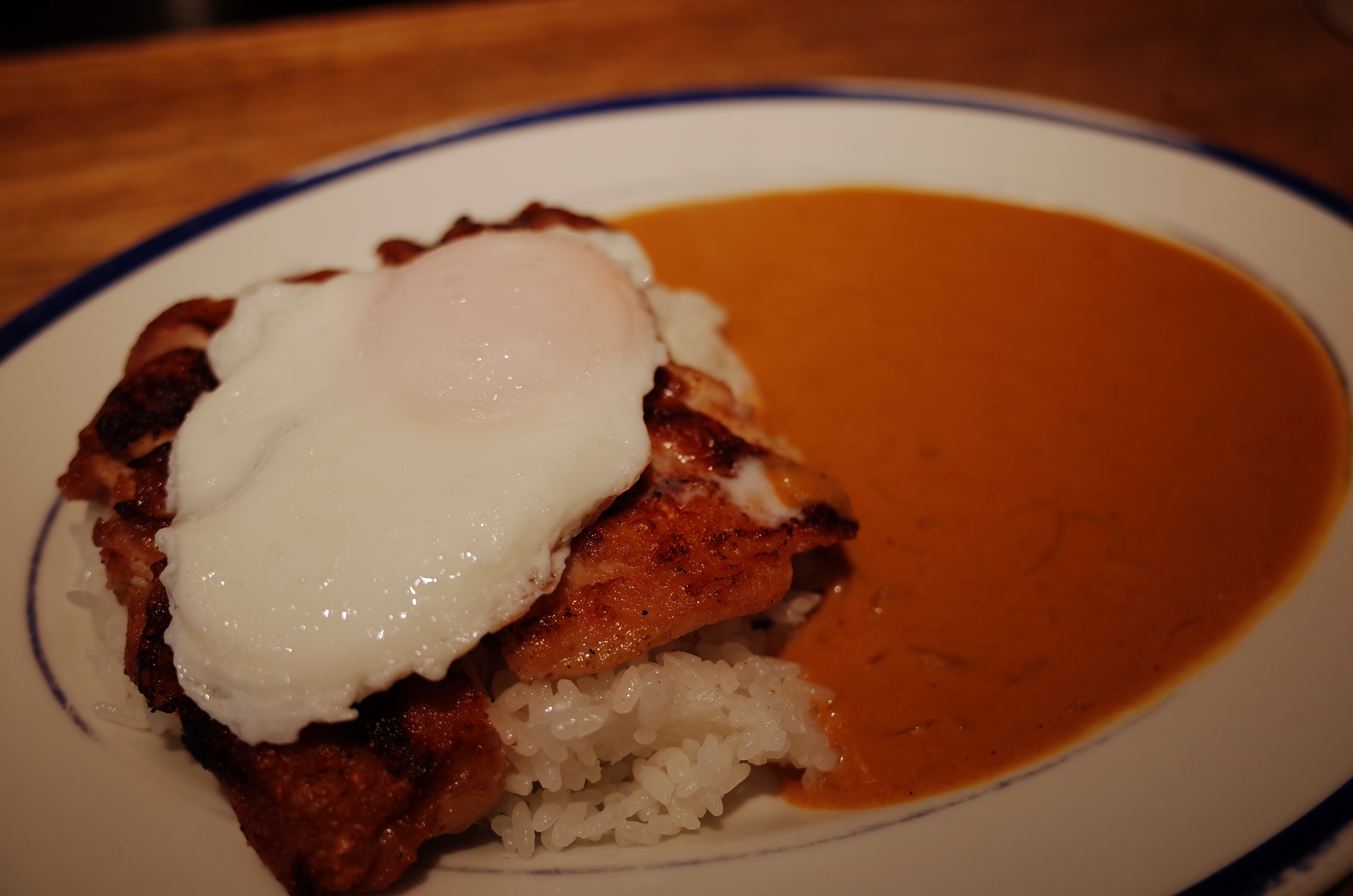 먼저 나온 것은 그릴드 치킨 커리 라이스. 메뉴 이름대로 직관적인 구성입니다. 아참 계란은 100엔 내면 추가 가능해서 추가했습니다. 아주 진득한 일본식 커리인데요, 갈색의 우리가 아는 그런 커리가 아니고 옐로우 커리 스타일입니다. 자잘하게 보이는 양파 입자를 보니 양파를 오래 볶아서 버터랑 같이 풍미를 올린 것 같네요. 커리 파우더 뭐쓰는지 정말 물어보고싶더라는.. 저도 한 커리 만든다고 생각하는데 요 커리는 도저히 못따라하겠더라구요 ㅎㅎ 같이 추가한 써니사이드 업은 역시나 잘 어울렸구요, 닭고기 스테이크는 껍질을 잘 살려서 구워내어서 커리에 살짝 담궈 먹으니 풍미가 정말 끝내줬습니다. 간도 기가막히구요.