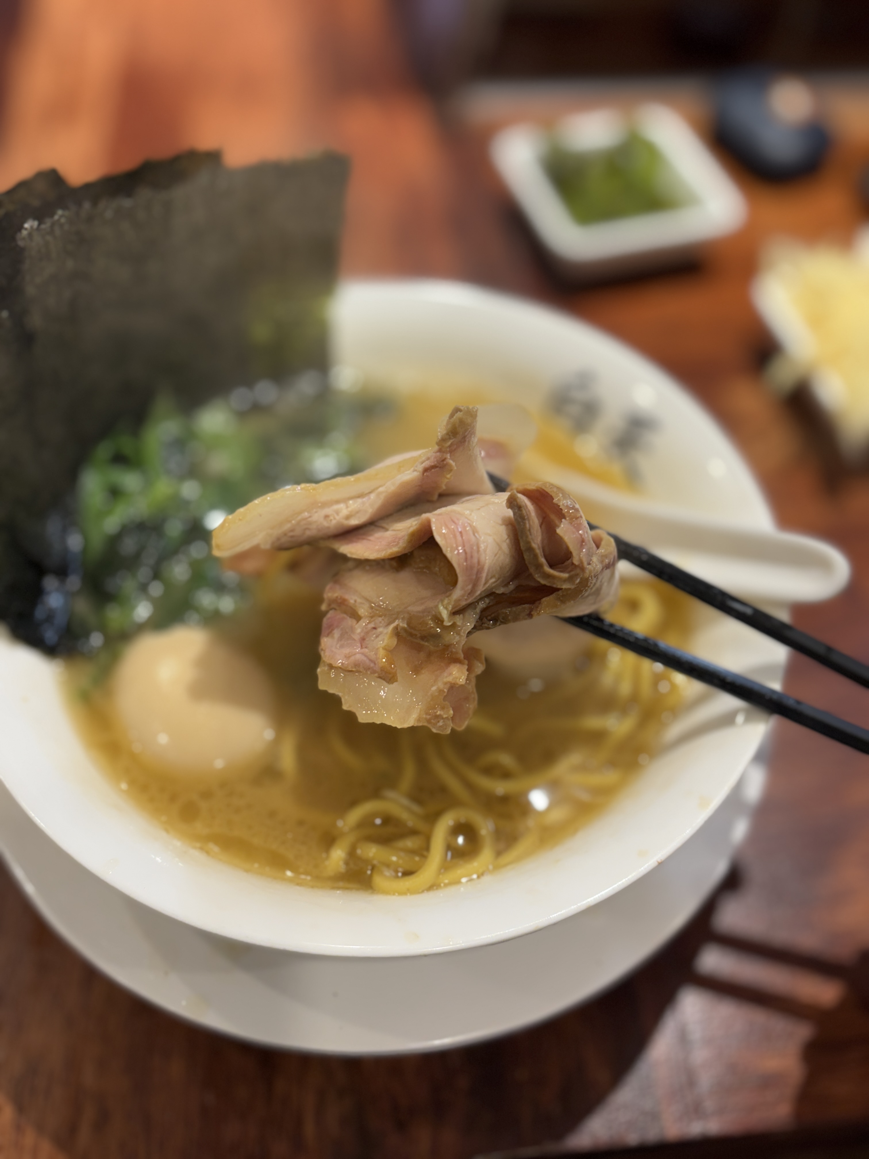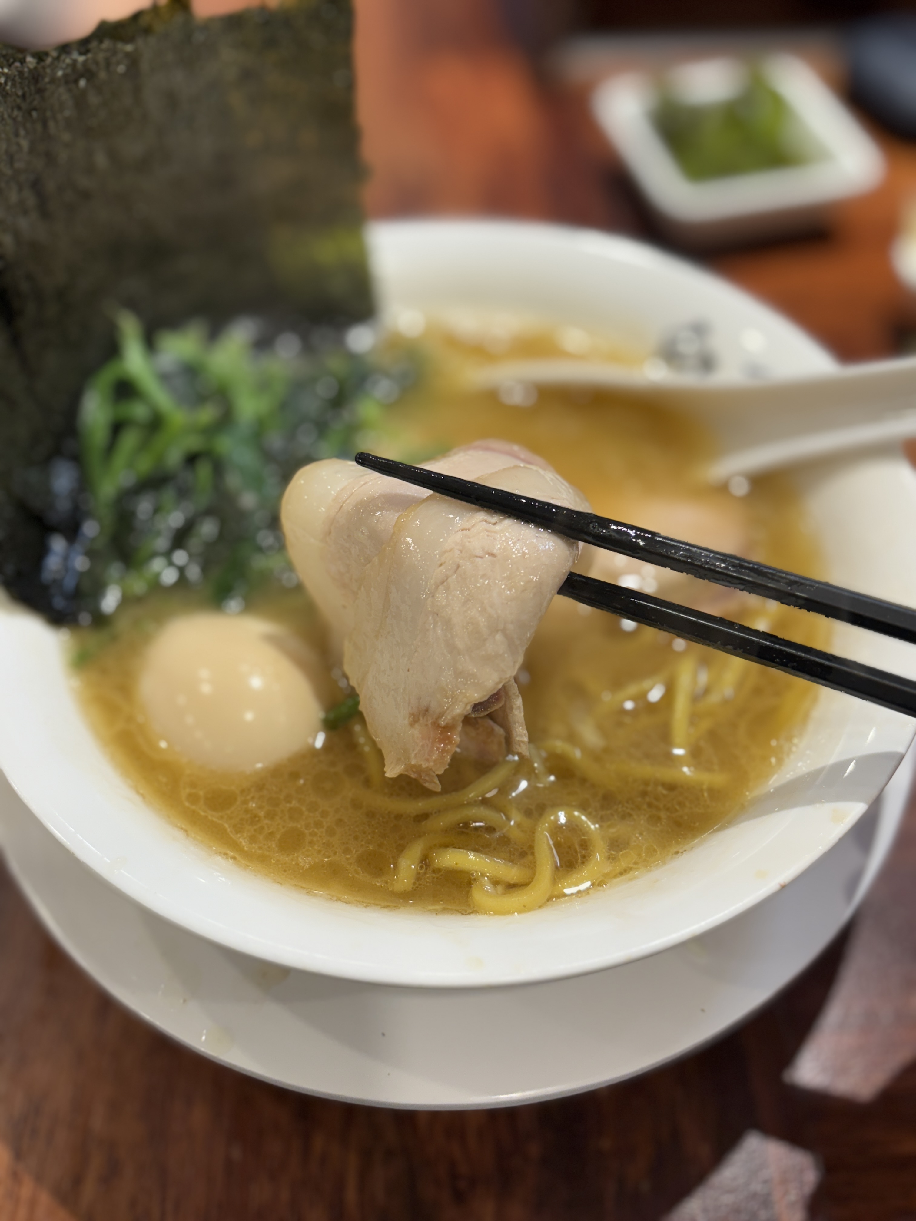 차슈는 이전 방문과 비교했을 때 큰 차이 없이 준수한 맛입니다. 제가 선호하는 강하게 토치를 먹인 두터운 차슈는 아니고, 삼겹차슈가 떨어져서 주문한 일반차슈지만 차슈 맛에 대해선 불만이 생기기 힘든 맛입니다. 단백질 냠냠.