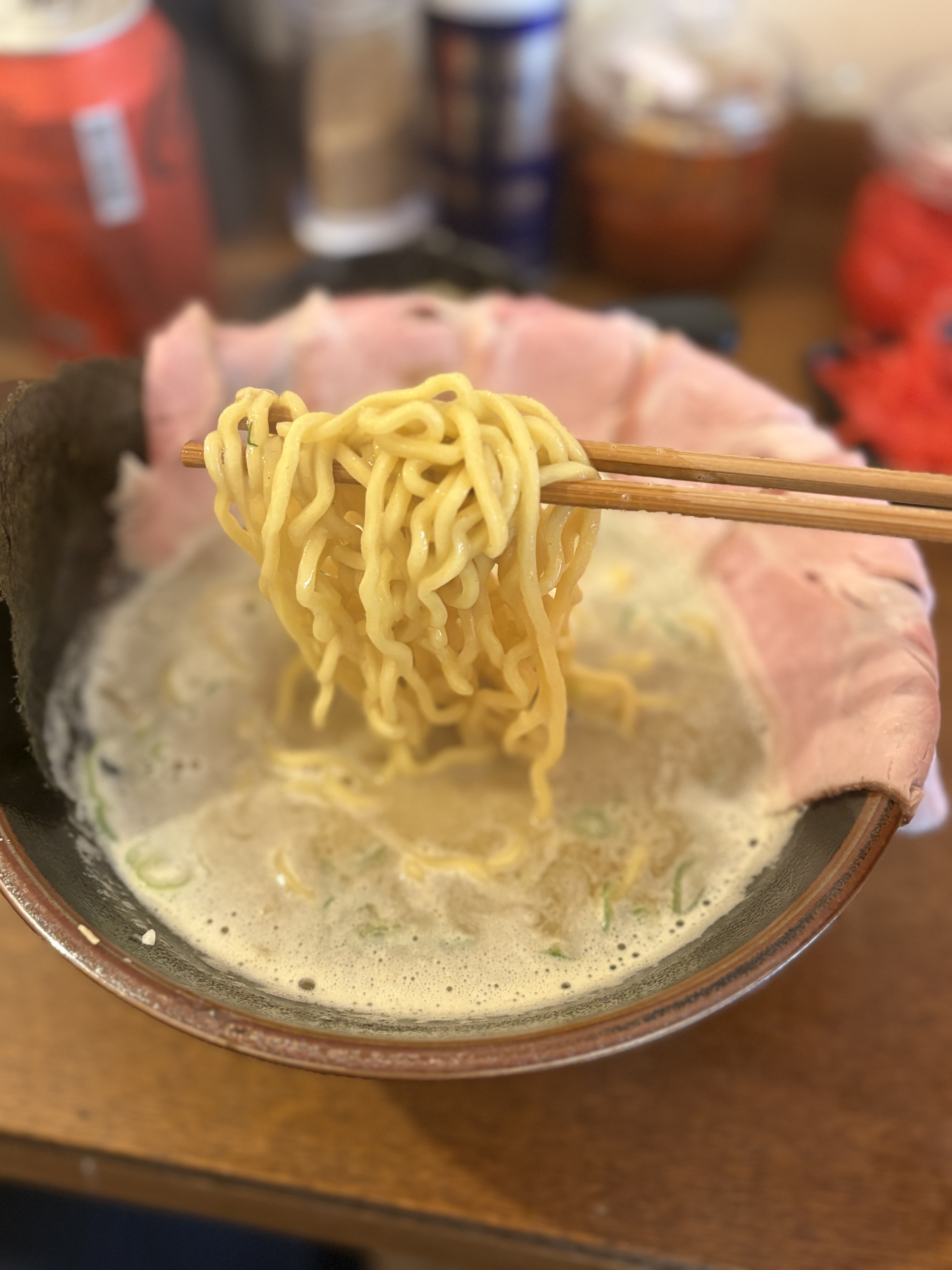 드디어 등장한 니보시 돈코츠. 기본 돈코츠와 니보시가루를 배합하여 만들어낸 수프입니다. 비주얼에서는 좀 더 탁하다는 느낌 정도? 하지만 첫 입 국물을 떠서 마셔본 순간 멸치의 감칠맛으로 시작해서 돈코츠의 농후한 맛과 크리미함으로 마무리되는 피니쉬가 정말 완벽합니다. 니보시 맛을 더 강하게 하는 곳도 있지만 멘야코이시의 밸런스는 정말 만족스러웠습니다. 과하게 염도가 높지도 않고 국물의 농후함은 원래부터 돈코츠 수프에서 보장을 해주다보니, 멸치에서 나는 우마미가 튀지않고 기분좋게 거들어 주는 맛이 환상적입니다. 사장님은 맨날 DM으로 수프 밸런스 안좋았다고 자학(?)을 하시는데.... 사장님도 100프로 만족하는날 같이 먹어보고싶네요 ㅋㅋ