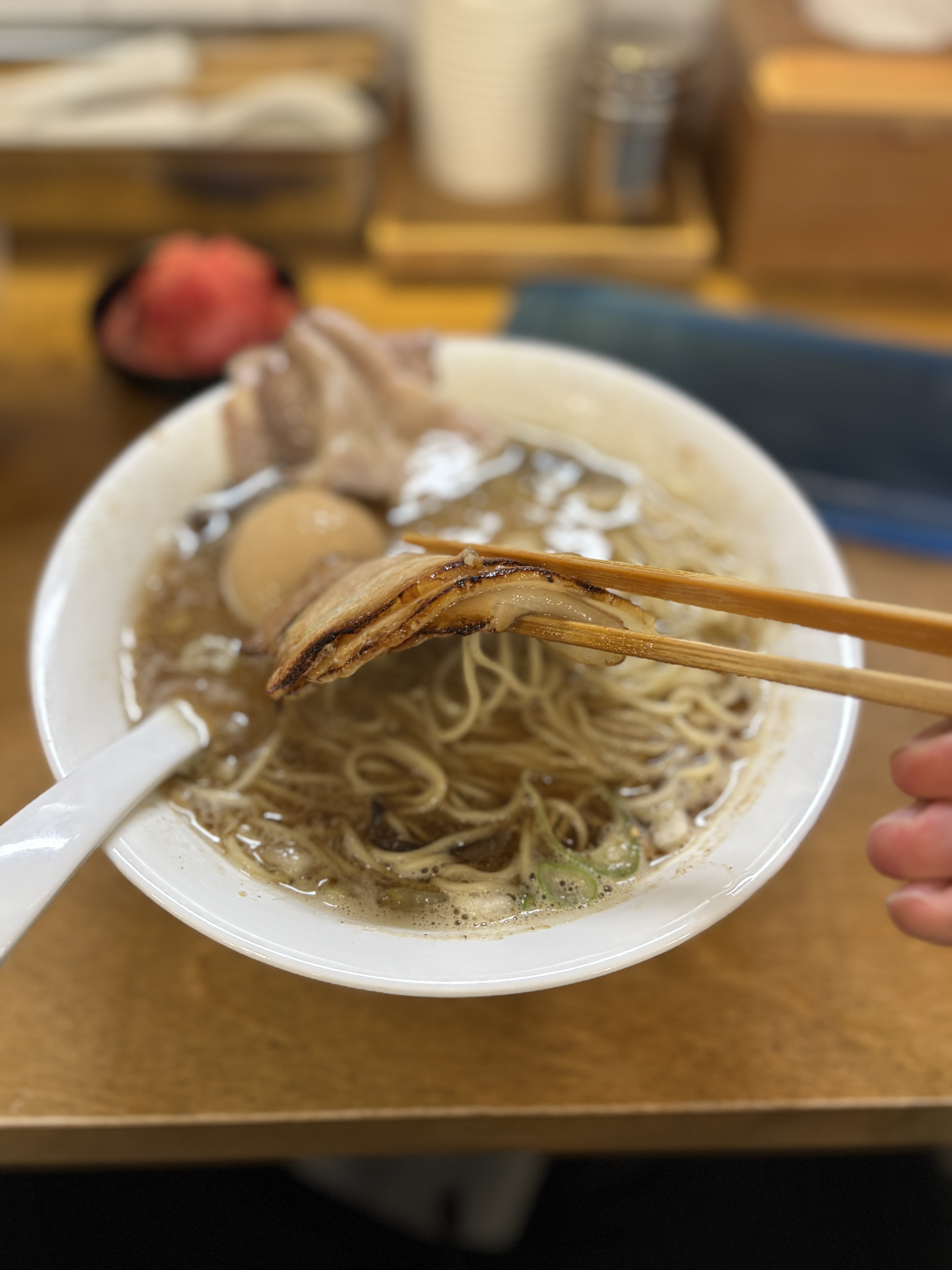 삼겹차슈도 한번 찍어봅니다. 불향이 잘 입혀진 삼겹차슈네요. 많이 얇게 포션되있지는 않았는데요, 먹어보았을 때 뭔가 표면이 생각보다 더 말라있습니다. 썰어둔지 시간이 좀 된 것 같다는 느낌.. 마지막 손님이라 그럴 수도 있겠다 싶습니다.