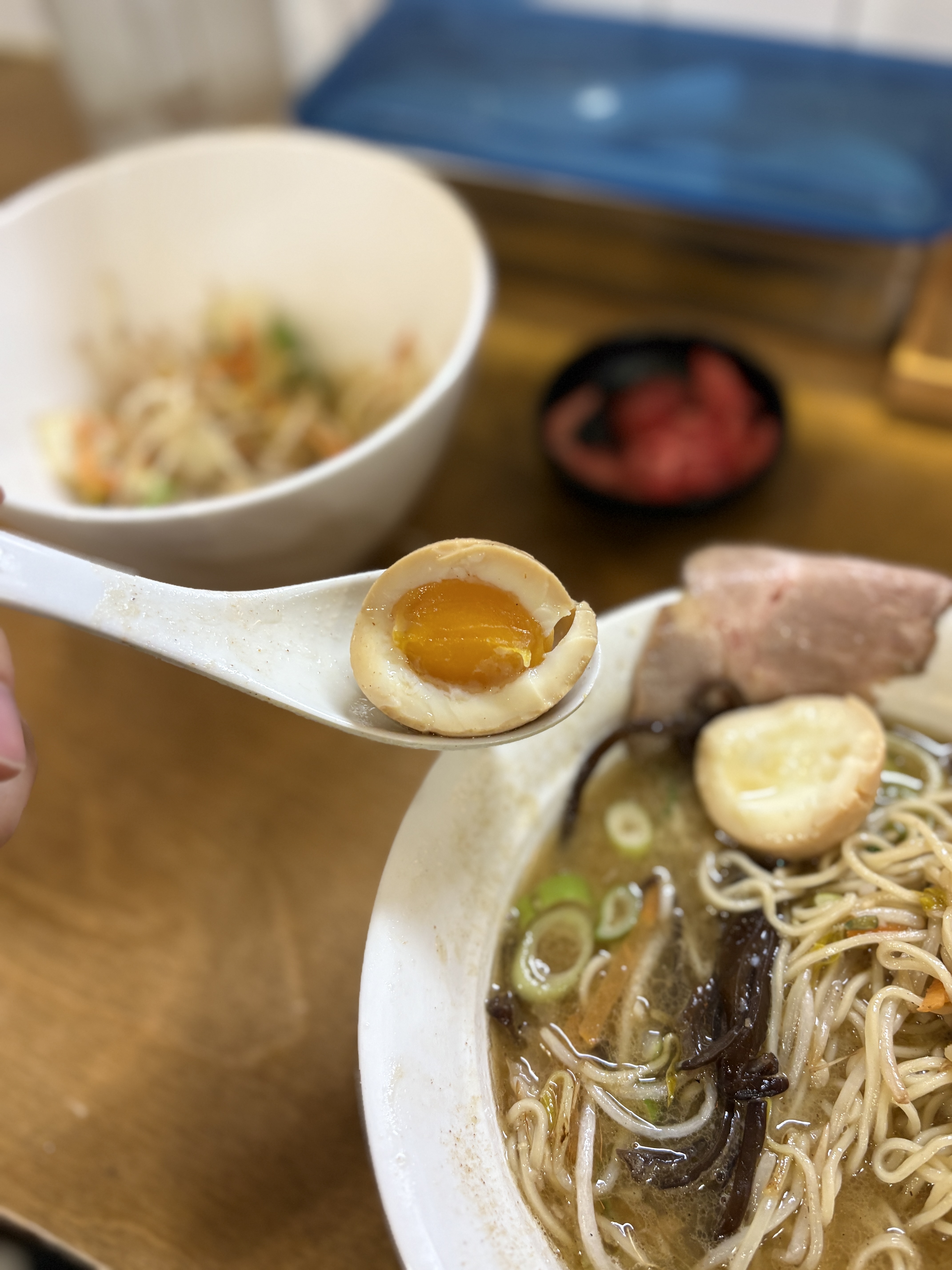 아지타마고는 보기에는 굉장히 잘 삶아진 것 같은데, 먹어보았을 때 뭔가 노른자에 밀도가 성근 느낌이 납니다. 이것도 조리한지 시간이 지나면서 생기는 변화인데 음.. 아무래도 마지막 타임에 가서 그런지 이런 점들은 좀 아쉽네요.