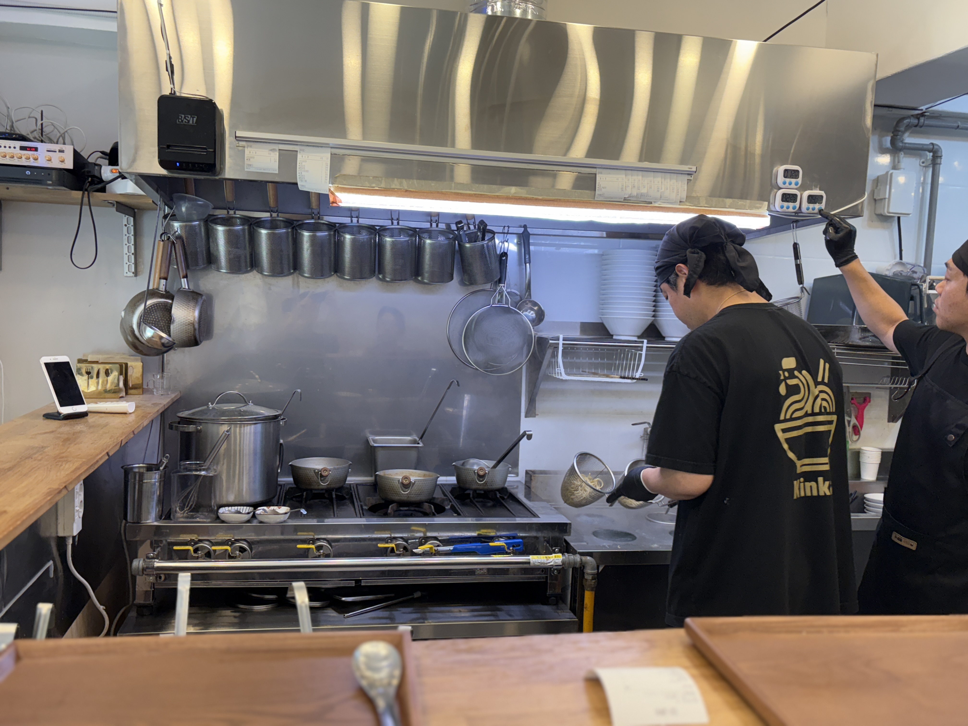 주문직후 면을 삶고 고명을 올리시는 장면을 직관하는 걸 좋아합니다 ㅎㅎ 특히 킨카라멘은 저 티셔츠가 뭔가 탐이나더라구요. 검은색과 황금색의 배합이 고급스럽다고할까요 ㅎㅎ