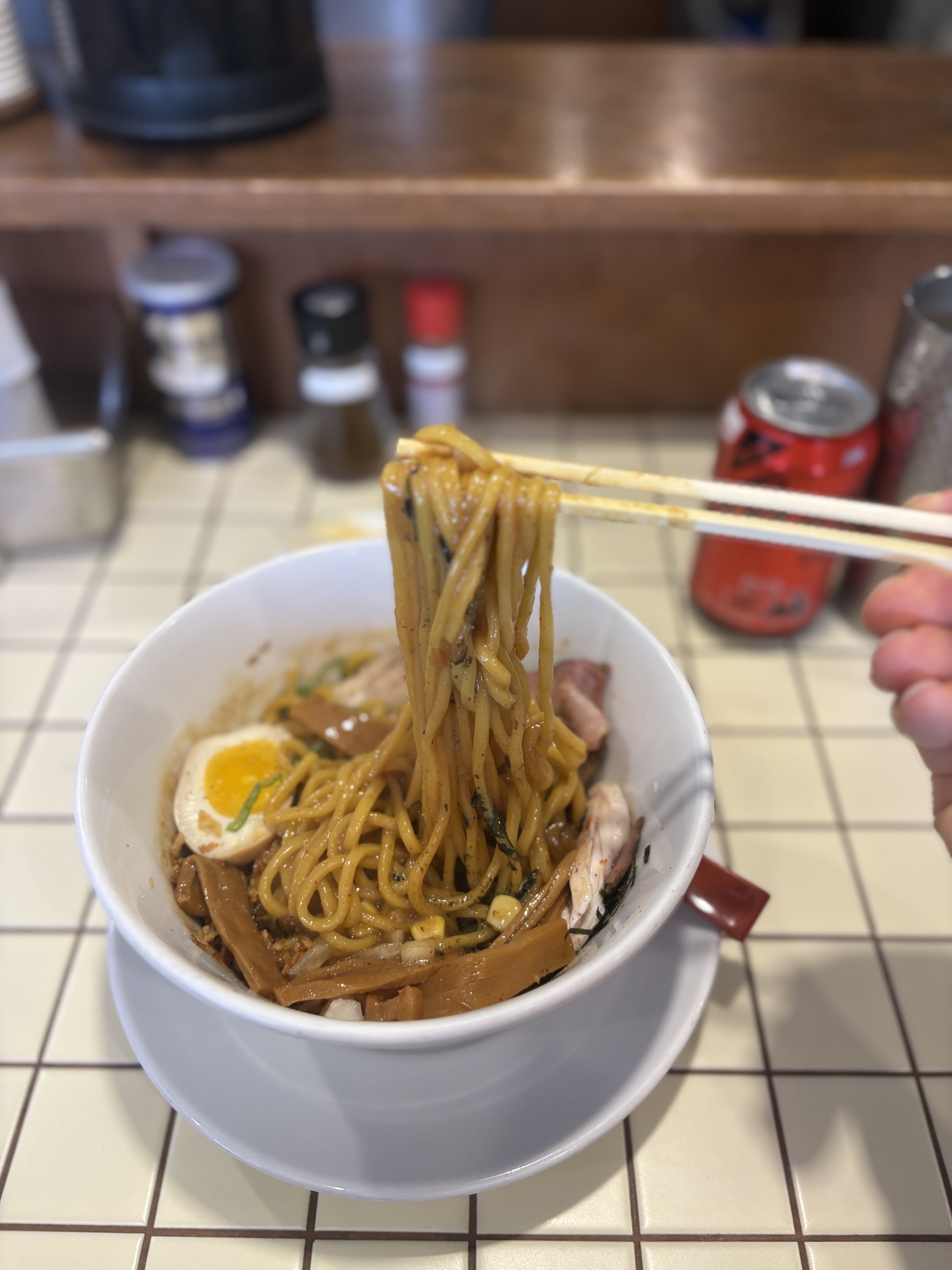 초점이 약간 나가버렸는데.. 열심히 비벼서 한입 먹어보니 정말 이집만의 특색이 느껴지는 아부라소바더라구요. 여러 라멘야에서 아부라 소바를 먹어도 이제 큰 감흥이 없는데, 미소아부라소바는 기존 아부라소바에서 미소 소스가 한번더 킥을 주다보니까 또 이게 굉장히 별미로 다가오더라구요. 이 메뉴는 꼭 한번 다시 먹으러 오고 싶다는 생각이 들었습니다.