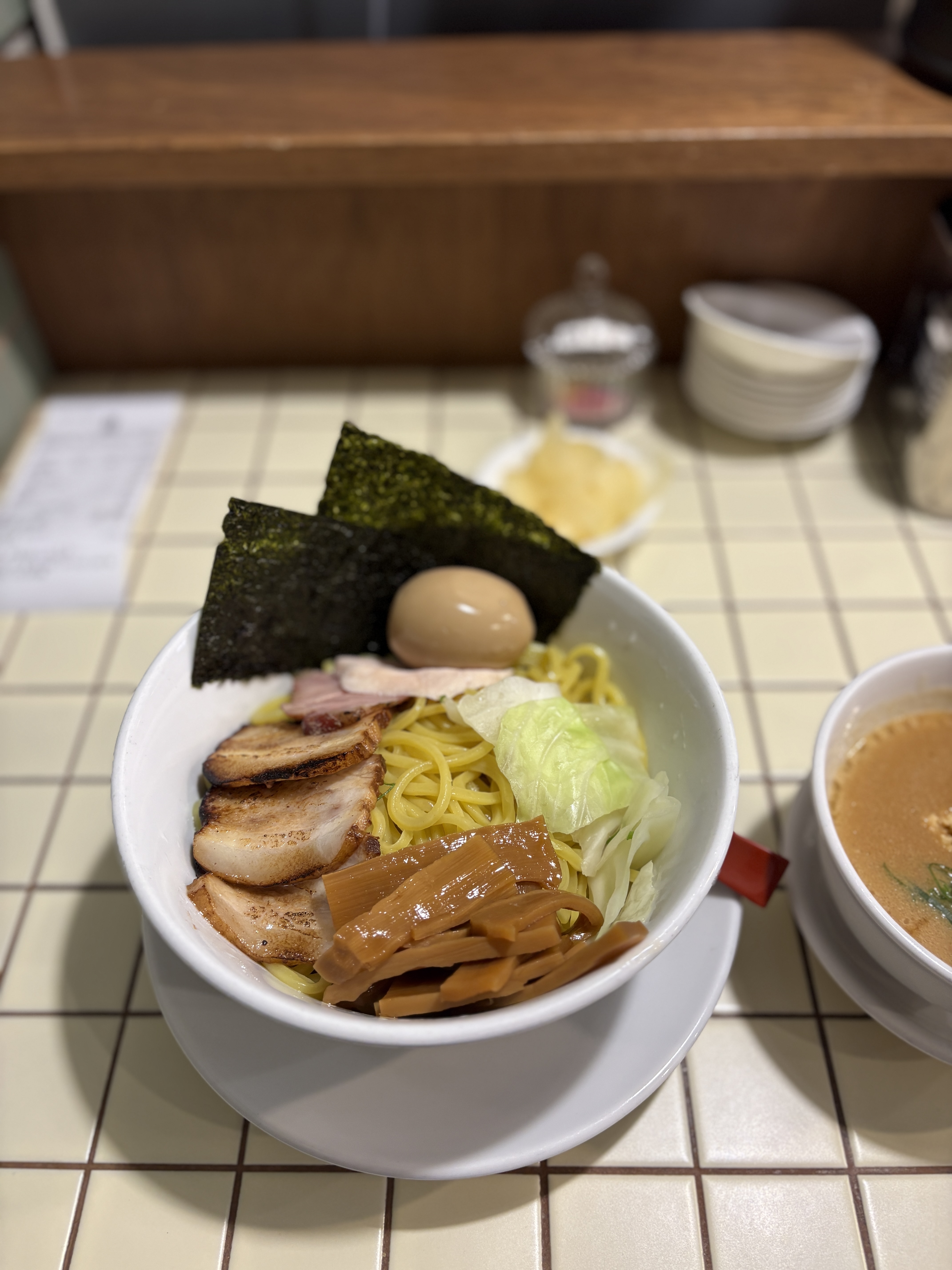 스프는 돼지와 닭을 블렌딩하였고, 4가지 미소를 이용한다고하네요. 미소라멘은 북해도 여행을 갔을 때를 제외하면 일본을 방문해도 잘 발걸음이 가지가 않고, 국내에서는 더더군다나 한국인들에게 호불호가 있어서 그런지 맛집이 많이 알려지지 않아있는데요. 이곳 멘타미의 경우 미소라멘을 대표메뉴로 표방하기도 하고 라오타들 사이에서도 이곳의 아부라소바와 한정메뉴인 새우츠케멘이 호평일색이어서 2회나 방문을 했습니다. 첫 방문때는 조금 늦게갓더니 츠케멘이 동나버려서.. 다음에는 오픈런을 했다는.. 2025년 9월 현재 새우츠케멘은 오전 오후 10식으로 수량이 제한되어있습니다. 주말에는 오픈 30분전에 가서 기다려야 먹을 수 있다는..