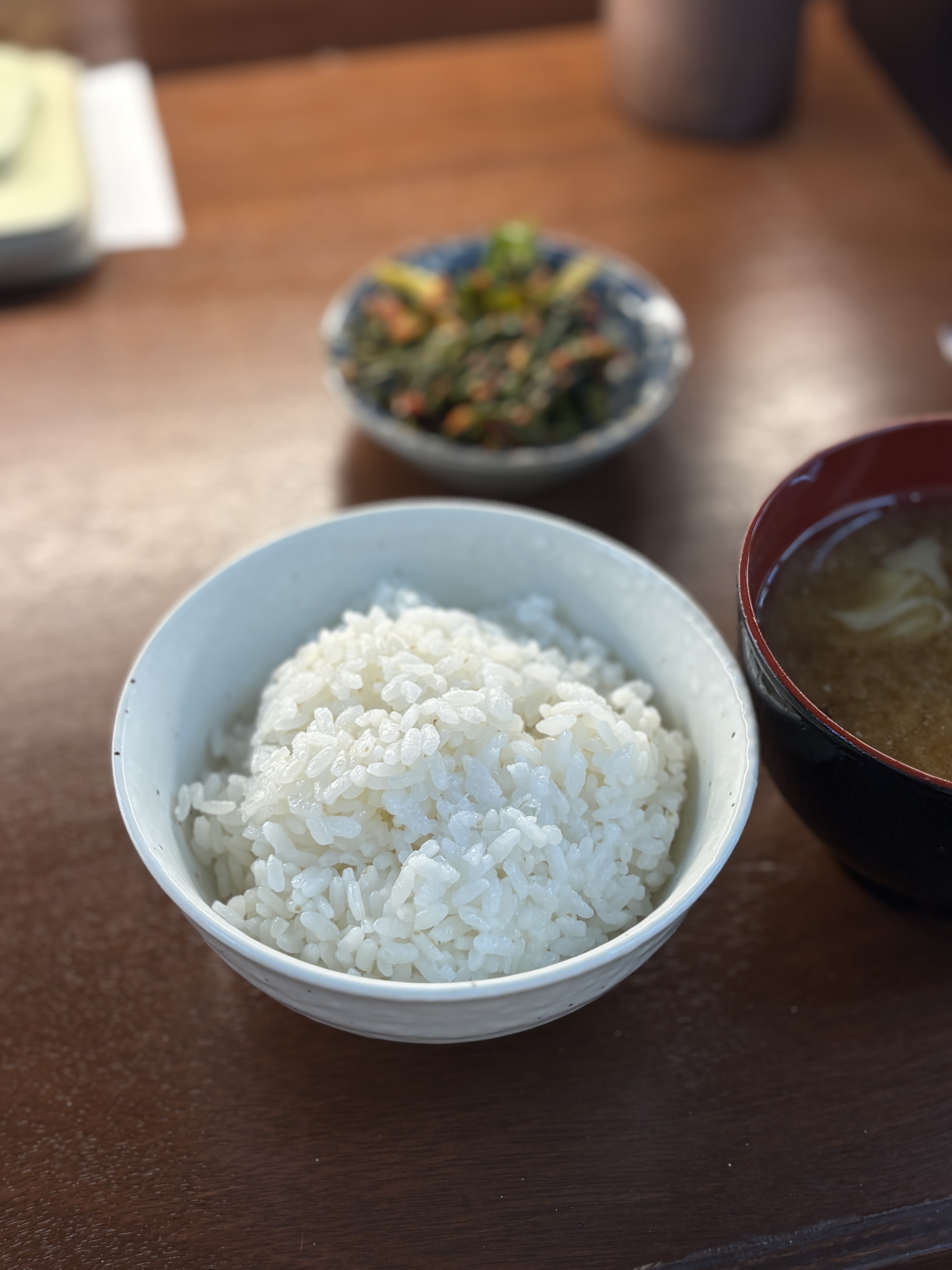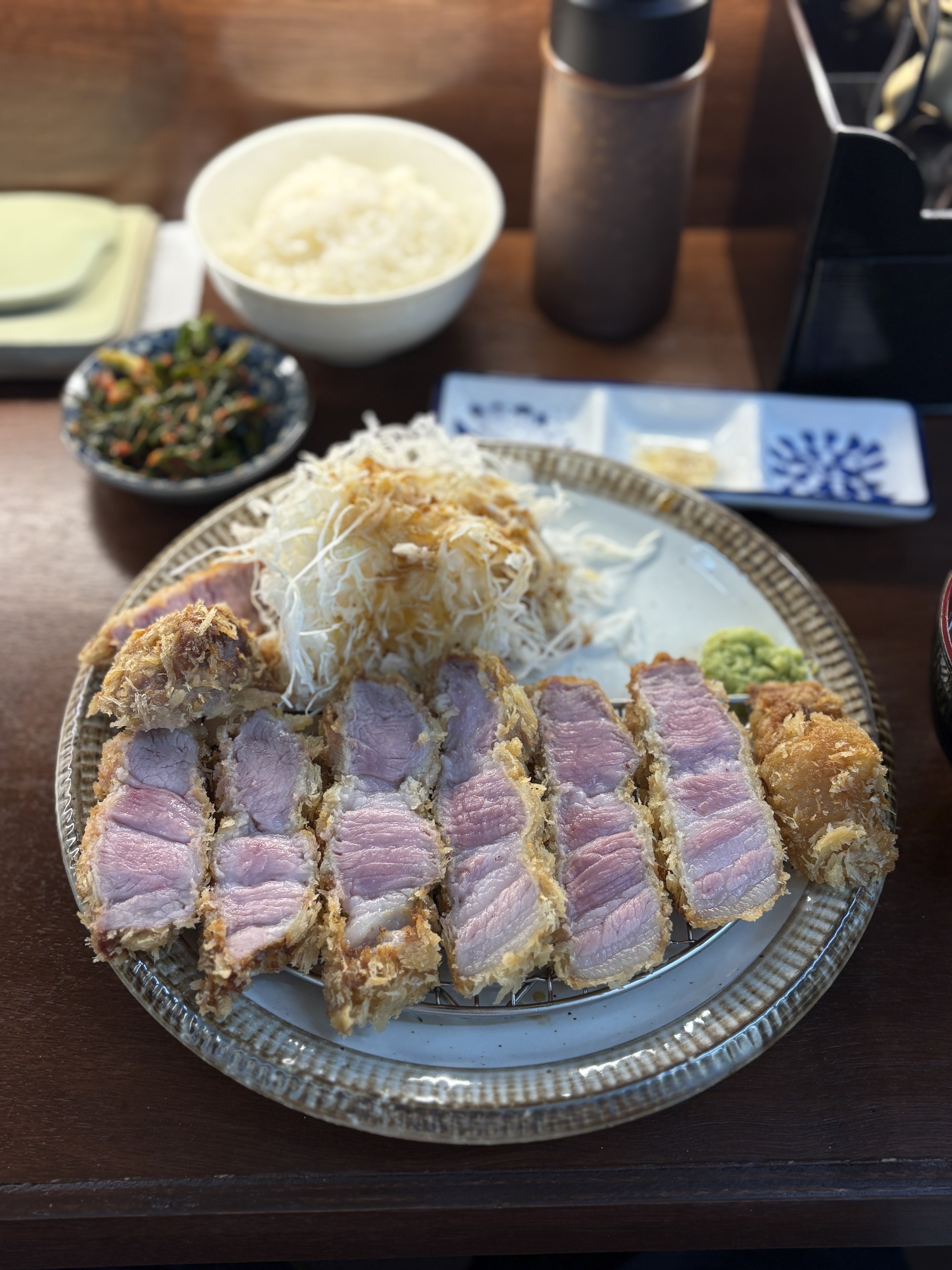 메뉴를 주문하고 자리에 앉아있으면, 얼마 지나지 않아 밥과 장국, 그리고 반찬이 세팅이 됩니다. 일본의 돈카츠 집에서 항상 느끼는거지만 밥에 대한 인심이 우리나라보다 돈카츠집 한정 넉넉하고, 그 맛이 훌륭하다고 생각이 드는데요, 우리나라 돈카츠집들은 어느집이 먼저 시작한건지 밥을 쥐꼬리만큼 주는게 뭔가 공식이 되버린 것 같아서 아쉽습니다. 일본 본토에서도 밥 양을 추가금을 얼마 받는 한이 있더라도 밥이 부족하다는 생각이 들지 않게끔 주는데 말이지요 ㅎㅎ