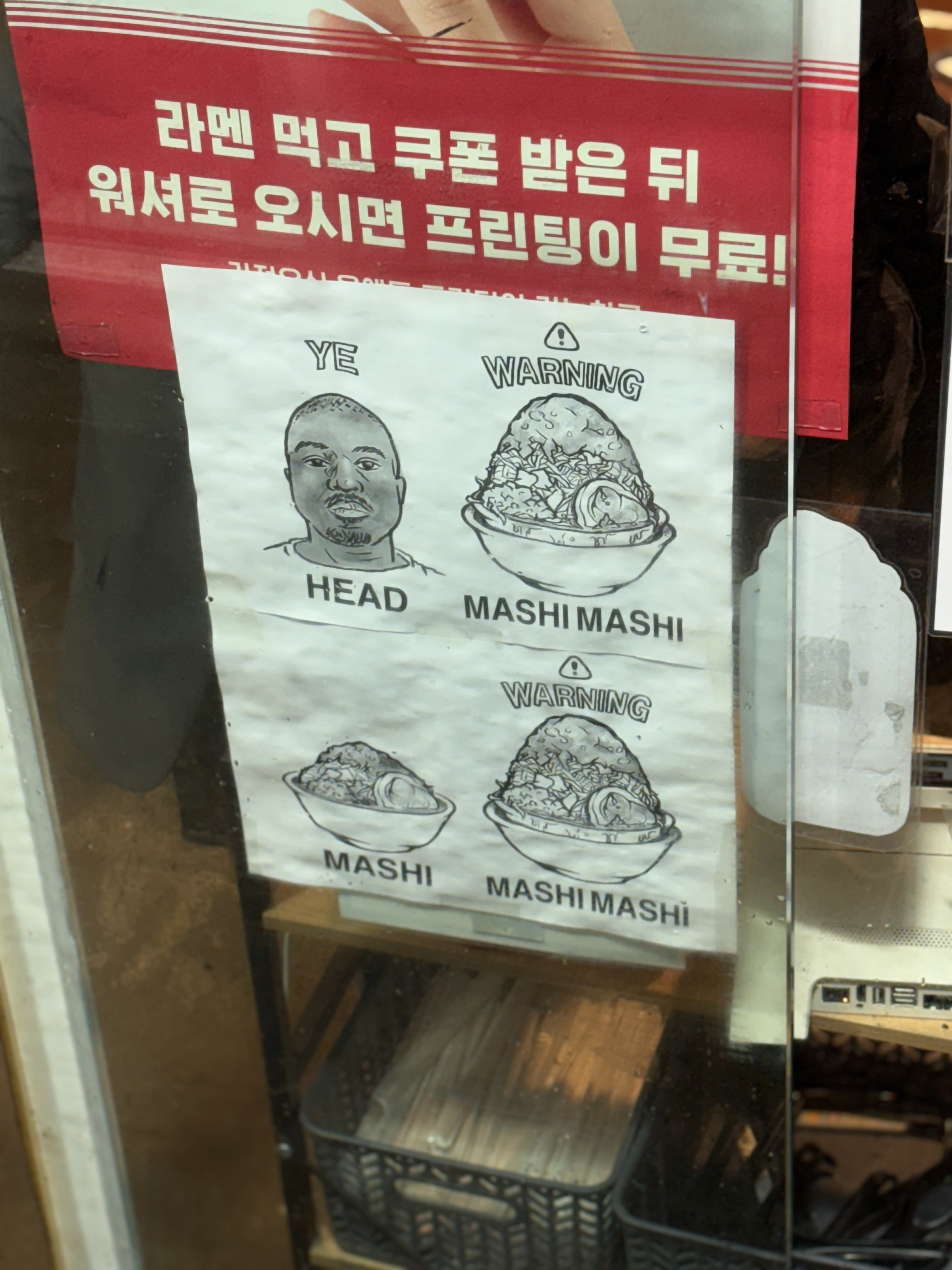 다만 컨셉 자체가 이렇다보니 찾는 손님들이 쇼유라멘이나 시오라멘을 취급하는 점들과는 부류가 다소 다를 수 있습니다. 일본에서도 지로라멘을 좋아하는 사람들을 '지로리언'이라고 부르는데요, 이 사람들의 특징이 한국에서도 나타난다고 할 수 있겠습니다. 그리고 가게 앞에서 대기를 하는 경우가 많은데 바로 앞에 담배 꽁초를 버리는 재떨이가 있어서 너도나도 편하게 담배를 태우다보니 비흡연자로서는 안그래도 지로라멘때메 췌장이 박살나고있는데 내 폐까지 취해가려는건가 하는 공포감이 들 수는 있습니다. 대기하는 사람들이 저녁에는 시끄럽게 떠든다는 민원도 있구요.. 뭐 사실 이런것들도 '지로계 라멘 집이니까'라는 걸로 퉁치는 걸로 해결을 볼 수 있습니다만.. 좀 더 나아졌으면 하는 바램도 있네요.
